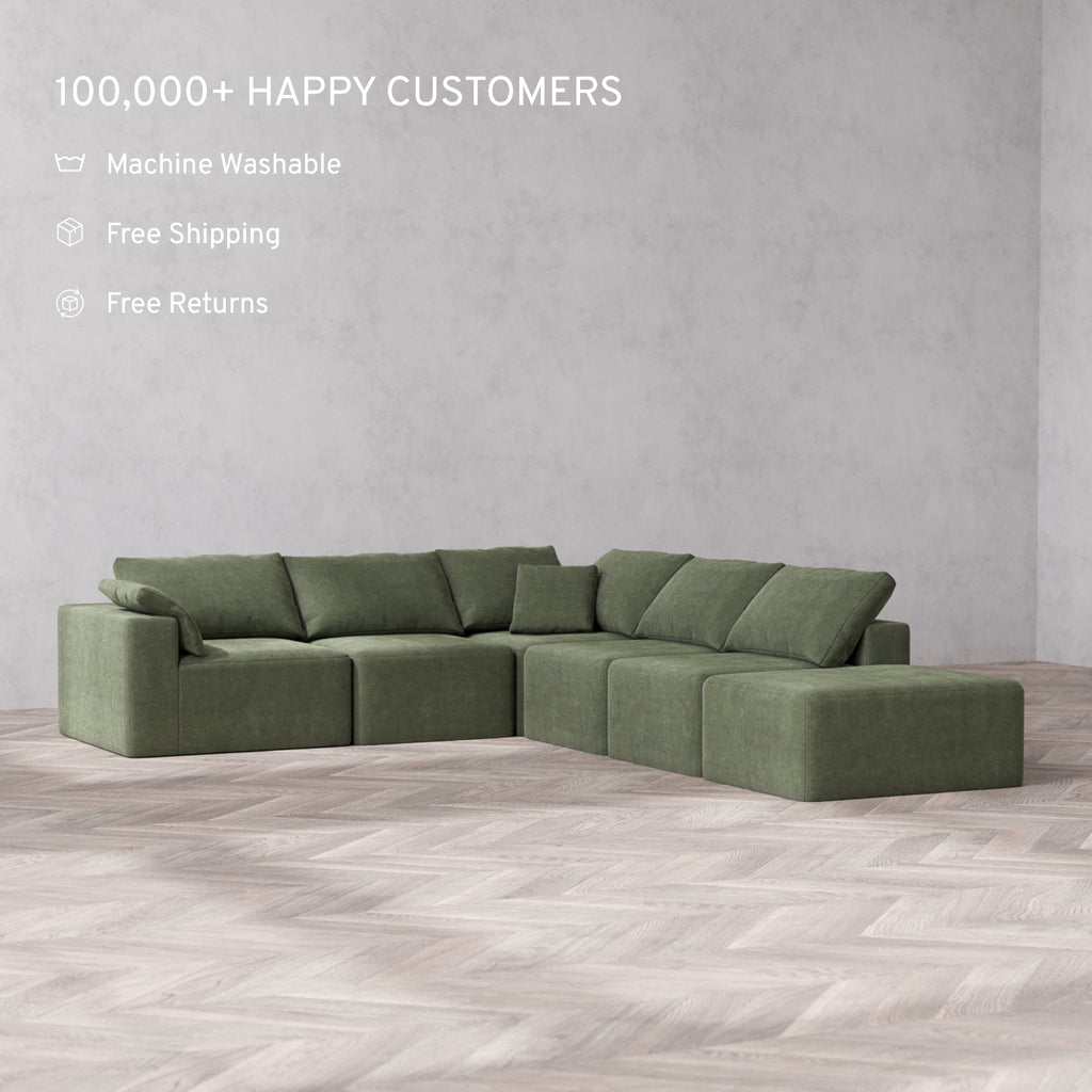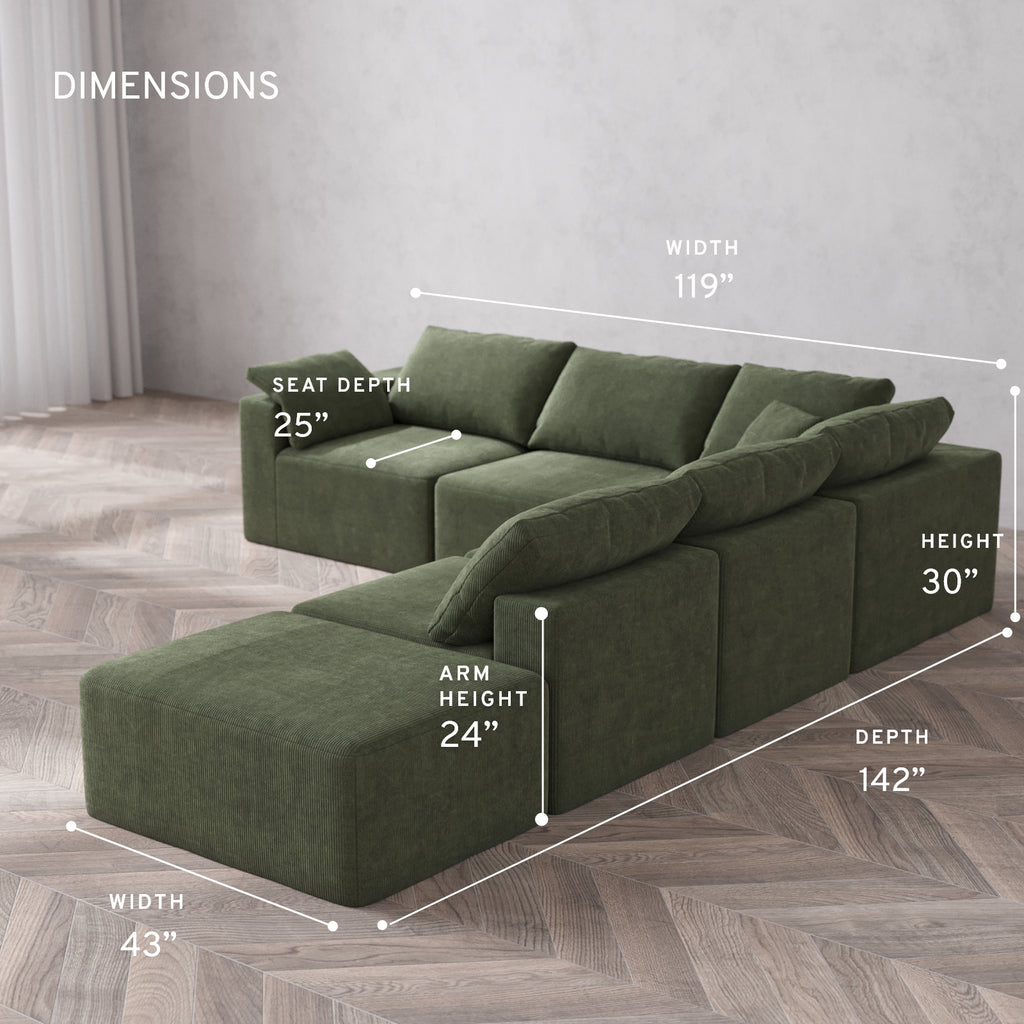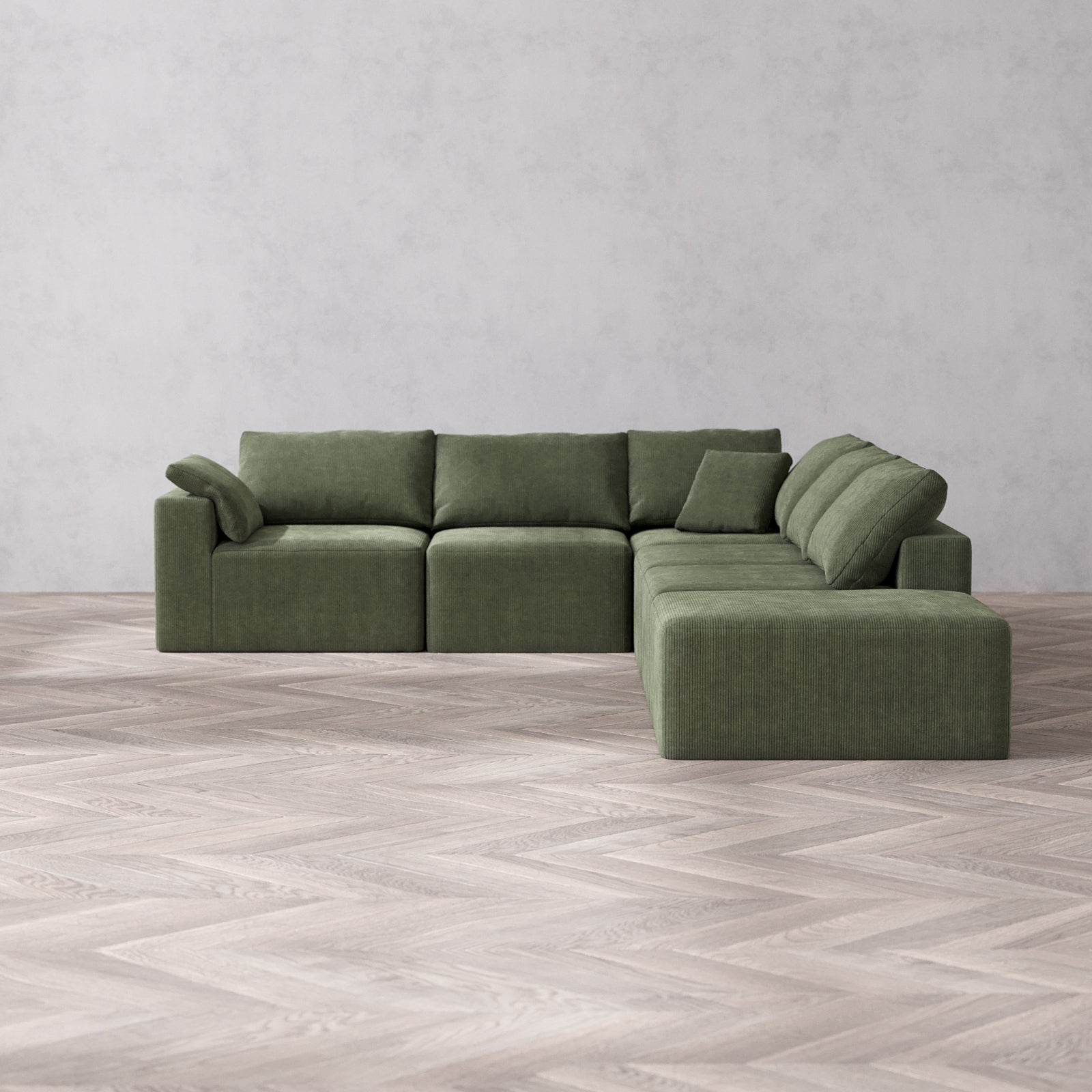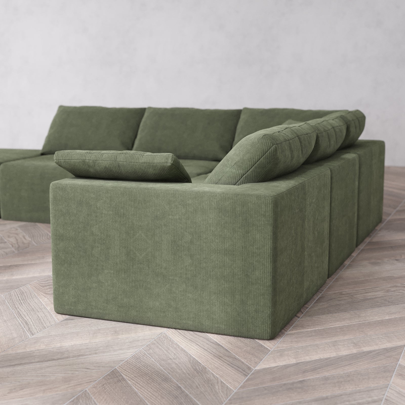 Modular Washable 6-Seater Open End Corner Sectional Cloud Sofa | Left-Facing Arm | Luxe Corduroy in Juniper