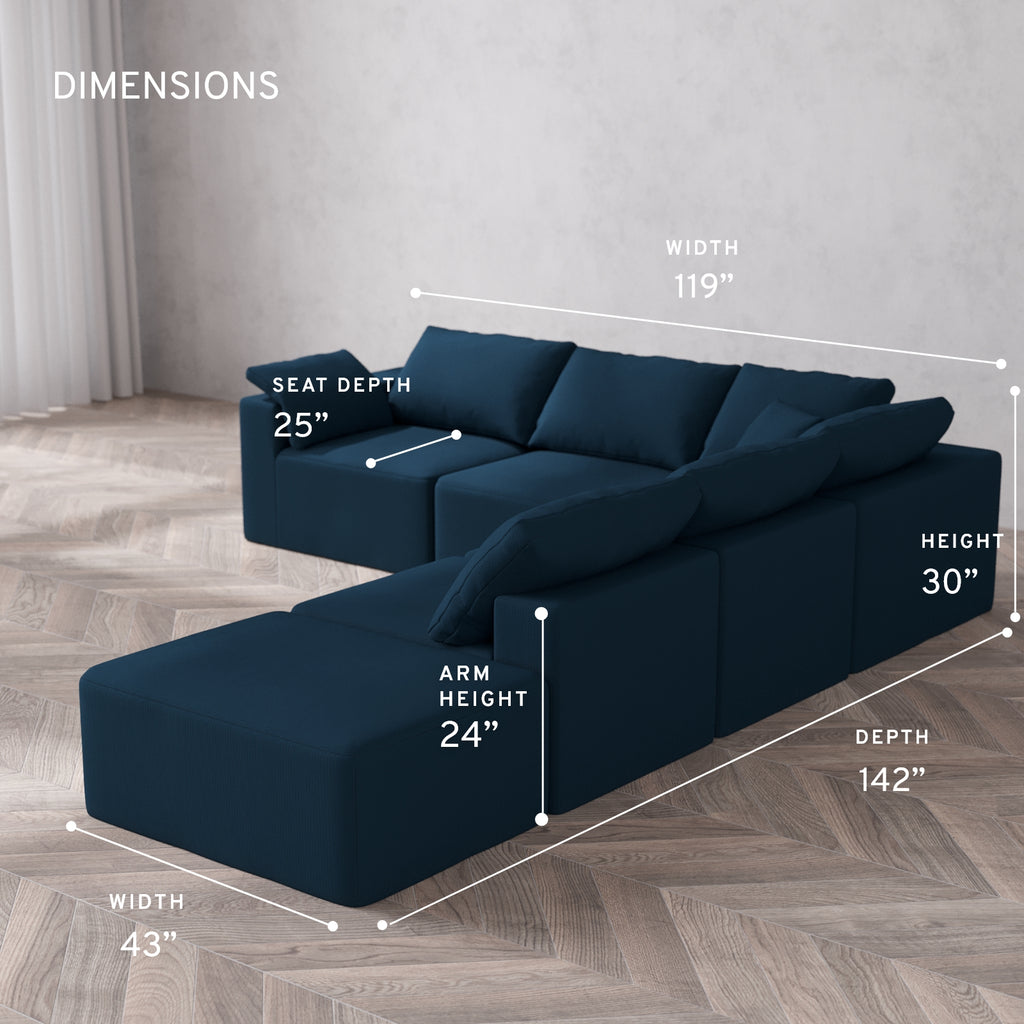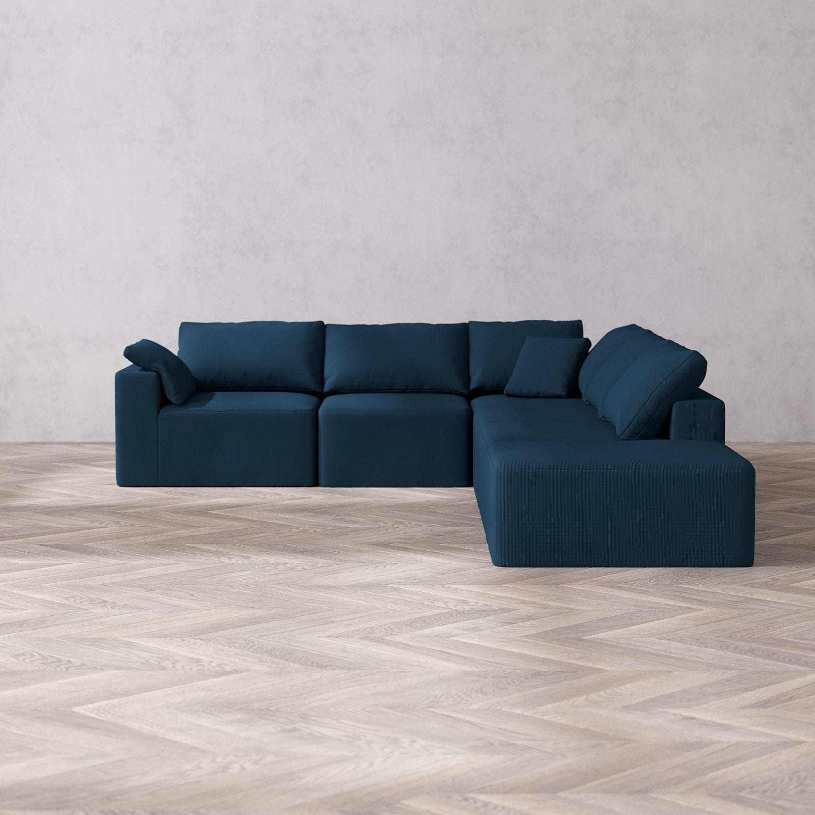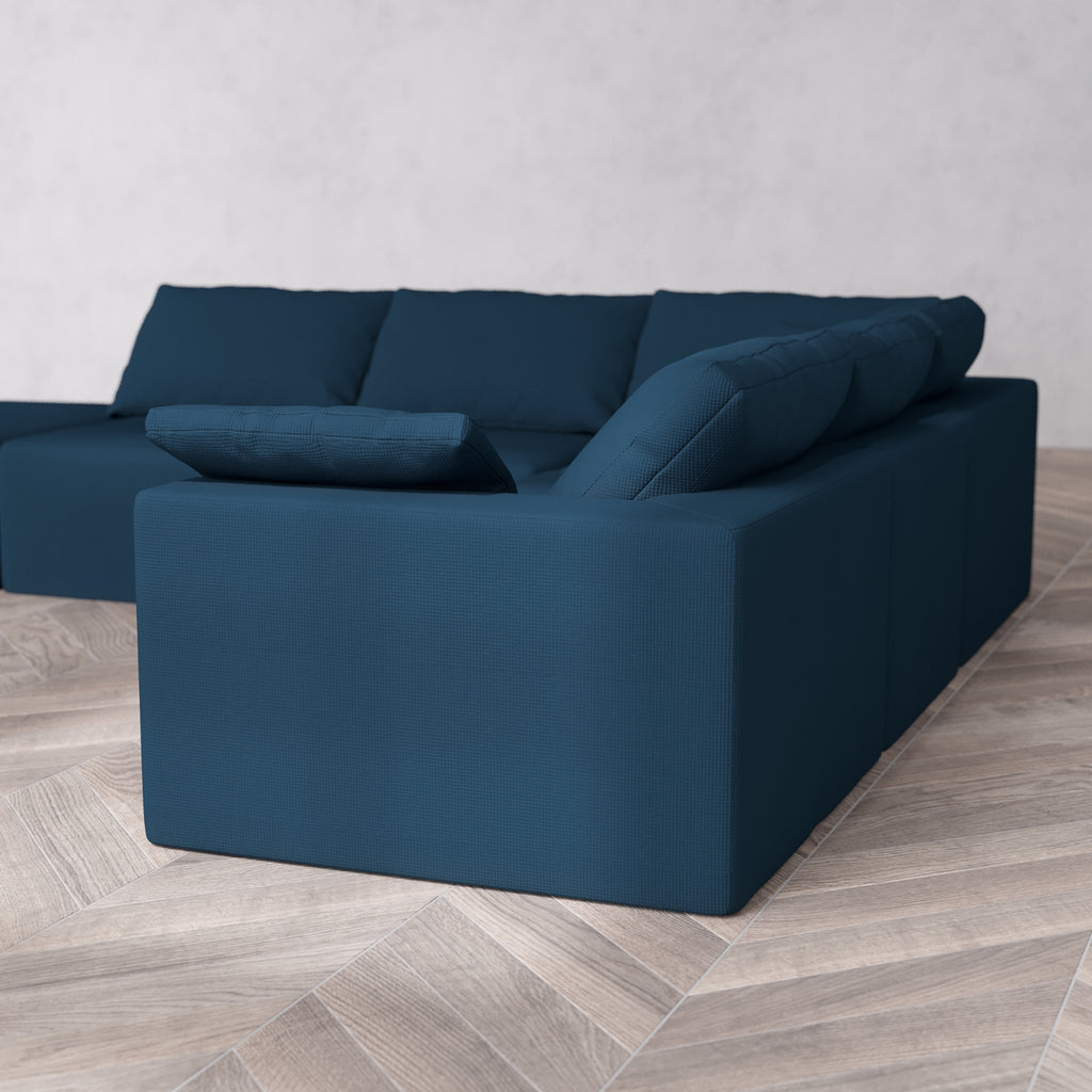 Modular Washable 6-Seater Open End Corner Sectional Cloud Sofa | Left-Facing Arm | Arden Weave in Lazuli