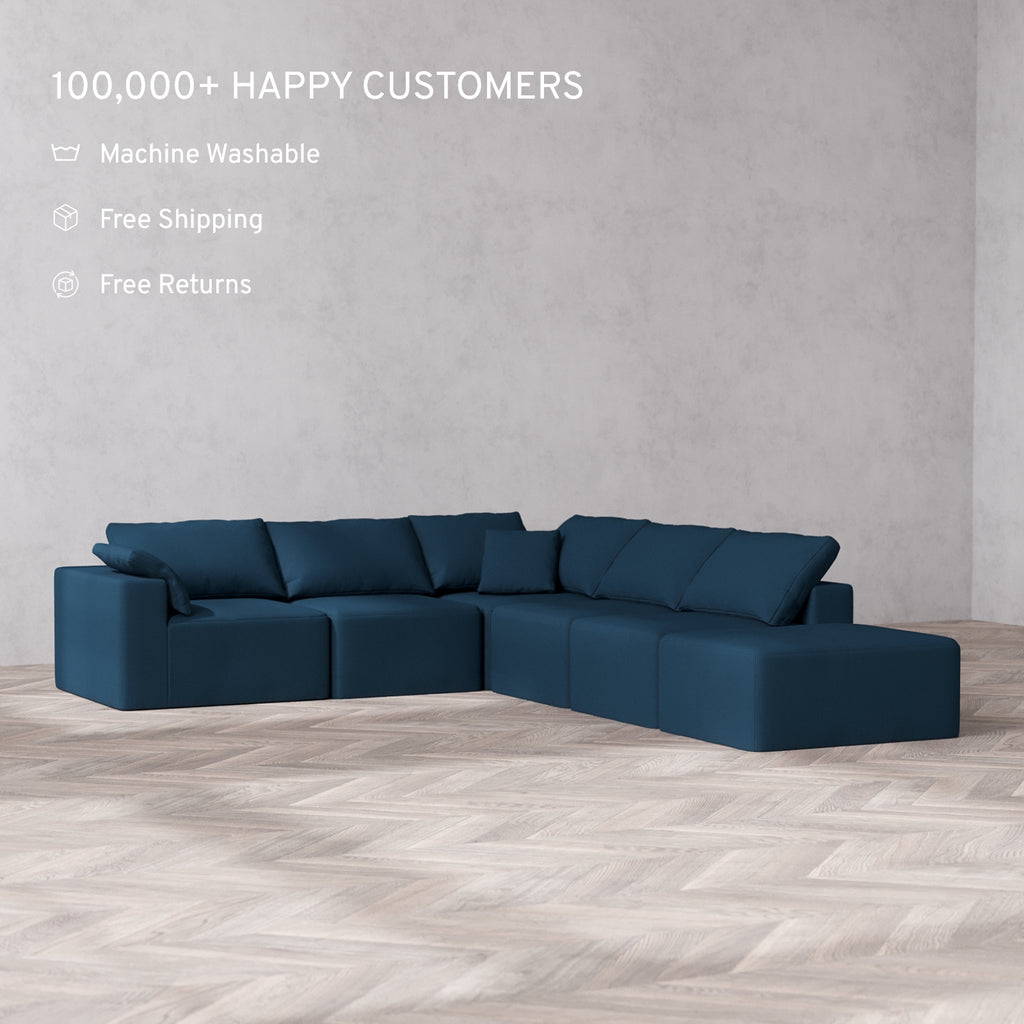The Only Washable Cloud Sofa: With a waterproof frame and fabrics that resist pets, stains, and spills, this sofa is made to handle everyday messes. Our patent-pending covers are machine washable and fully interchangeable—buy extra sets to change up your look anytime.