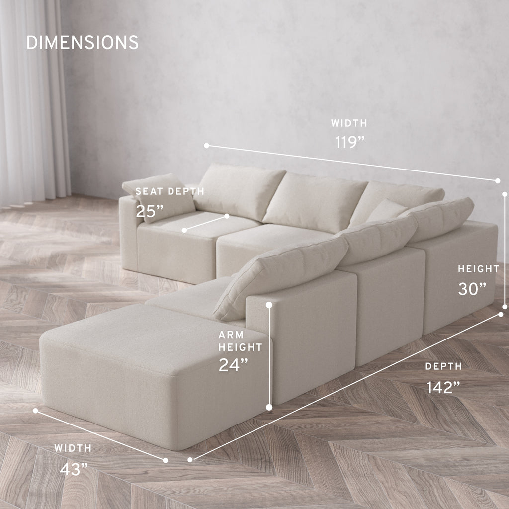 Modular Washable 6-Seater Open End Corner Sectional Cloud Sofa | Left-Facing Arm | Lux Weave in Pearl