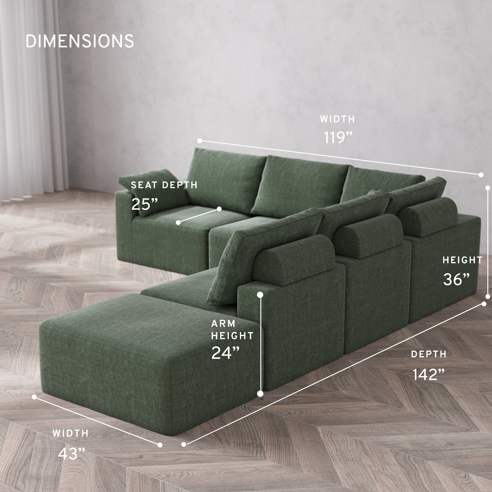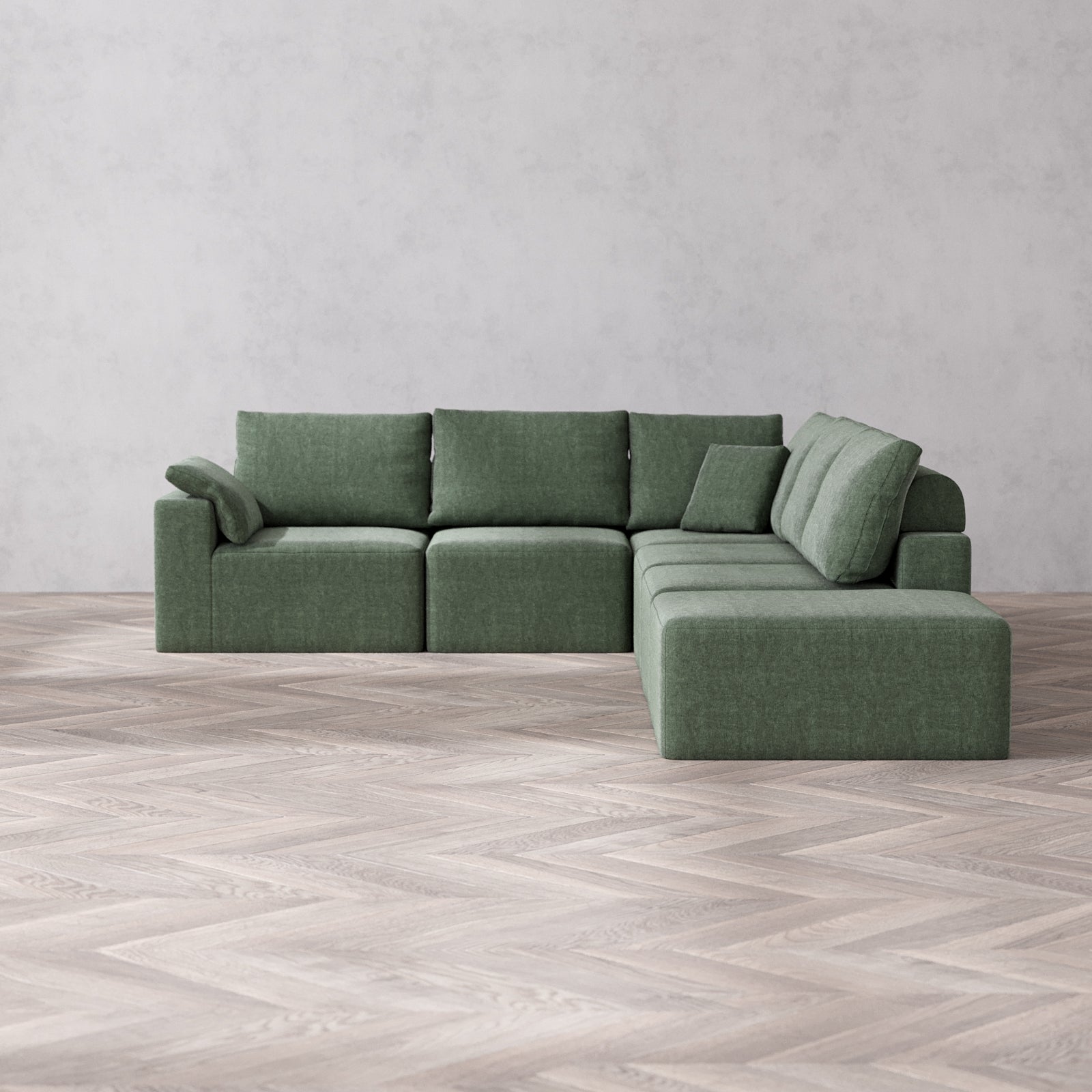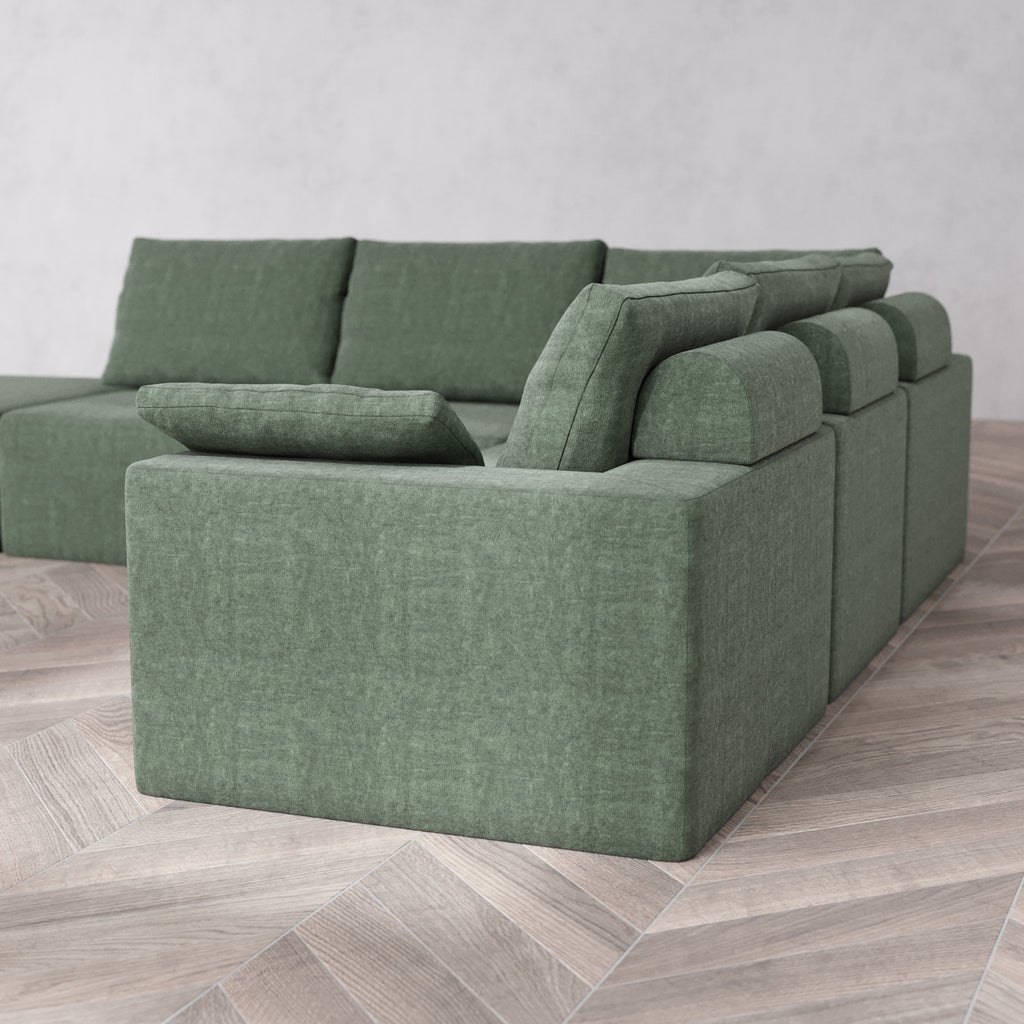 Modular Washable 6-Seater Open End Corner Sectional Cloud + Bolster Sofa | Left-Facing Arm | Heirloom Velvet in Sage