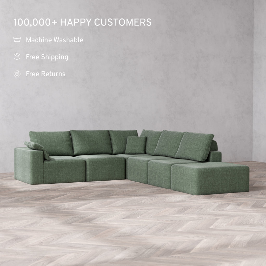 Machine Washable: Every piece of fabric—including the internal quilted duvet—is fully removable and machine washable. It’s the only Cloud-style sofa you can truly deep clean, effortlessly.