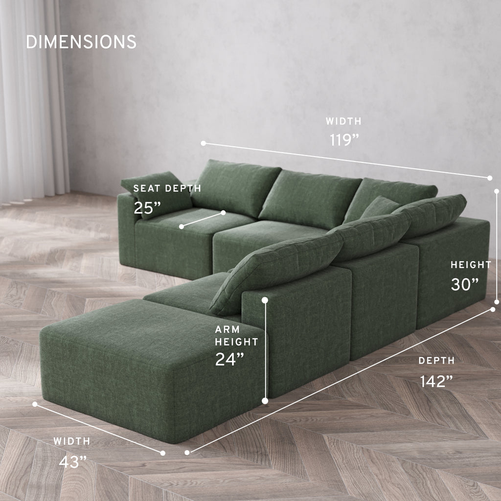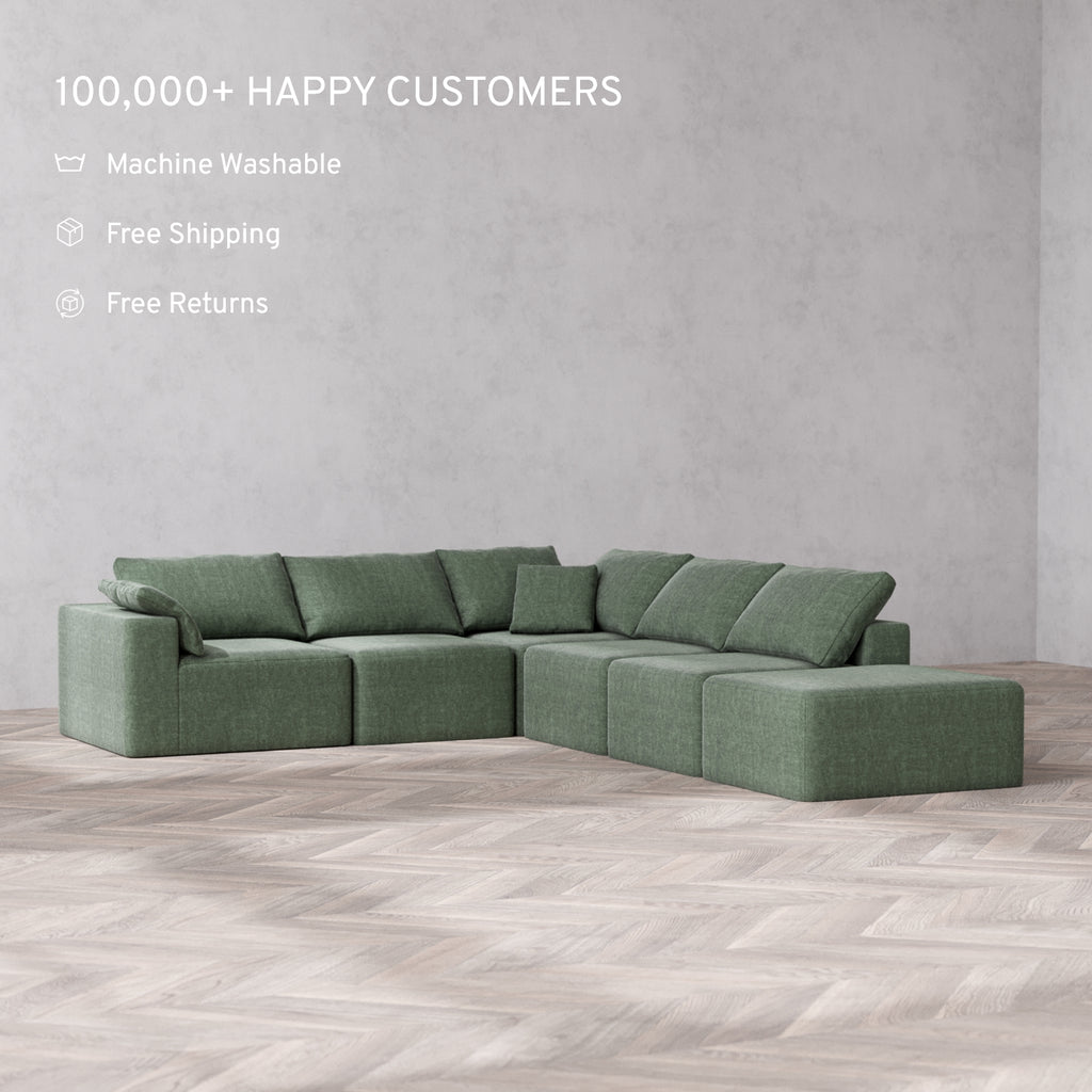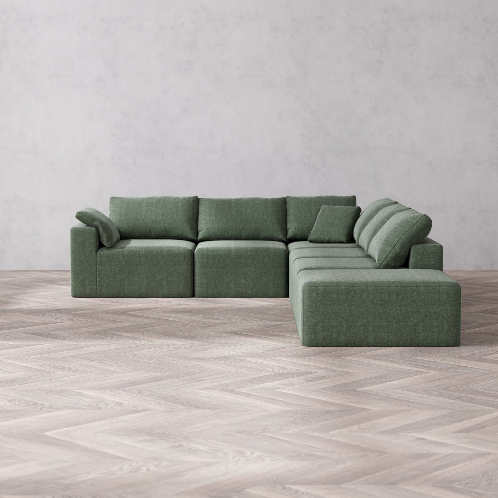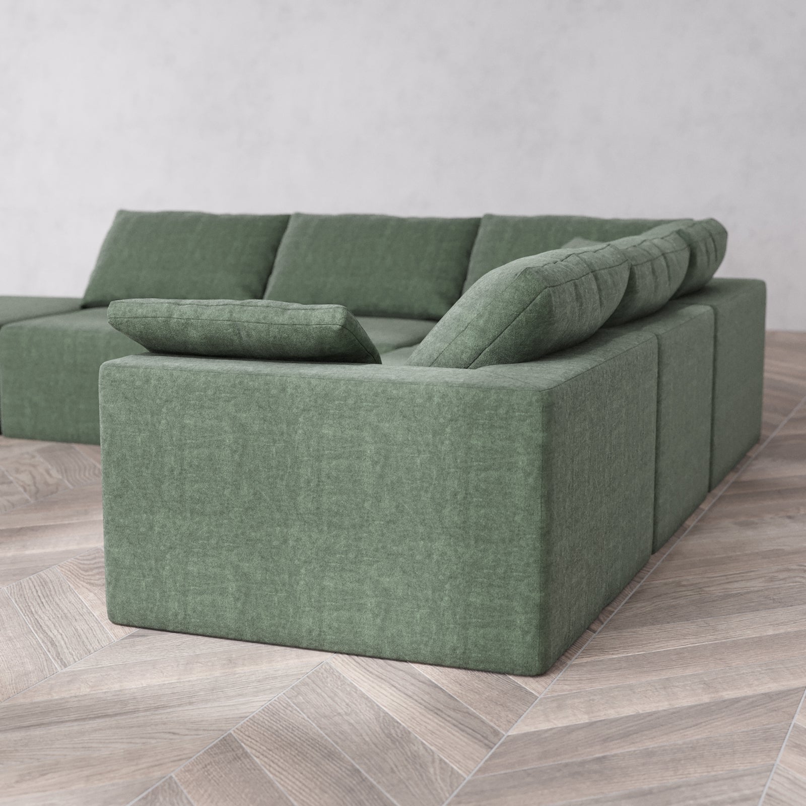 Modular Washable 6-Seater Open End Corner Sectional Cloud Sofa | Left-Facing Arm | Heirloom Velvet in Sage