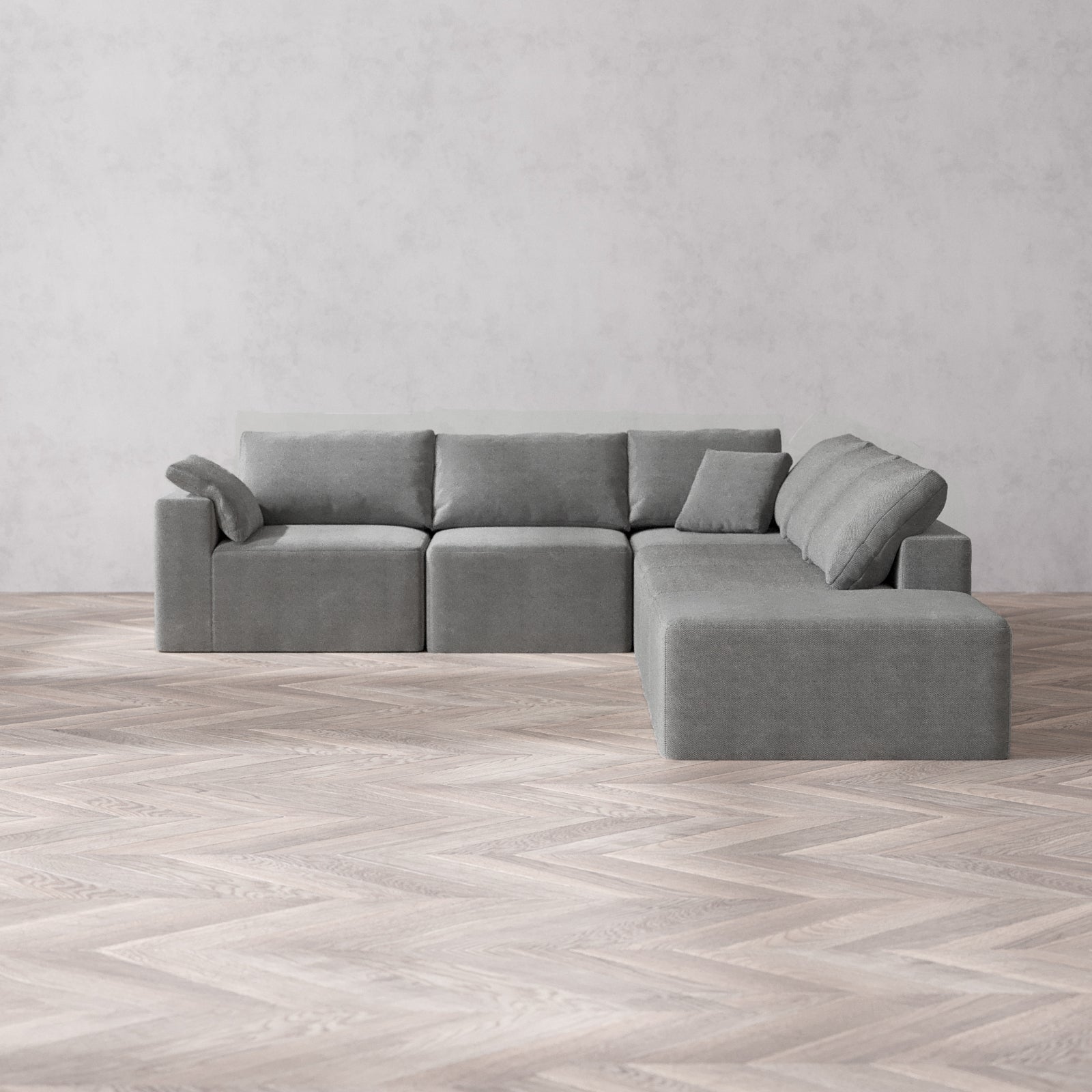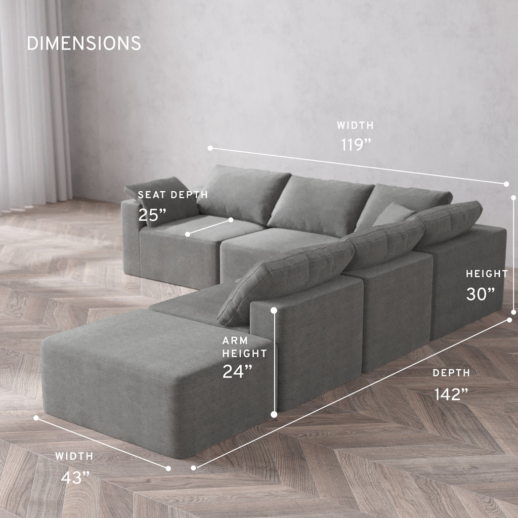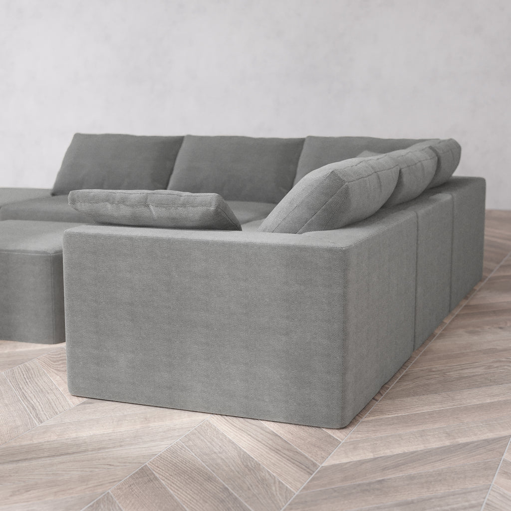 Modular Washable 6-Seater Open End Corner Sectional Cloud Sofa | Left-Facing Arm | Lux Weave in Slate