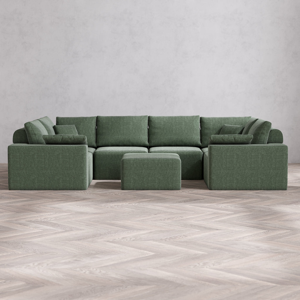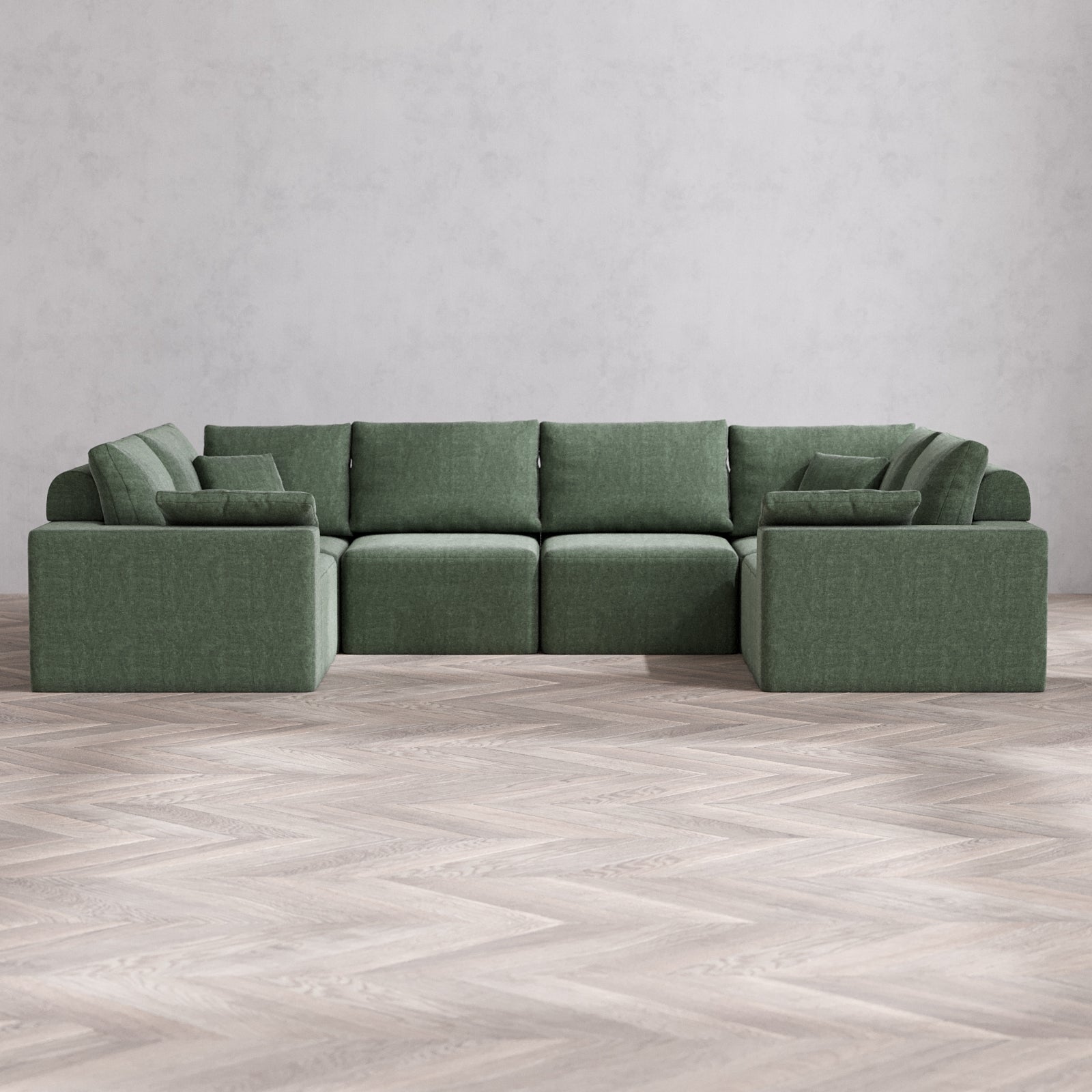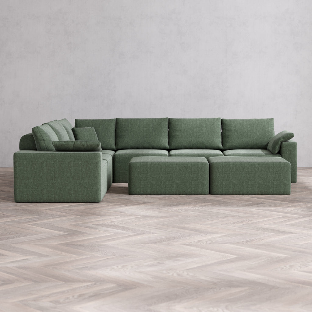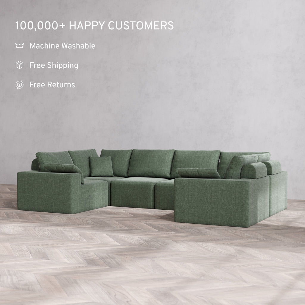 Modular Washable 6-Seater U Sectional Cloud + Bolster Sofa | Heirloom Velvet in Sage
