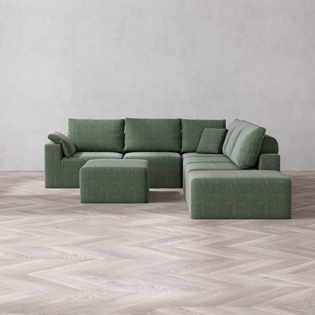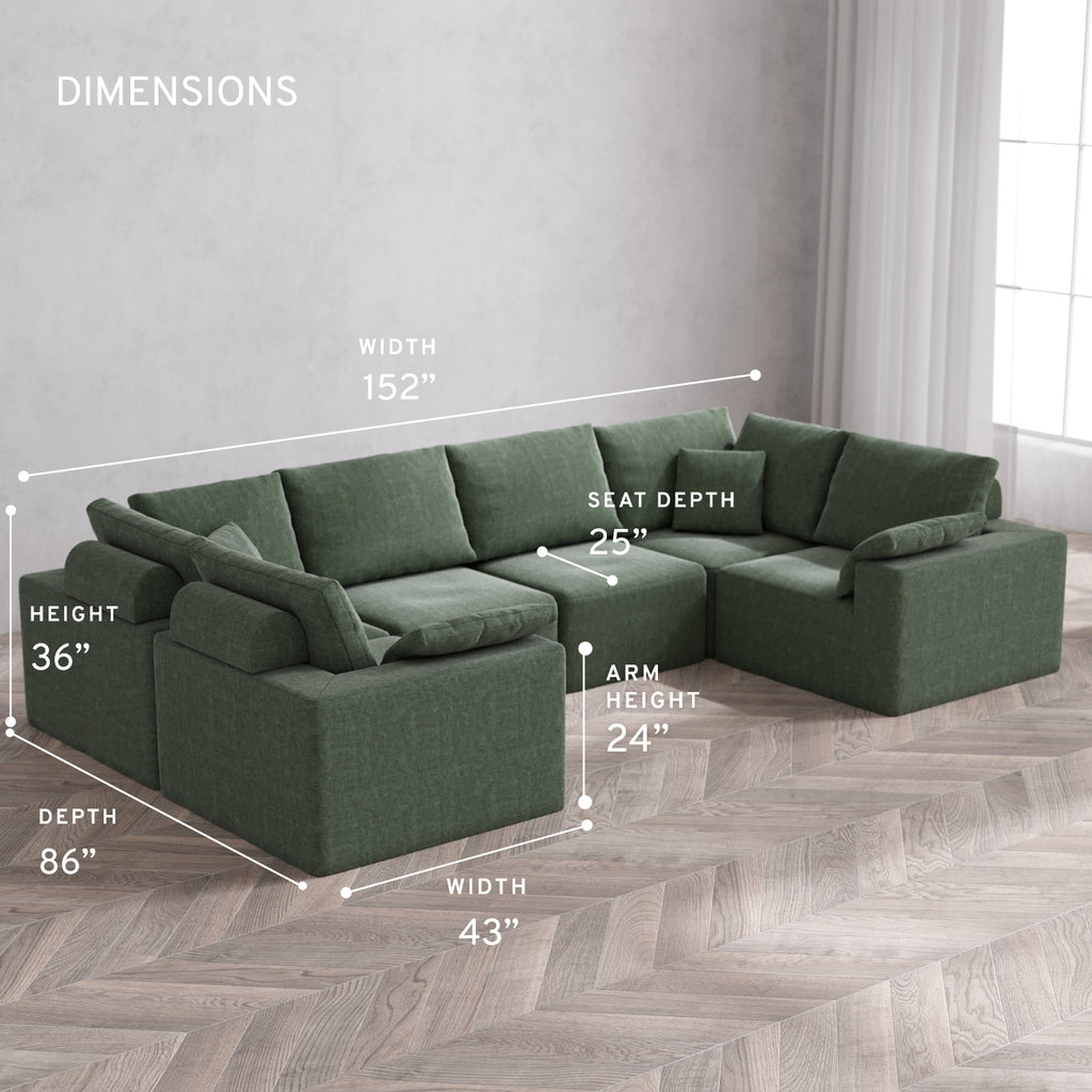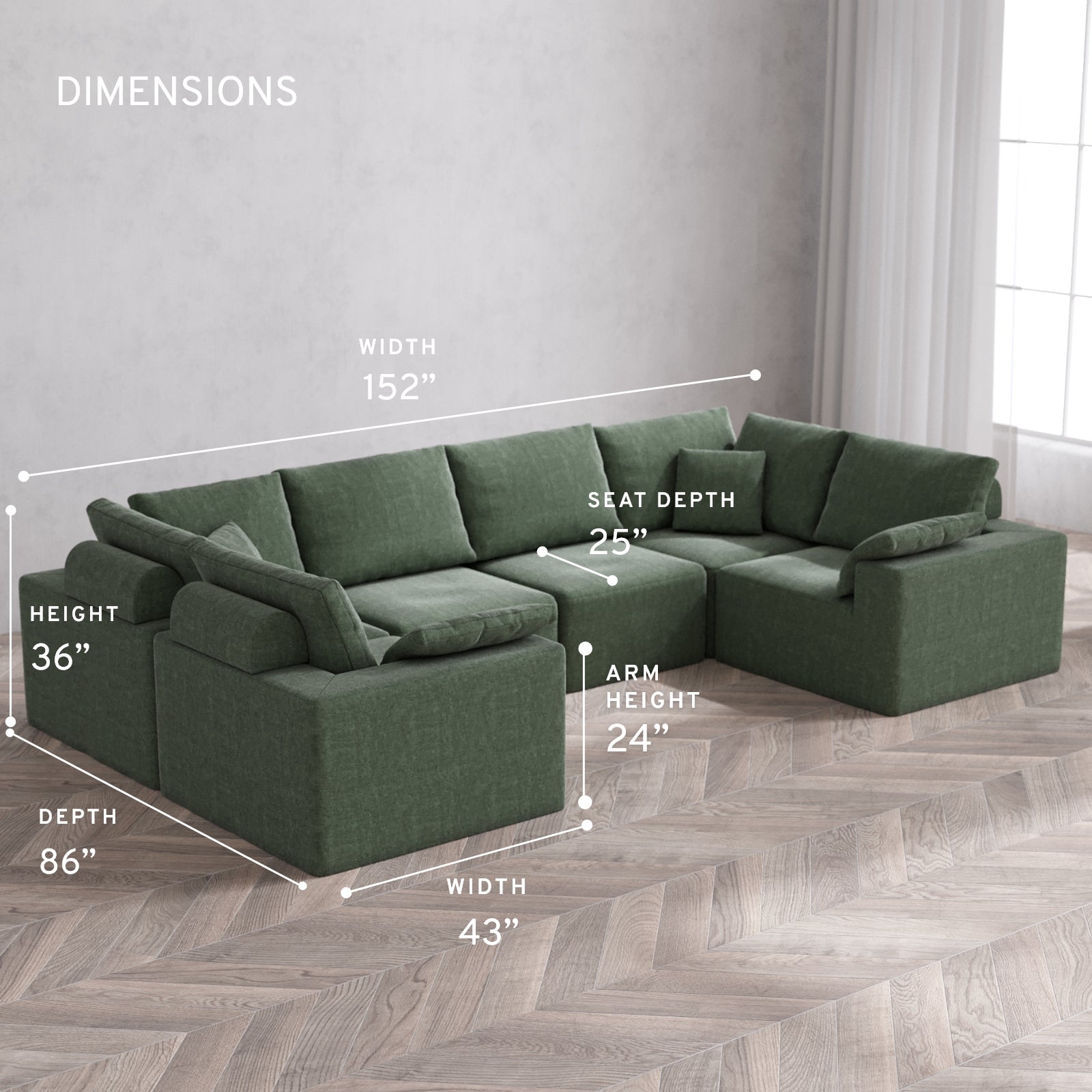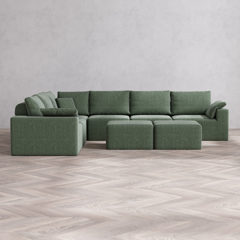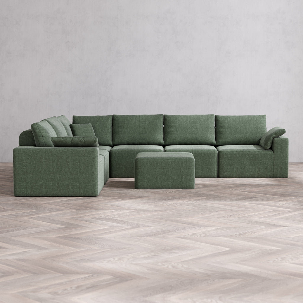 Modular Washable 6-Seater U Sectional Cloud + Bolster Sofa | Heirloom Velvet in Sage