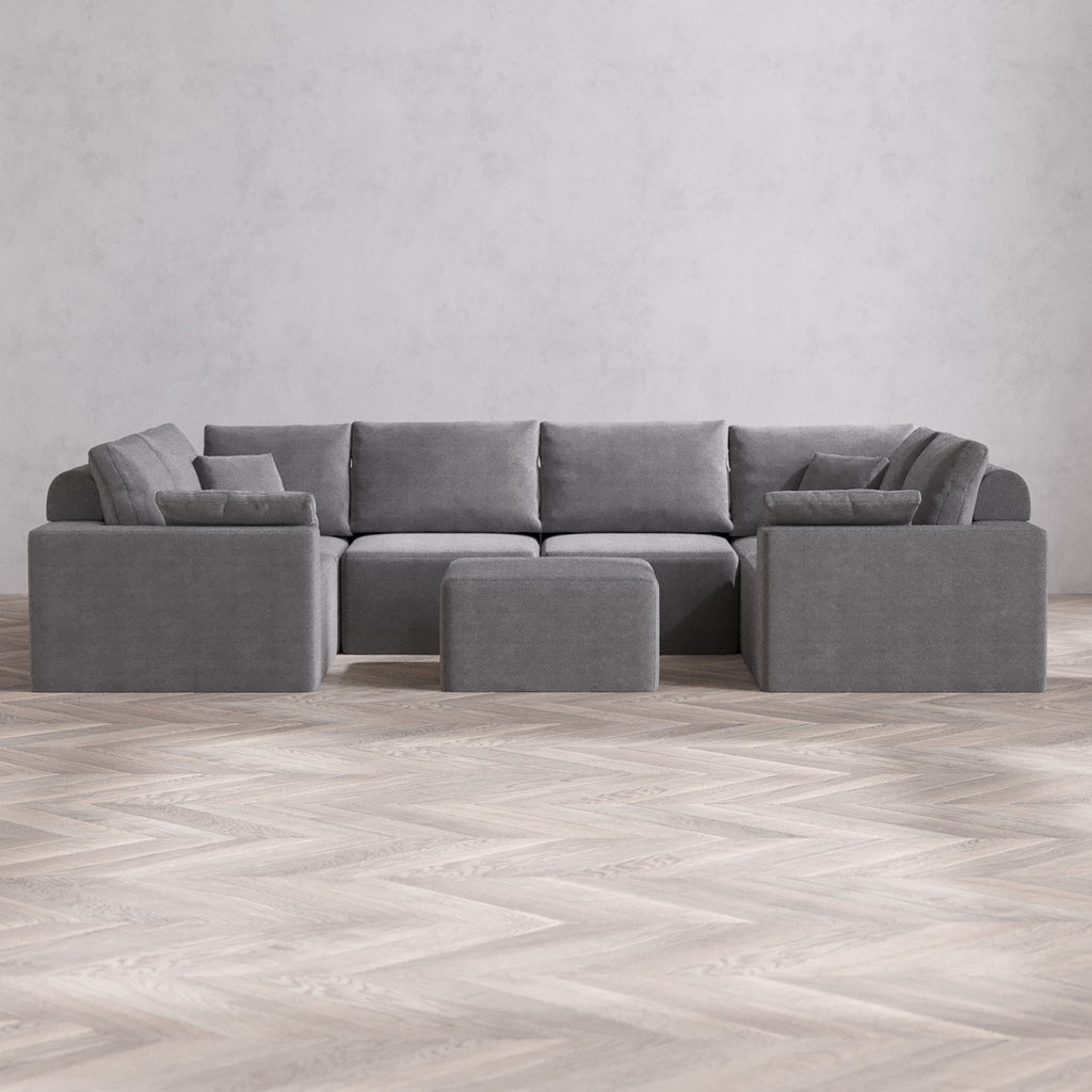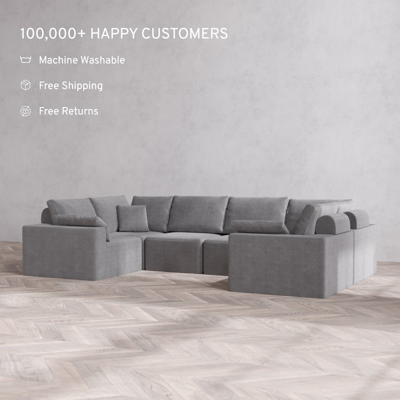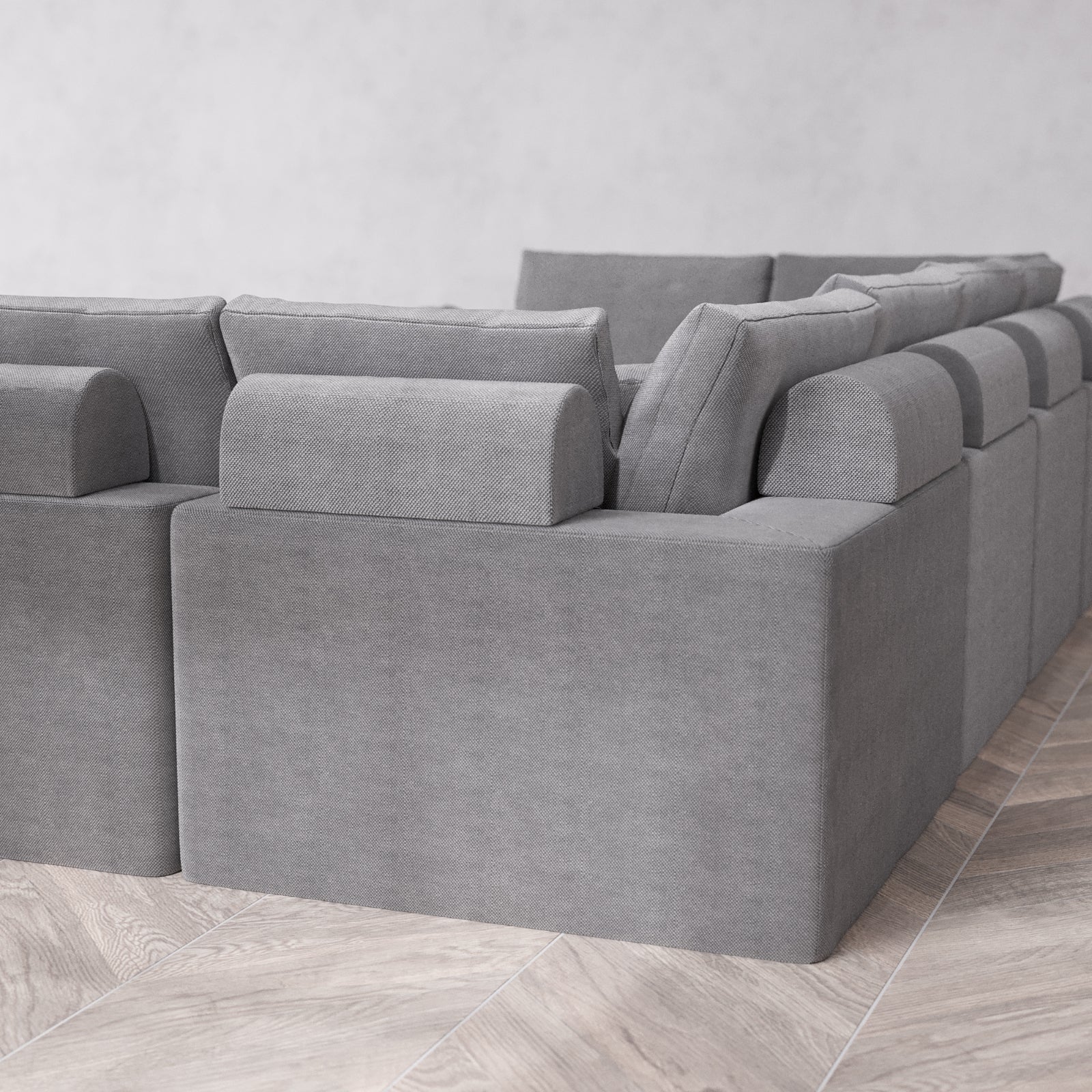 Modular Washable 6-Seater U Sectional Cloud + Bolster Sofa | Lux Weave in Slate