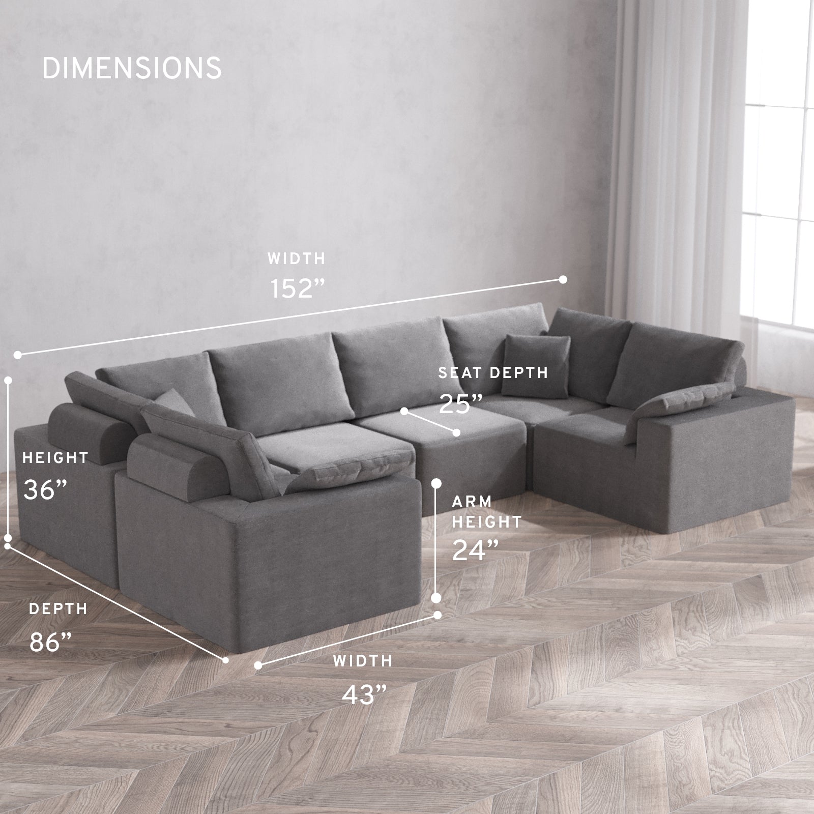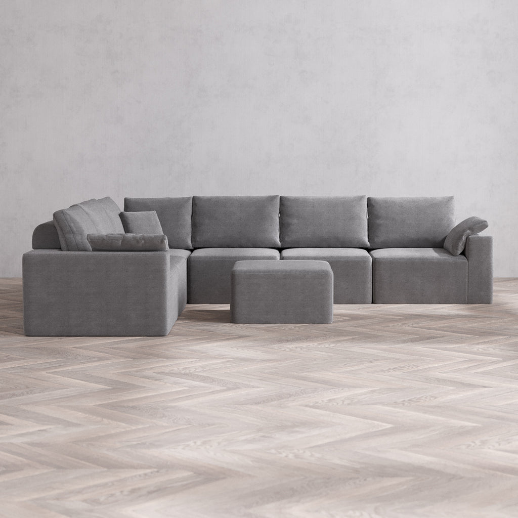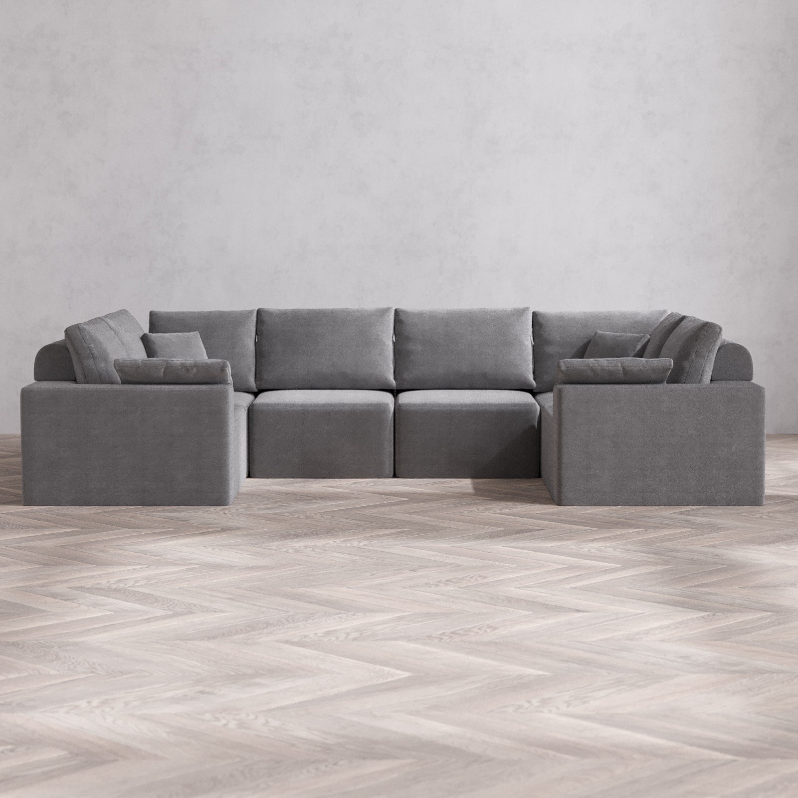 Modular Washable 6-Seater U Sectional Cloud + Bolster Sofa | Lux Weave in Slate