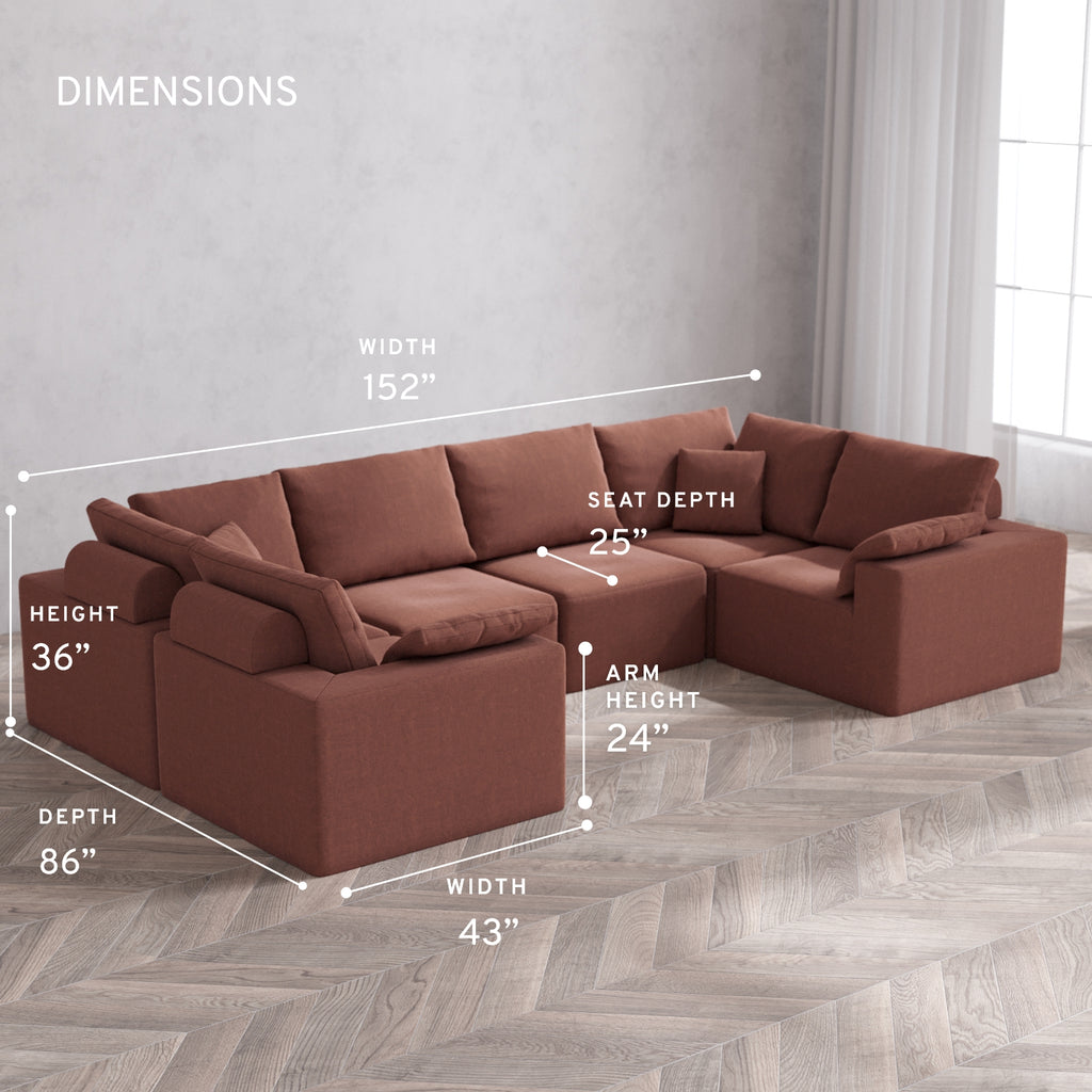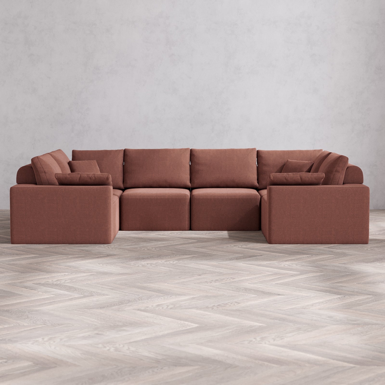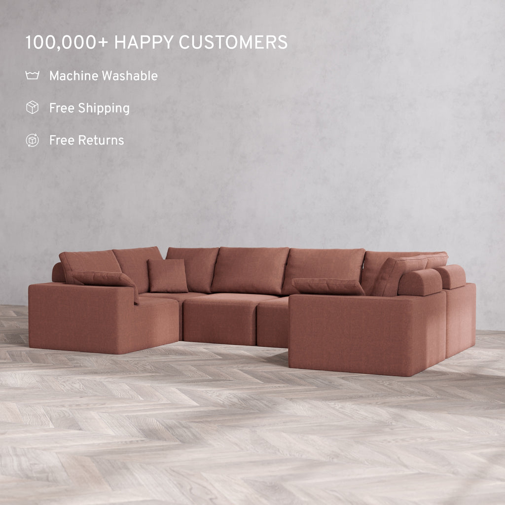 Modular Washable 6-Seater U Sectional Cloud + Bolster Sofa | Heirloom Velvet in Sumac