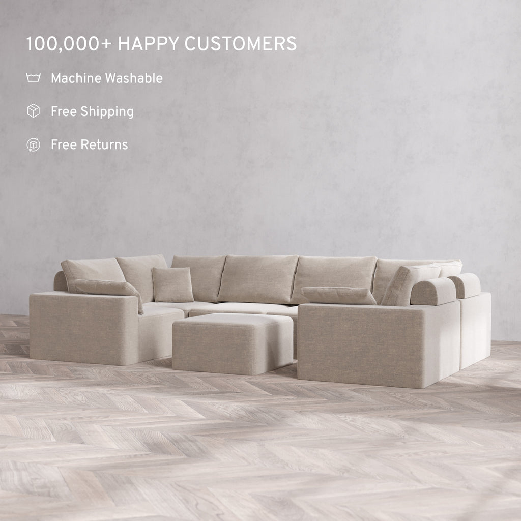 The Only Washable Cloud Sofa: With a waterproof frame and fabrics that resist pets, stains, and spills, this sofa is made to handle everyday messes. Our patent-pending covers are machine washable and fully interchangeable—buy extra sets to change up your look anytime.