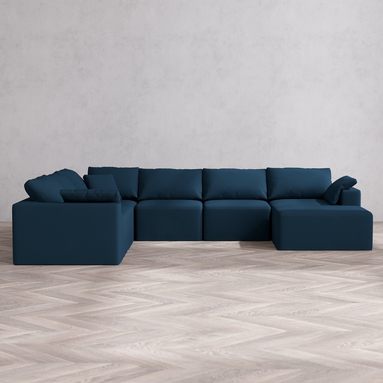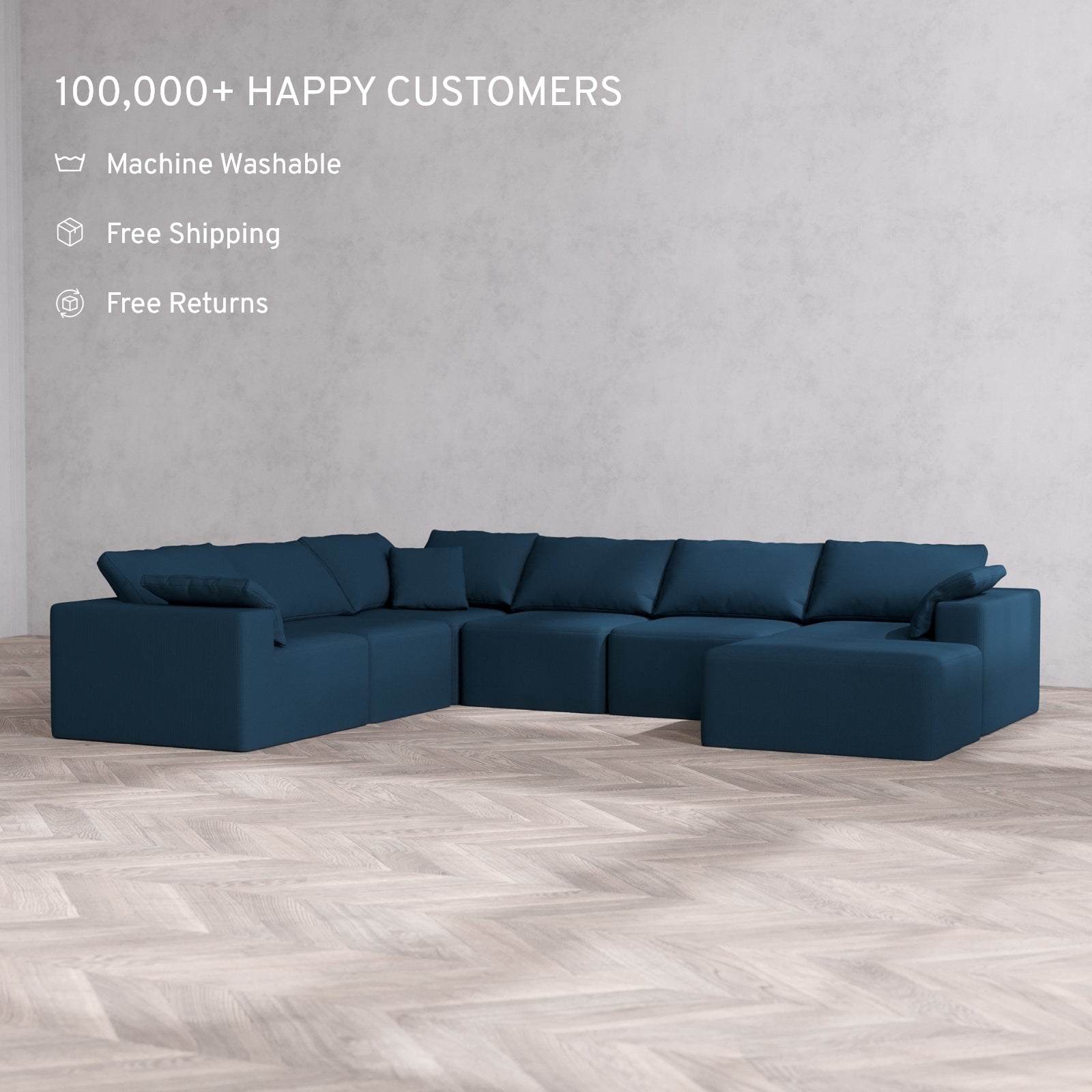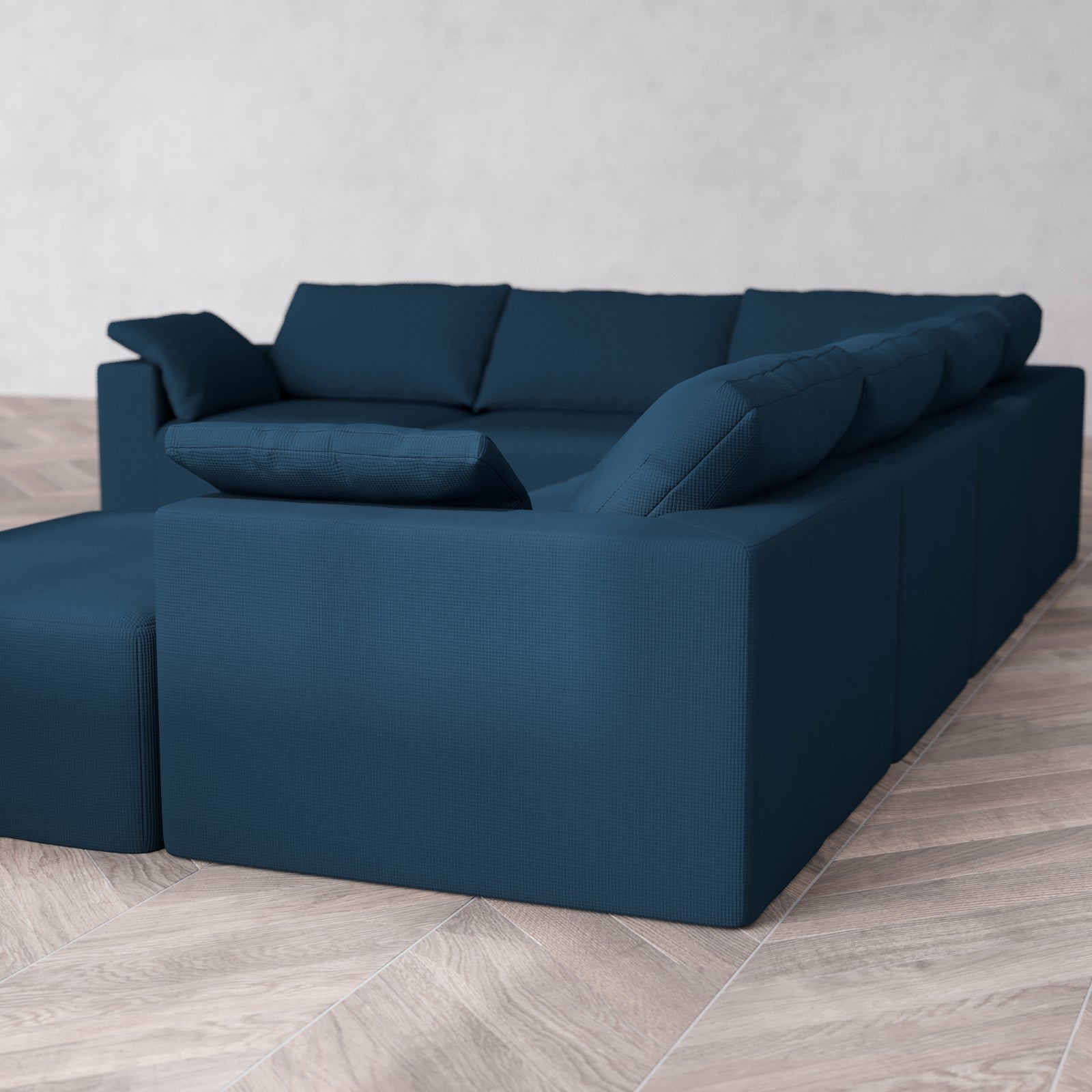 Modular Washable 7-Seater Corner Chaise Sectional Cloud Sofa | Arden Weave in Lazuli