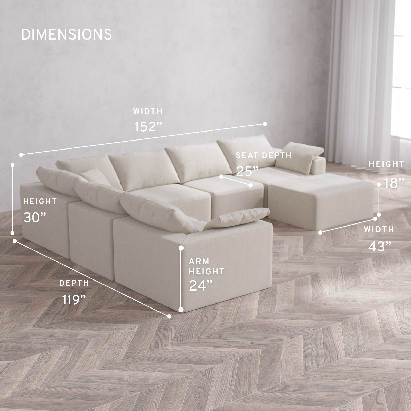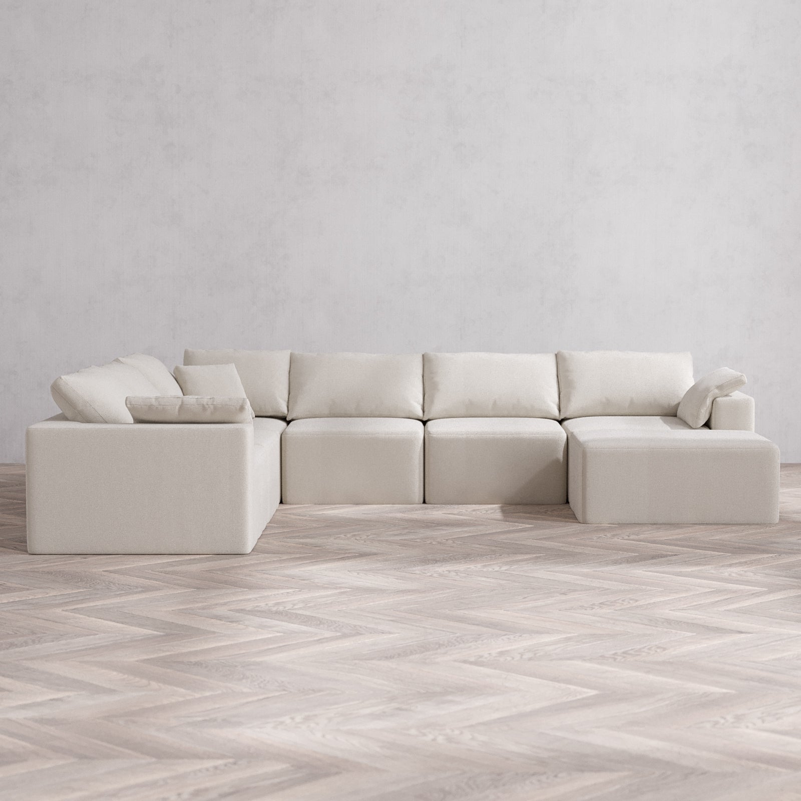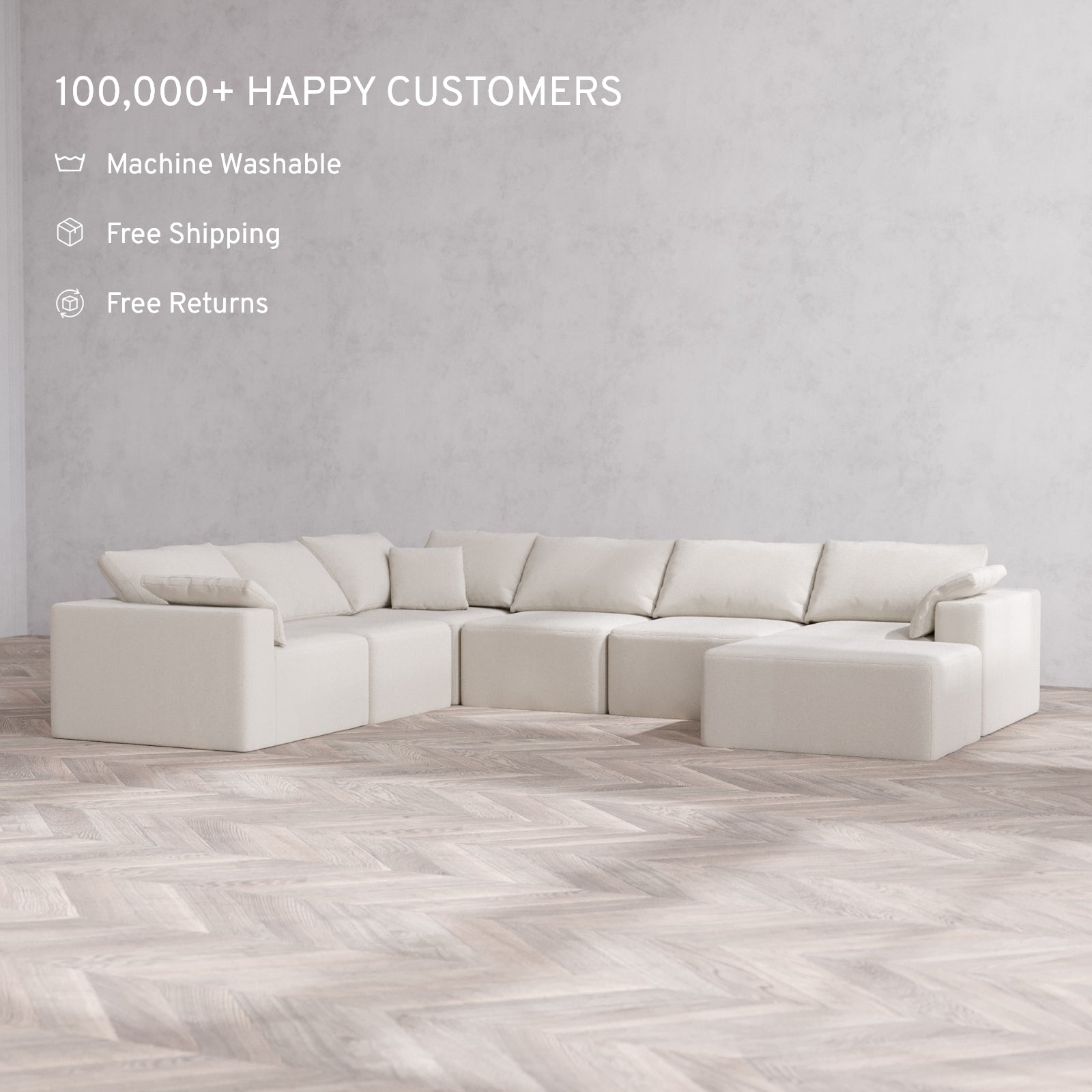 Modular Washable 7-Seater Corner Chaise Sectional Cloud Sofa | Lux Weave in Pearl