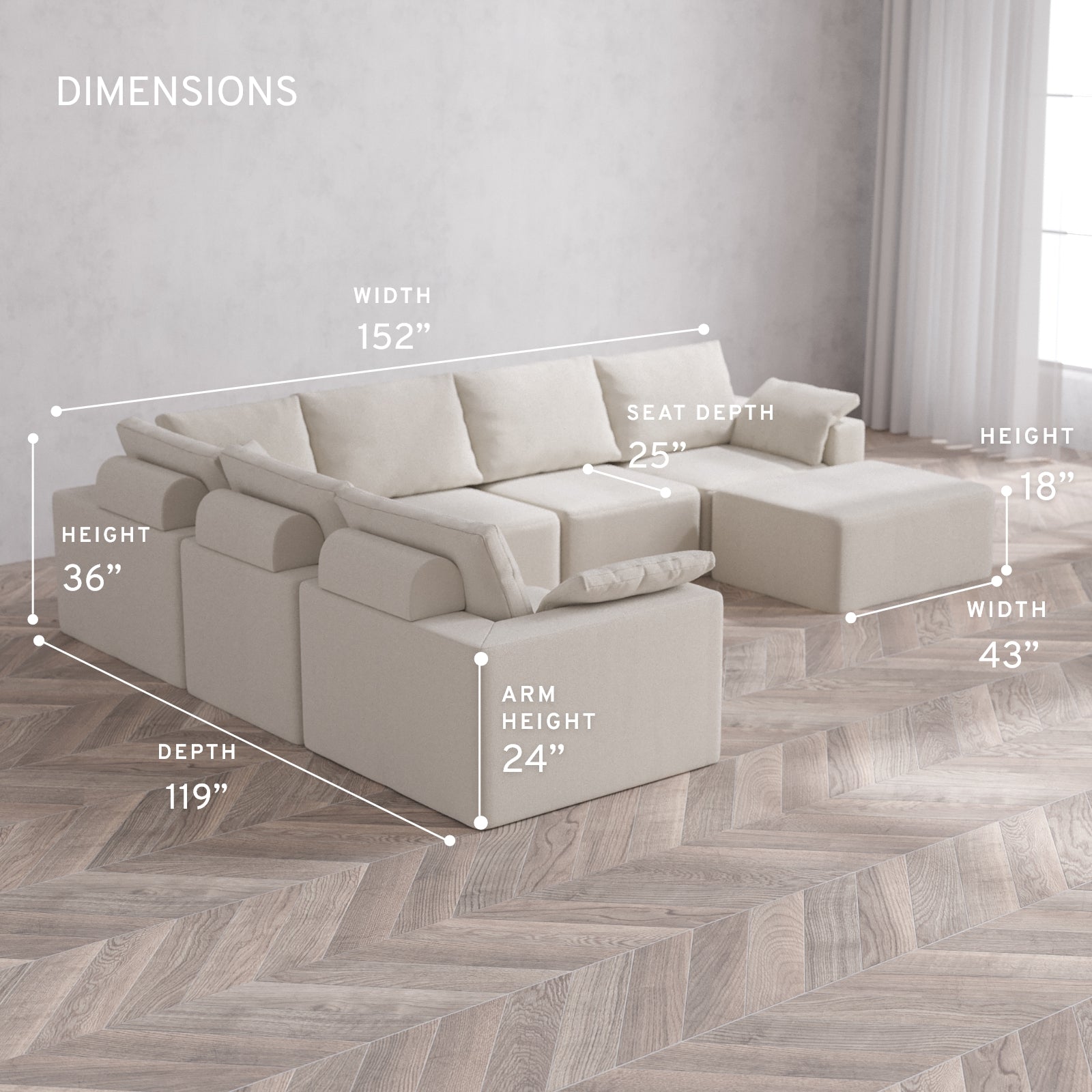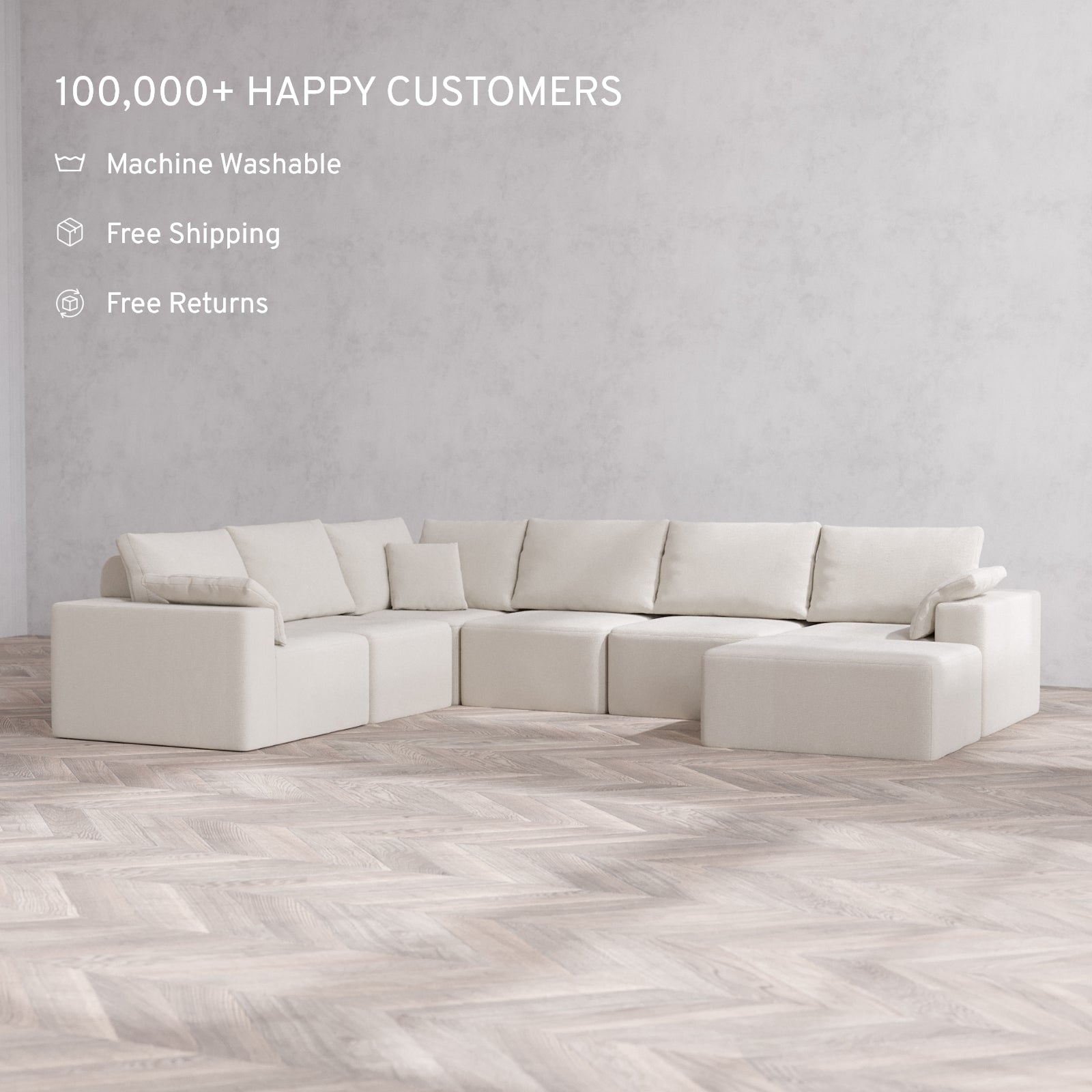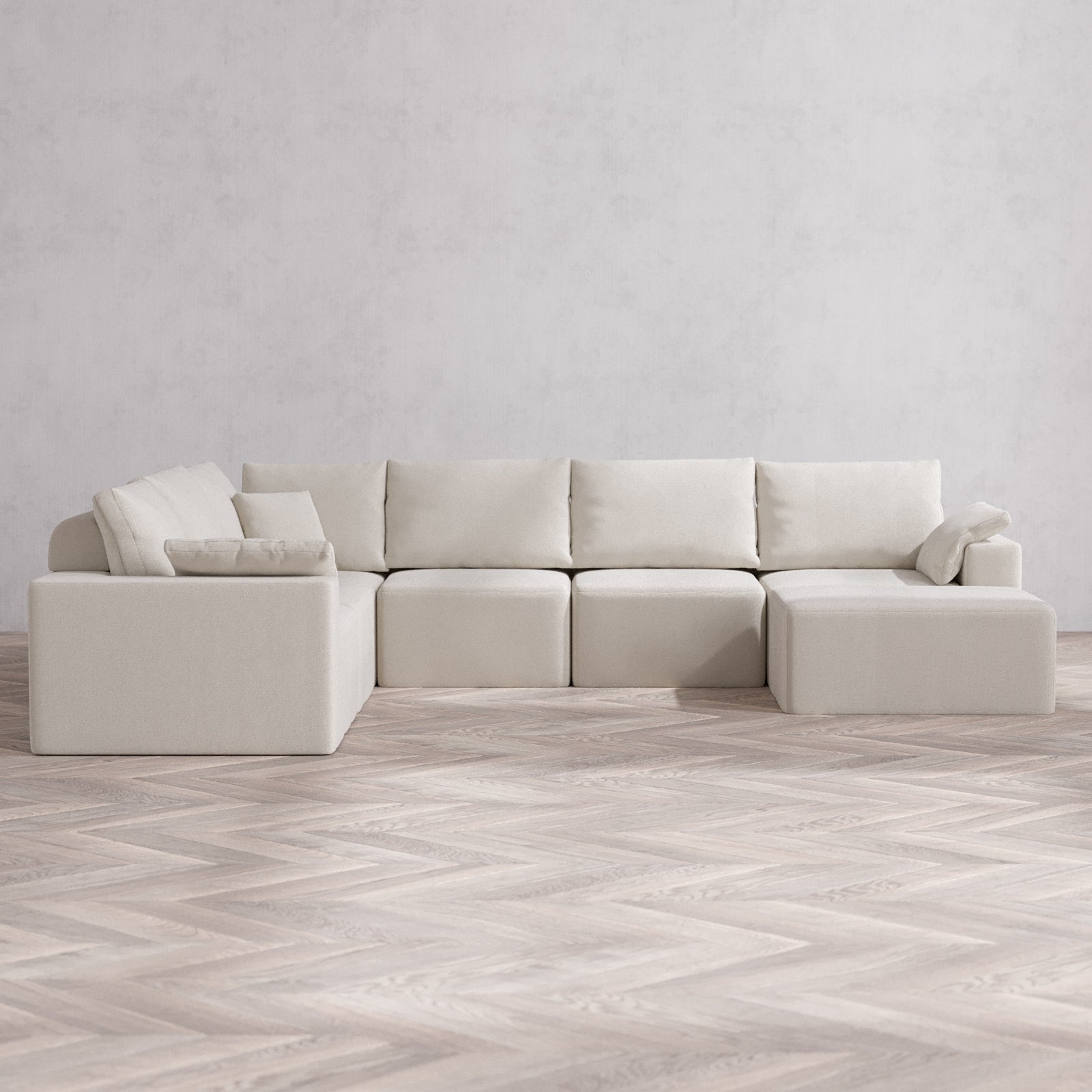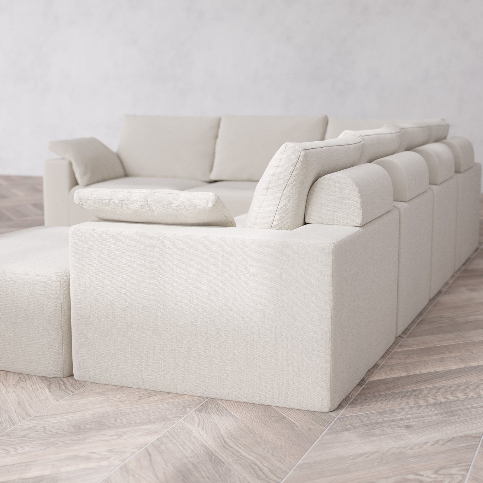 Modular Washable 7-Seater Corner Chaise Sectional Cloud + Bolster Sofa | Lux Weave in Pearl