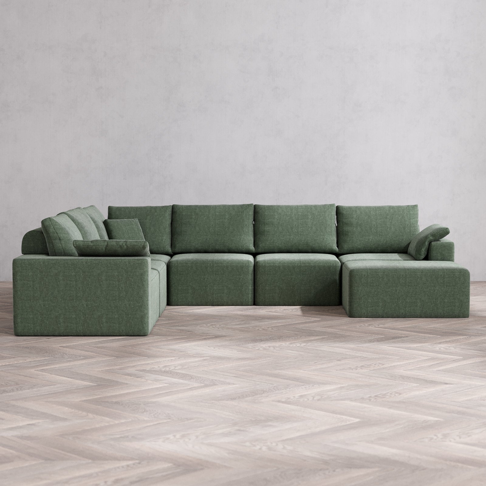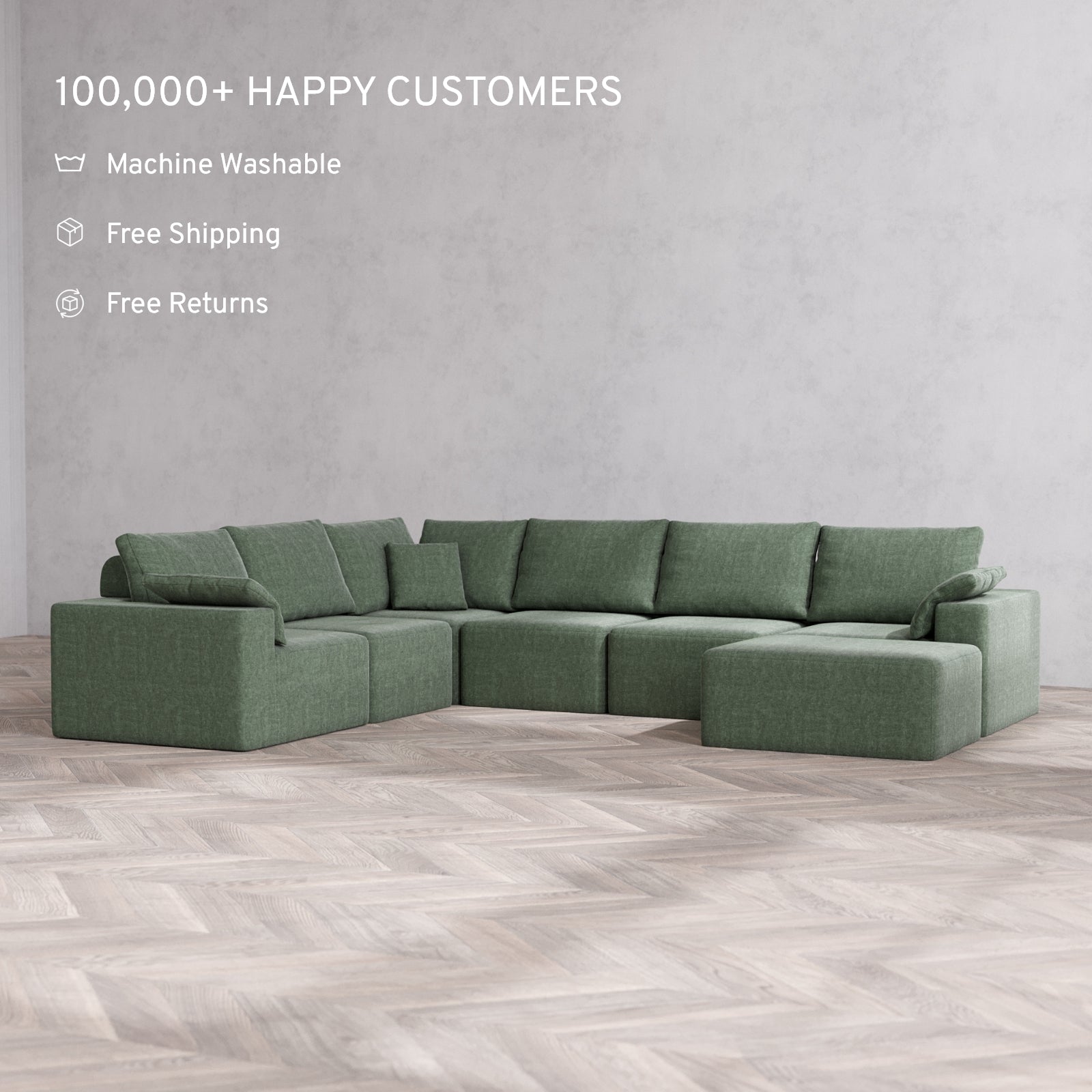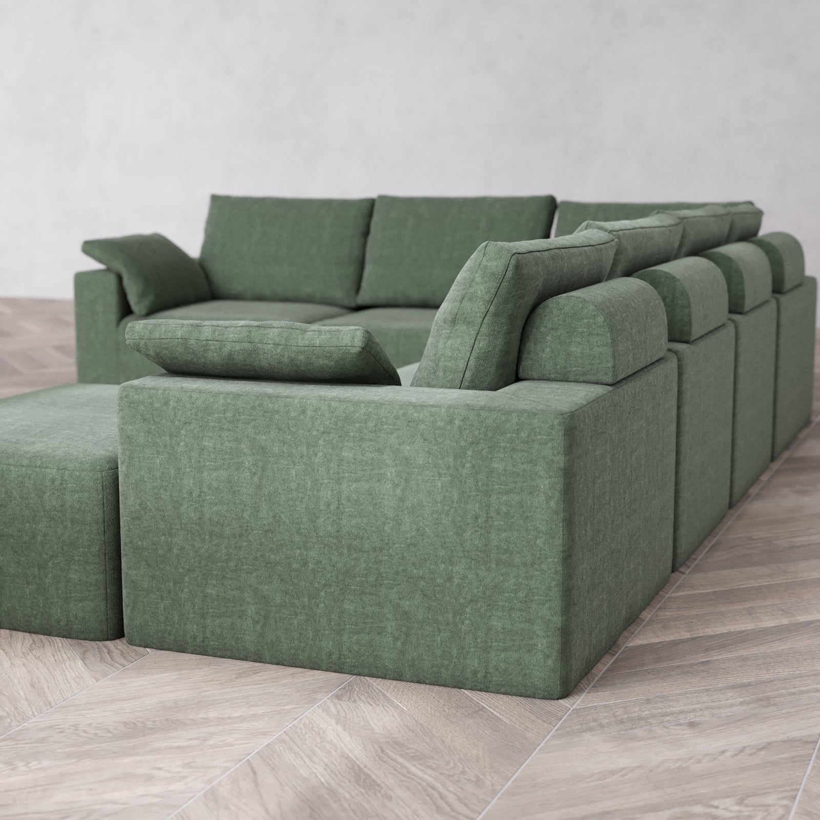 Modular Washable 7-Seater Corner Chaise Sectional Cloud + Bolster Sofa | Heirloom Velvet in Sage