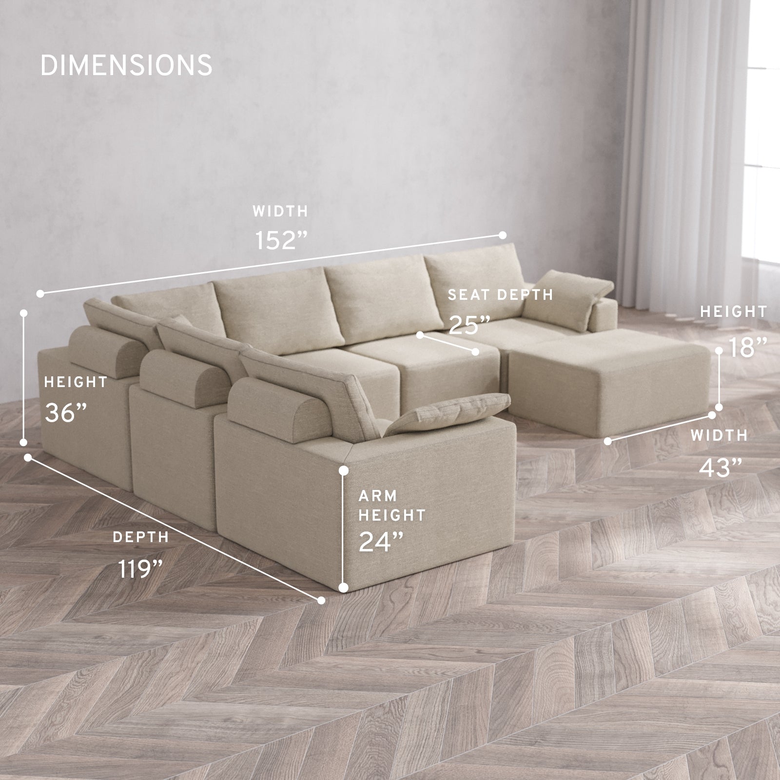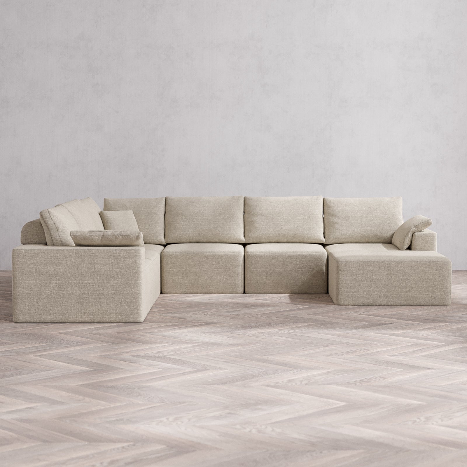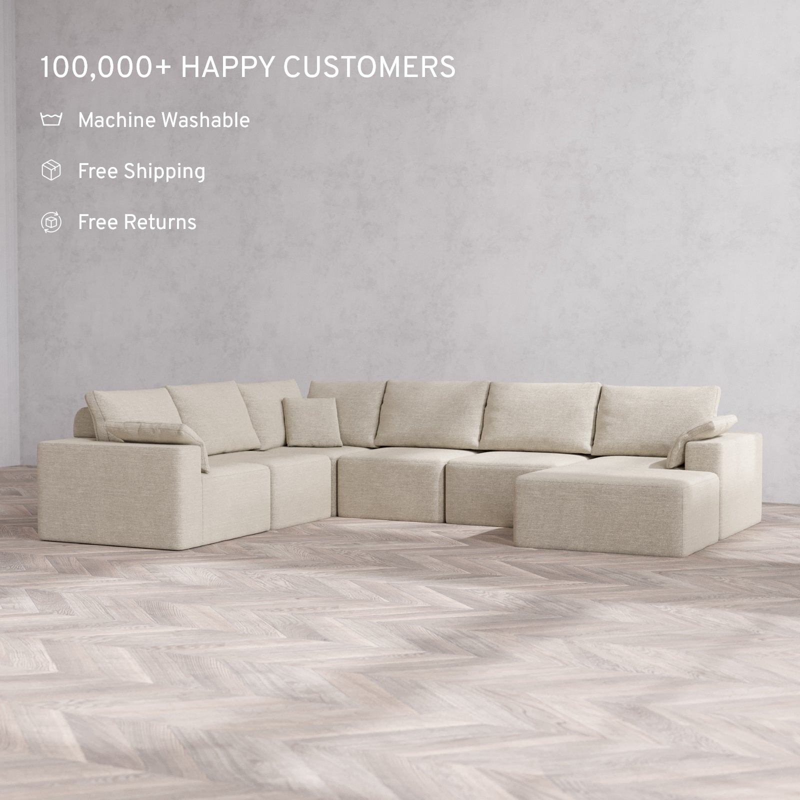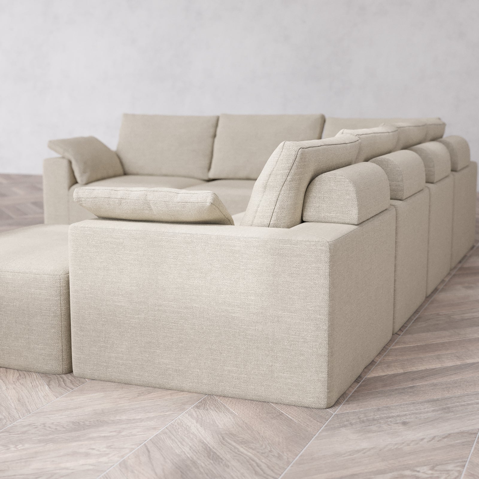 Modular Washable 7-Seater Corner Chaise Sectional Cloud + Bolster Sofa | Plush Twill in Sandstone