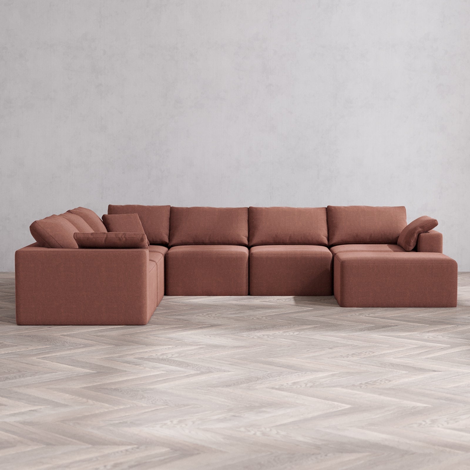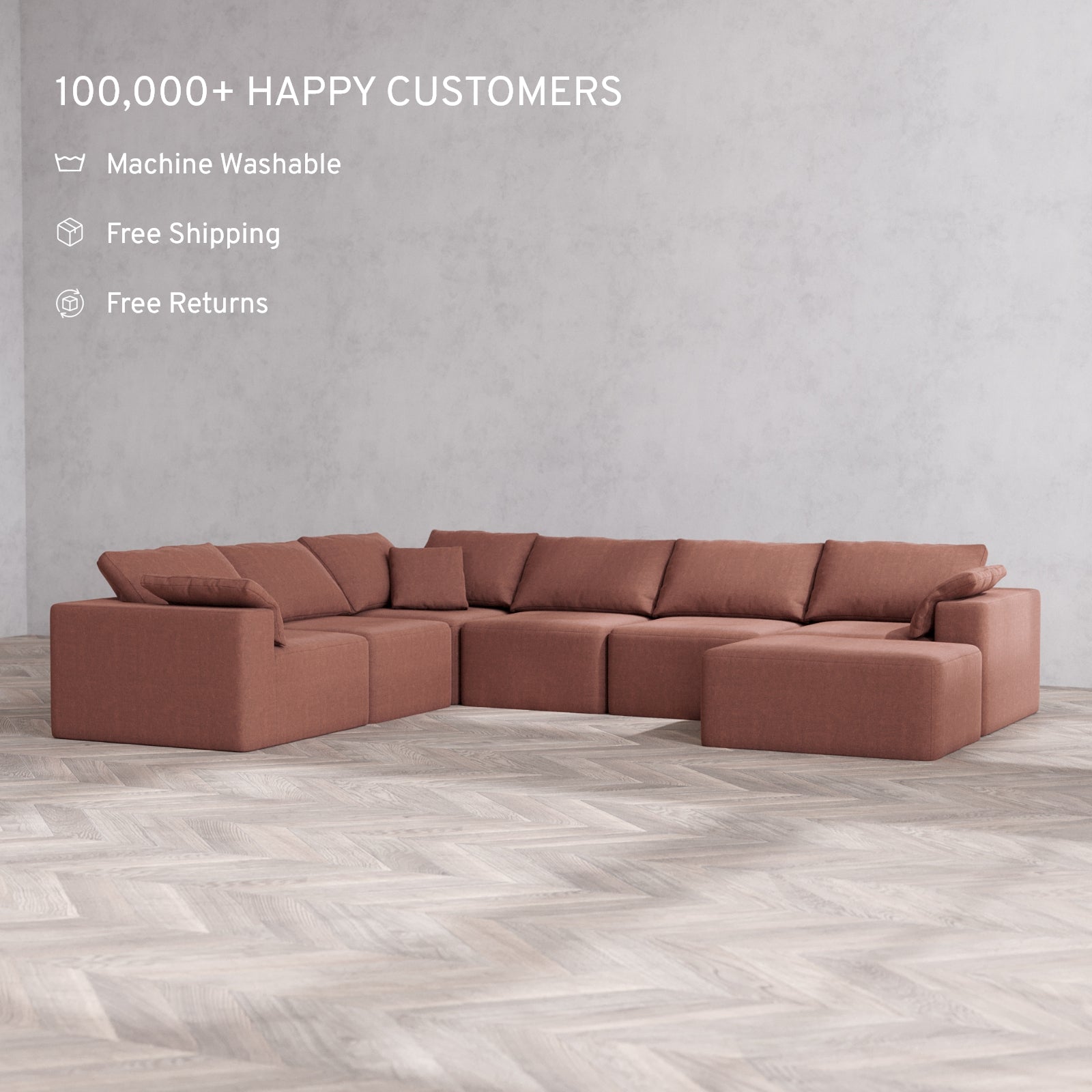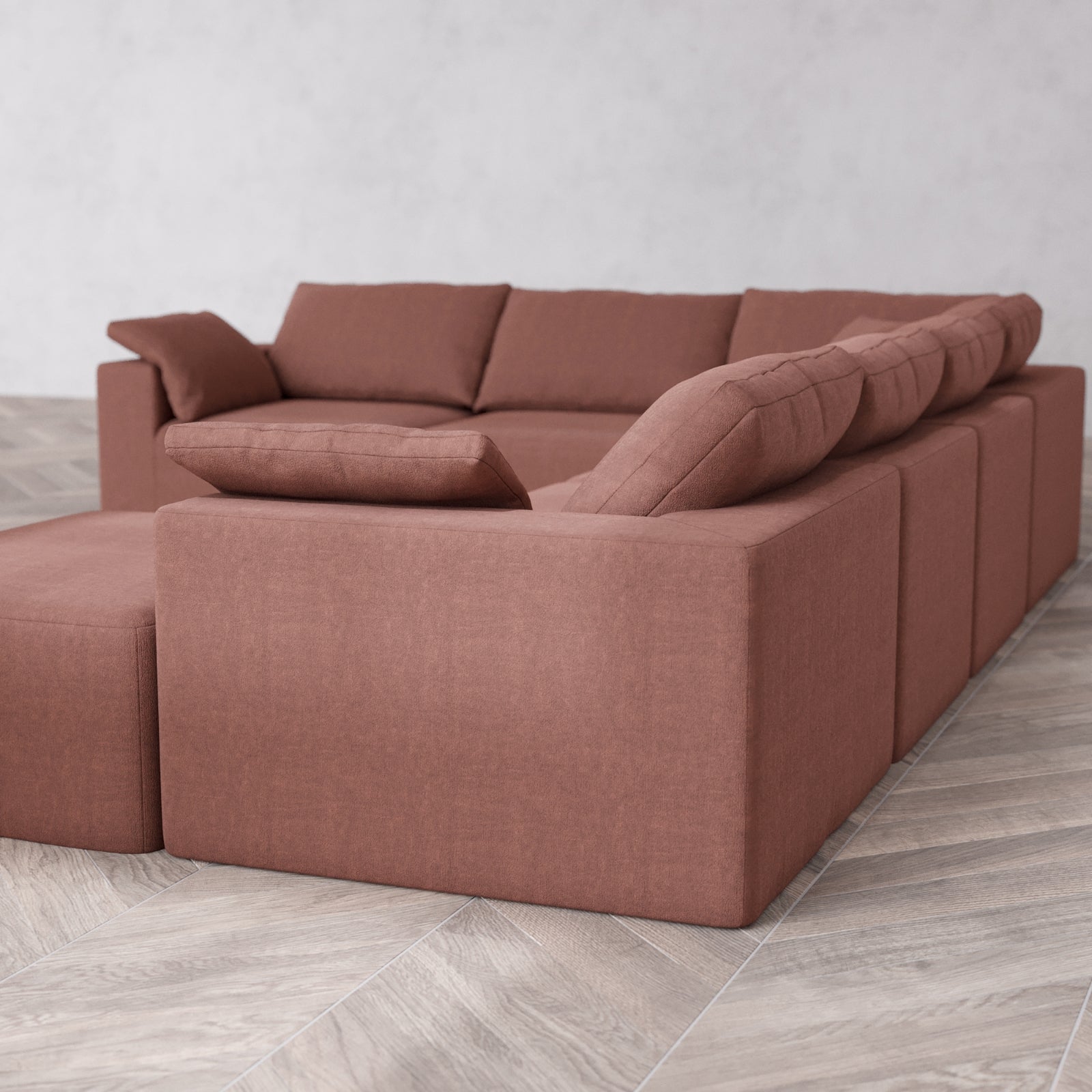 Modular Washable 7-Seater Corner Chaise Sectional Cloud Sofa | Heirloom Velvet in Sumac