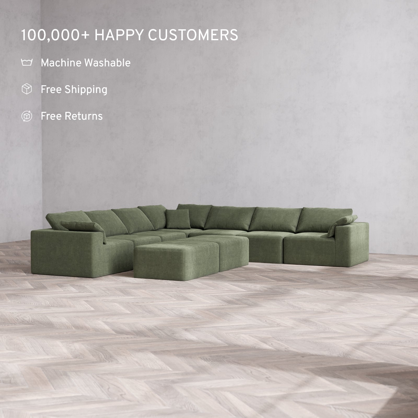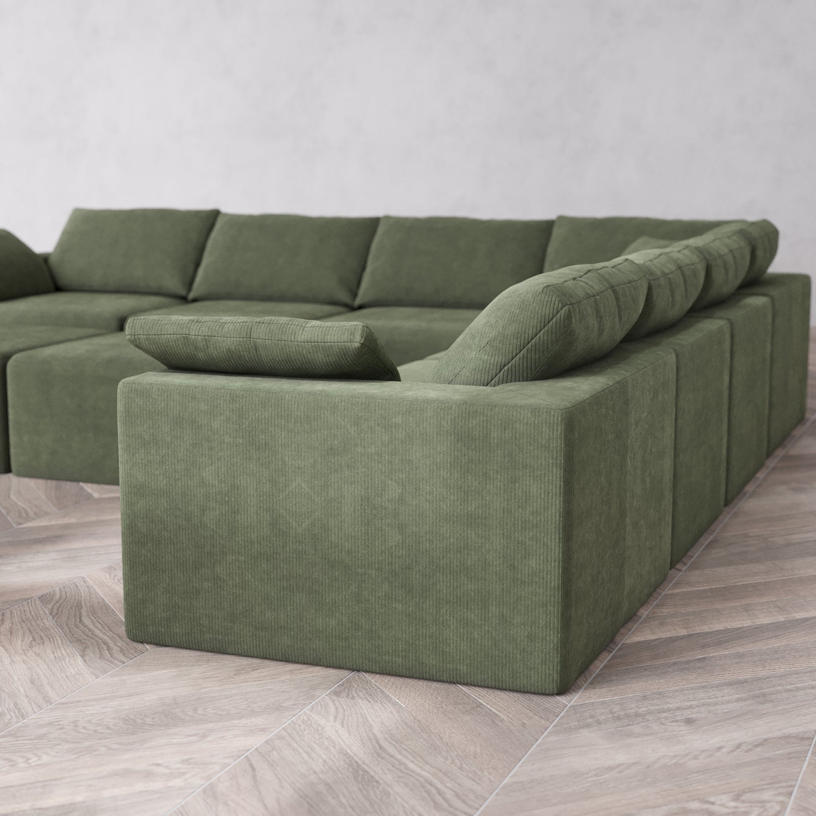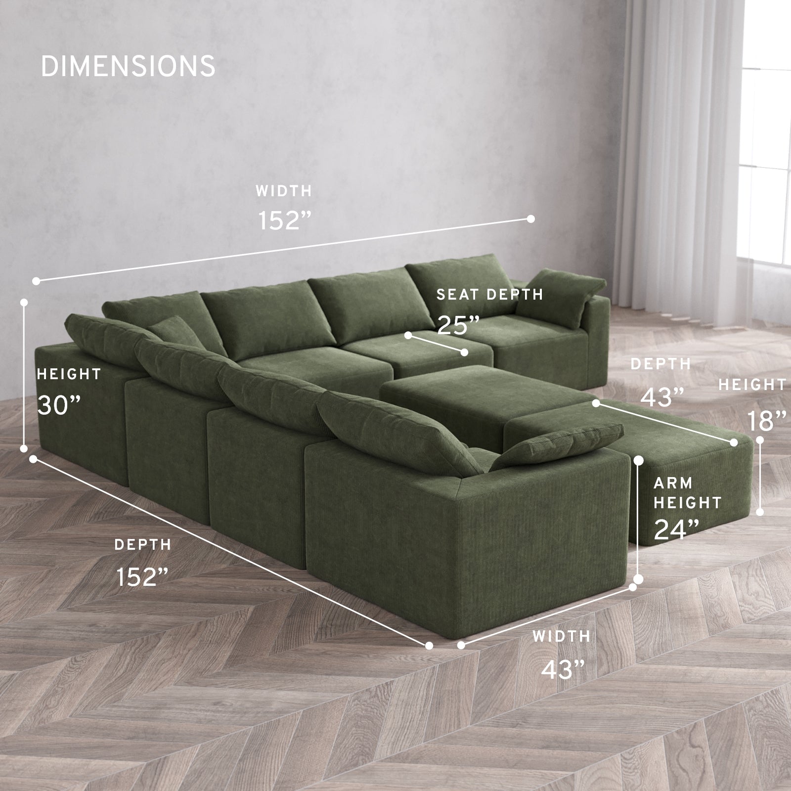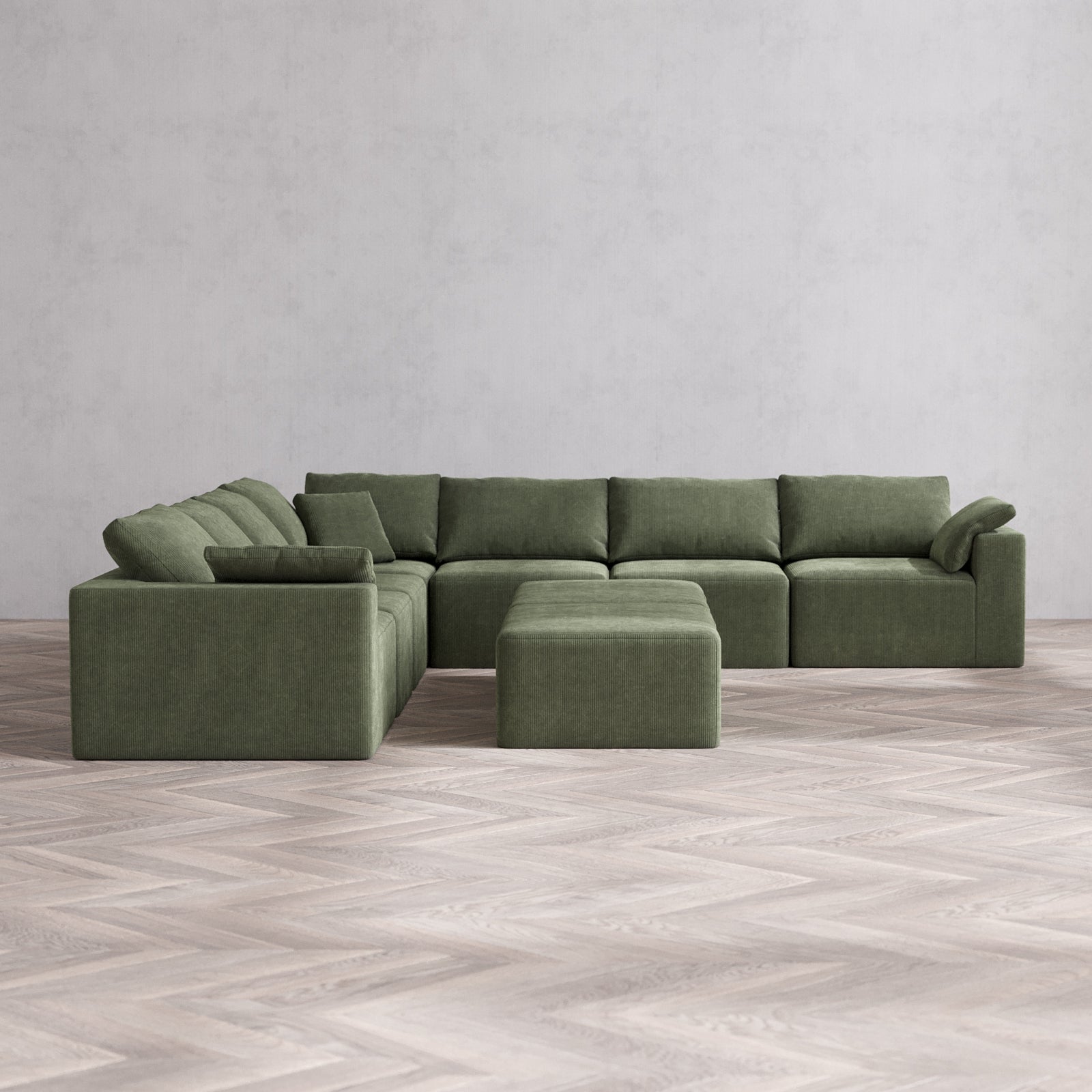 Modular Washable 7-Seater Corner Sectional + Chaise Ottoman Bench Cloud Sofa | Luxe Corduroy in Juniper