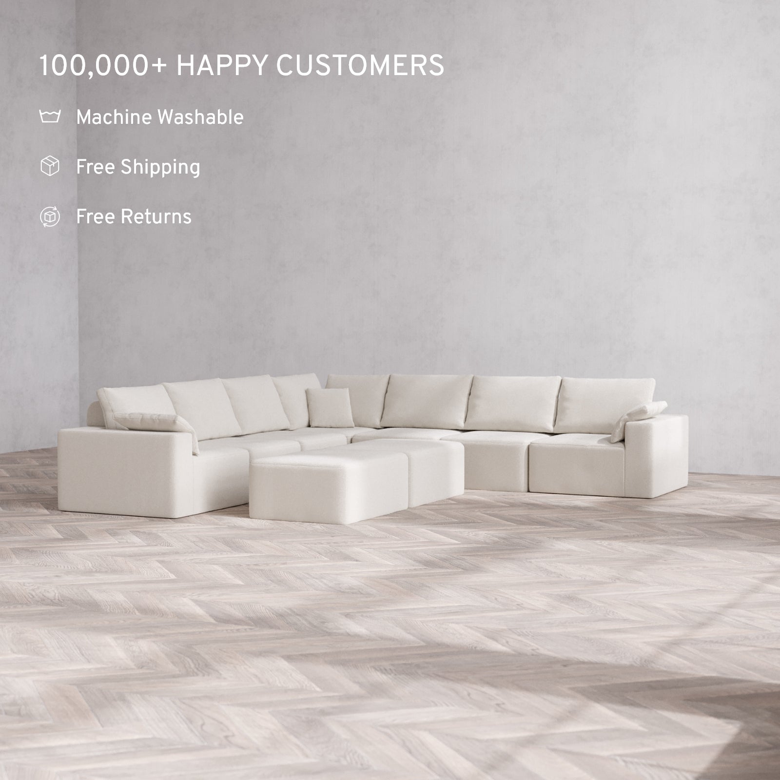 Machine Washable: Every piece of fabric—including the internal quilted duvet—is fully removable and machine washable. It’s the only Cloud-style sofa you can truly deep clean, effortlessly.