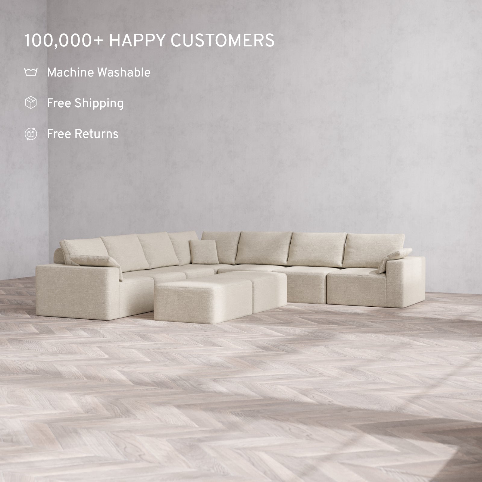 Machine Washable: Every piece of fabric—including the internal quilted duvet—is fully removable and machine washable. It’s the only Cloud-style sofa you can truly deep clean, effortlessly.