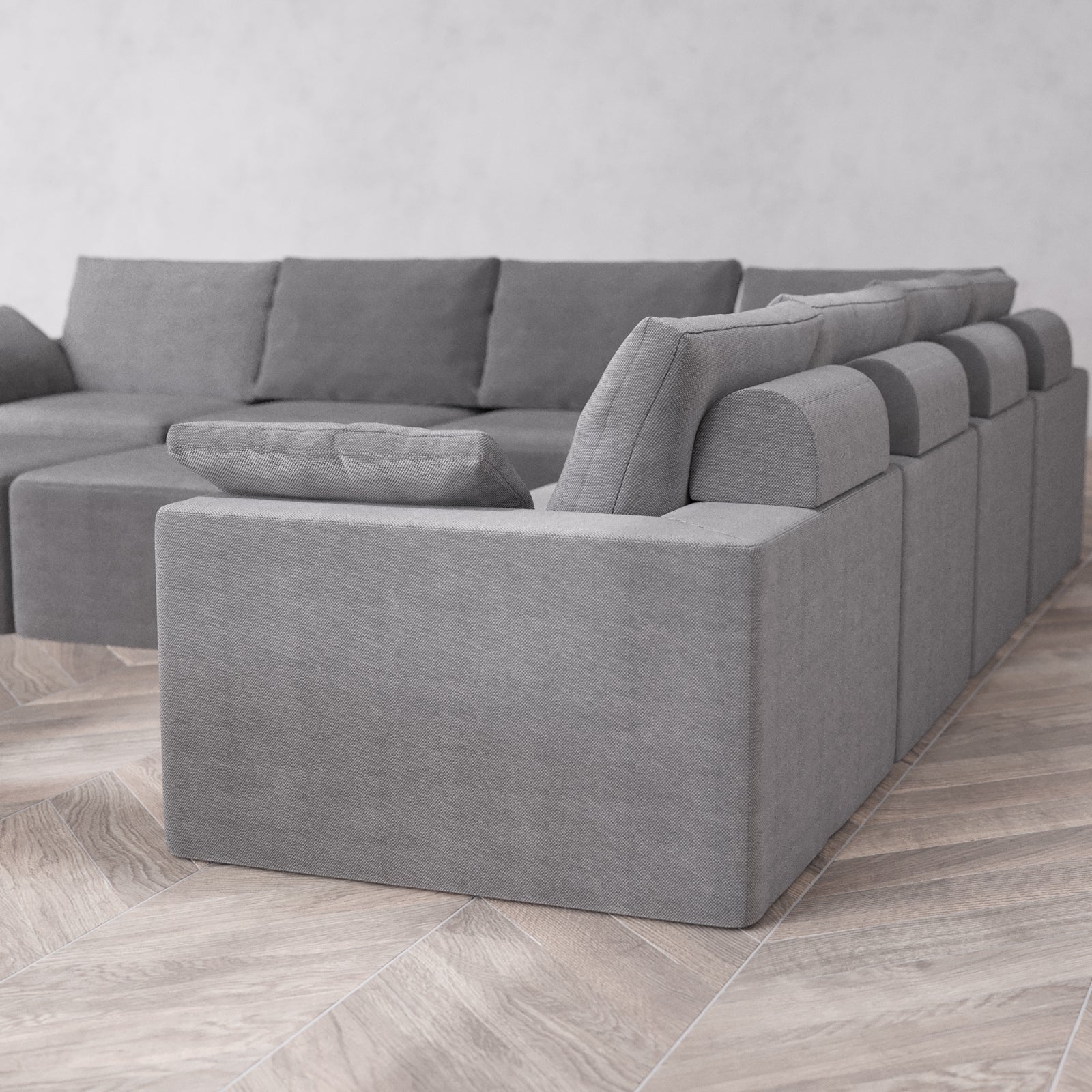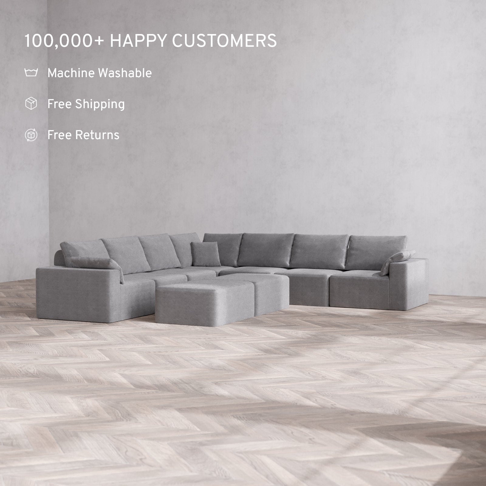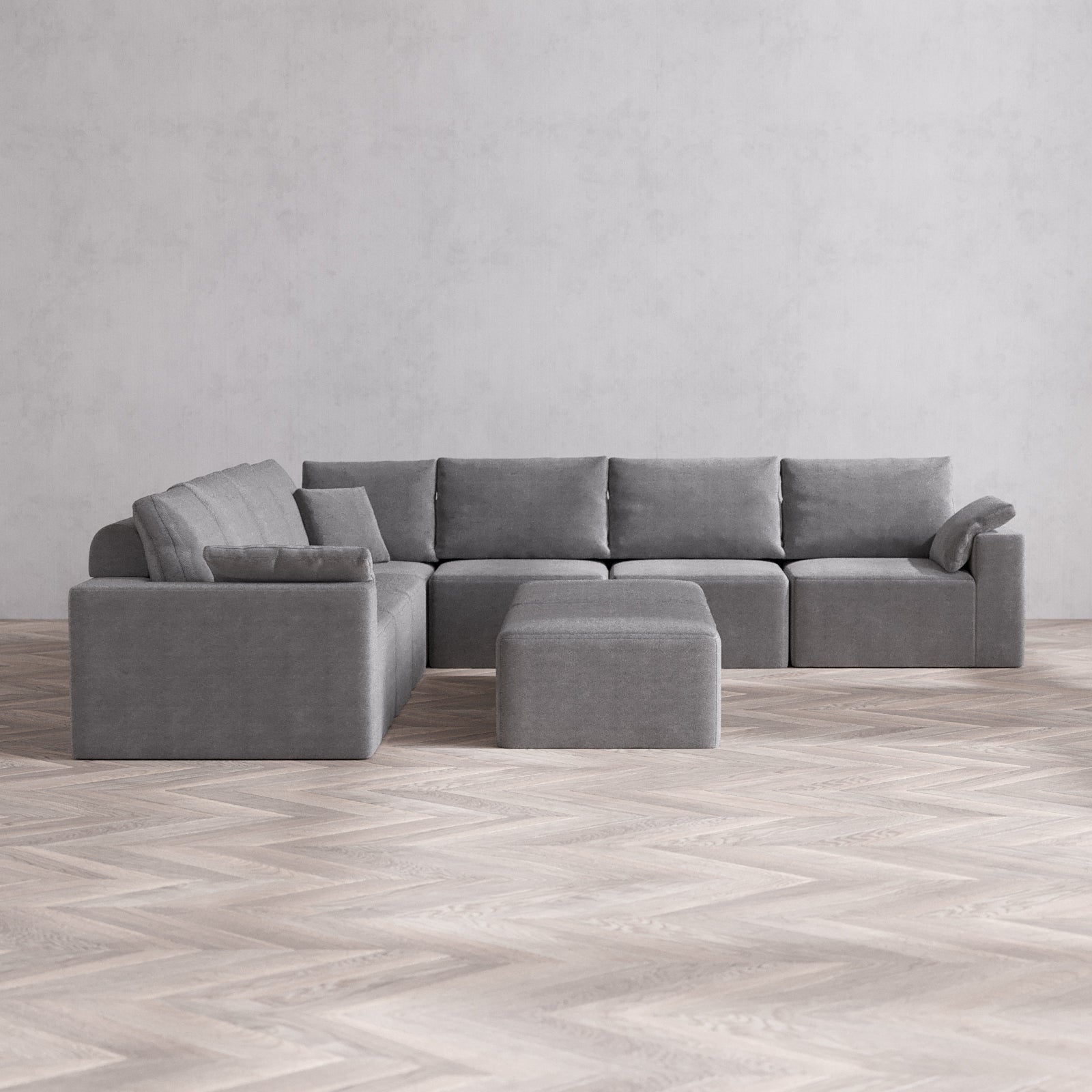 Modular Washable 7-Seater Corner Sectional + Chaise Ottoman Bench Cloud + Bolster Sofa | Lux Weave in Slate