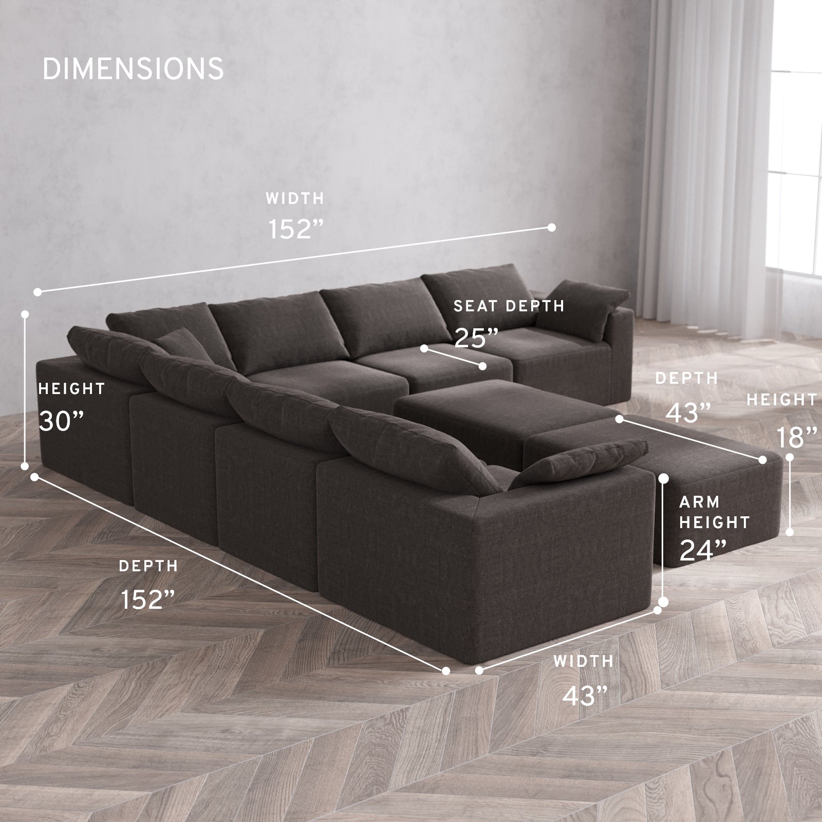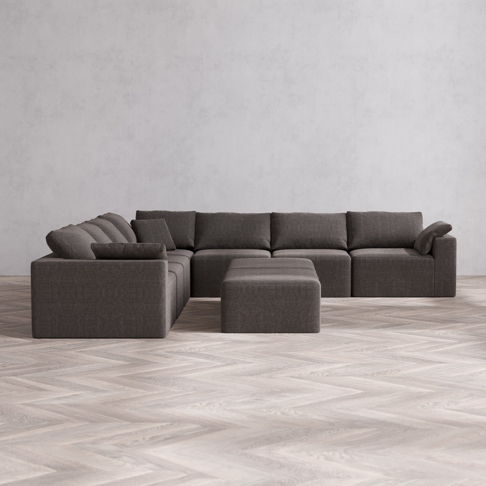 Modular Washable 7-Seater Corner Sectional + Chaise Ottoman Bench Cloud Sofa | Heirloom Velvet in Truffle