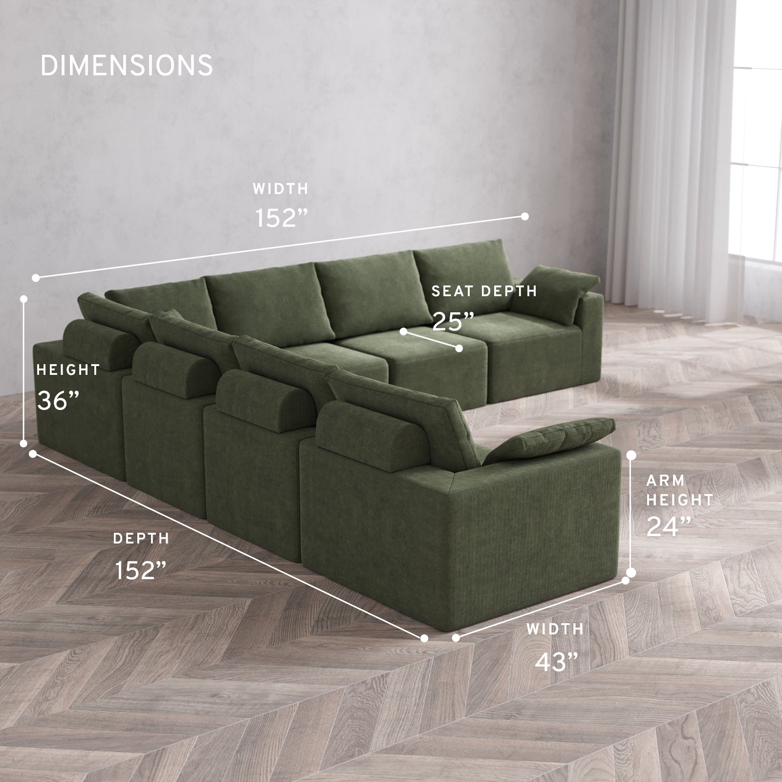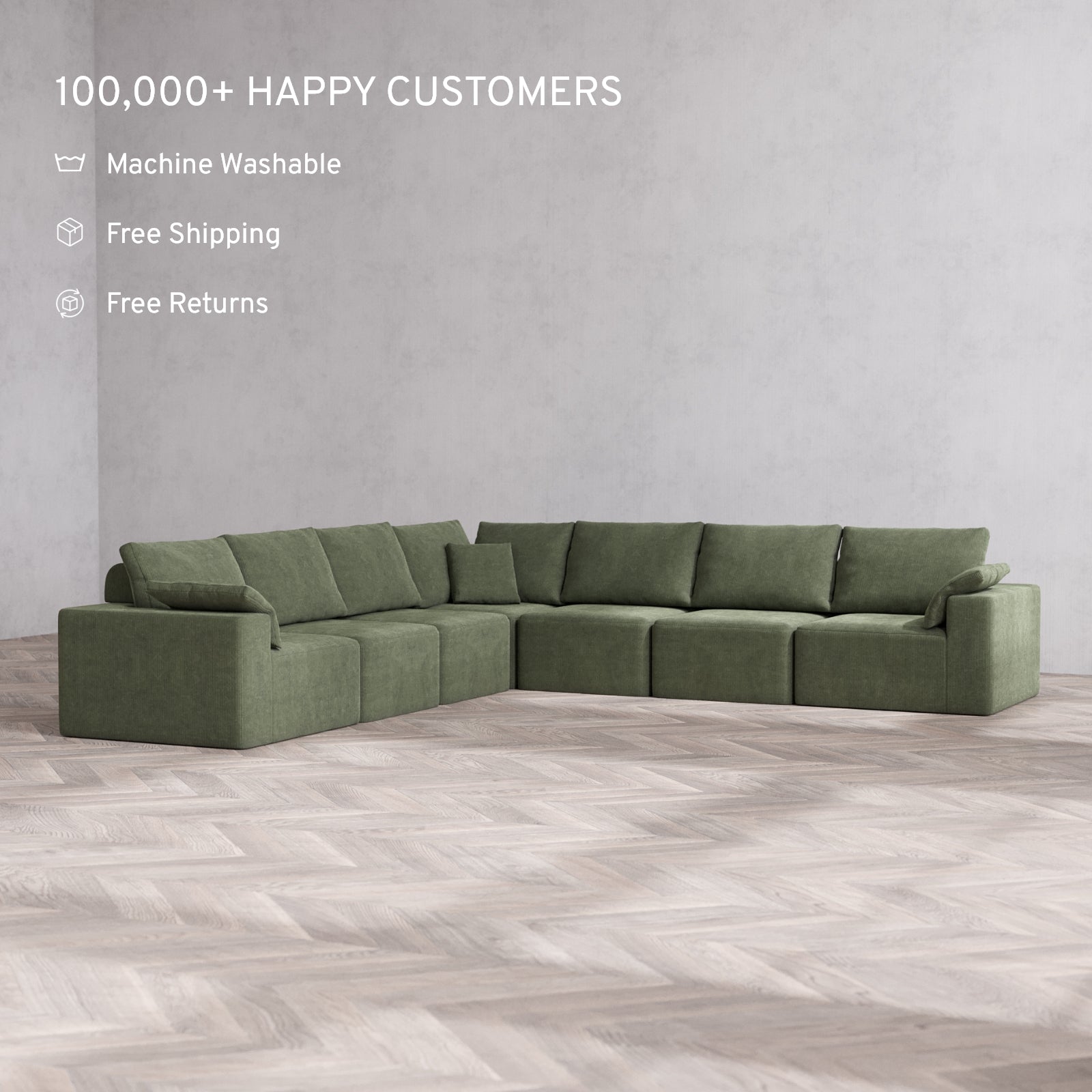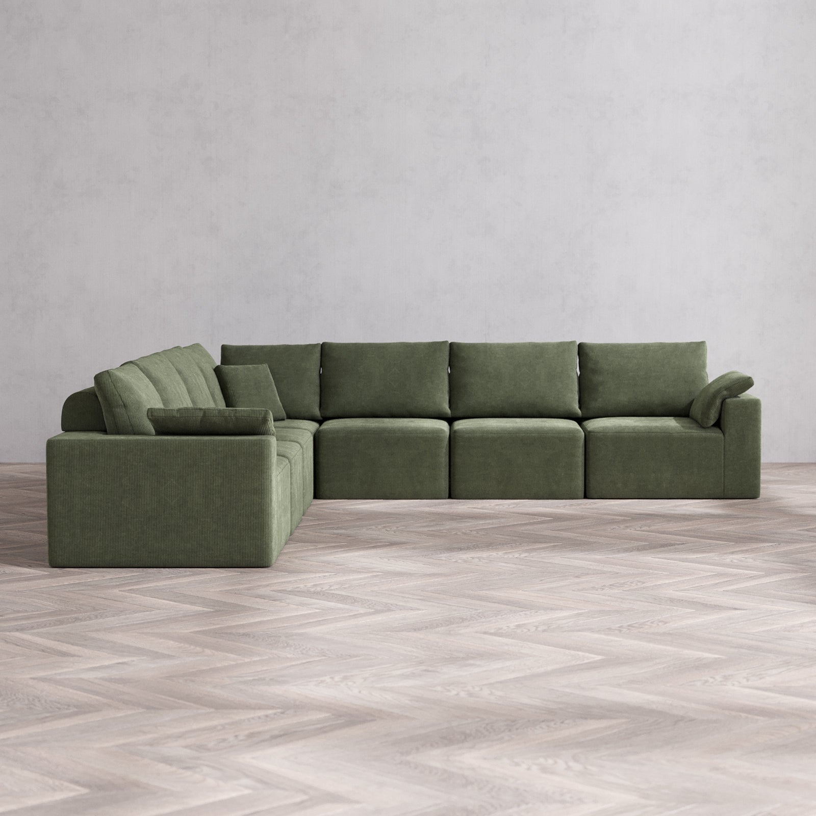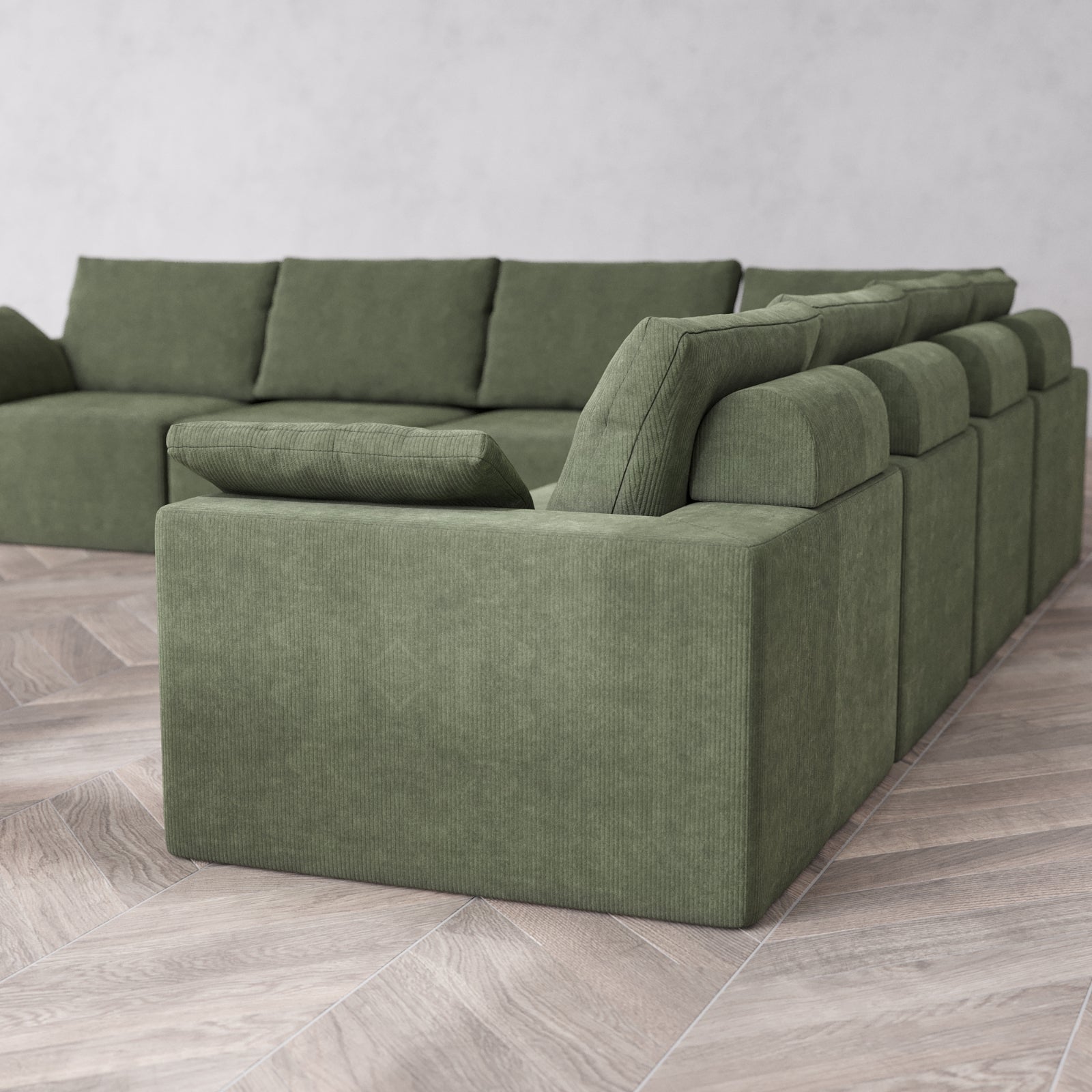 Modular Washable 7-Seater Corner Sectional Cloud + Bolster Sofa | Luxe Corduroy in Juniper