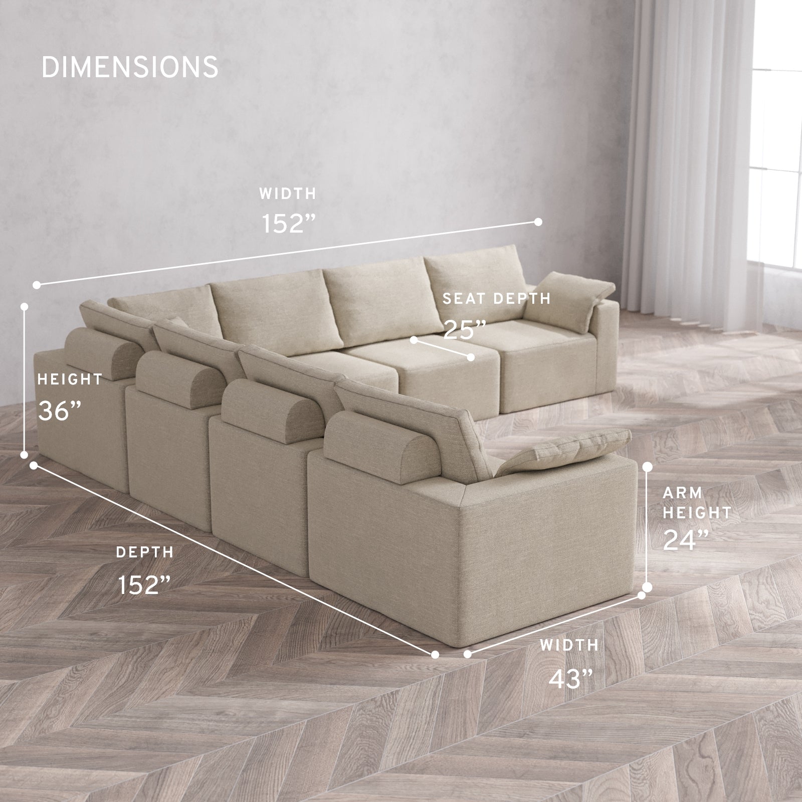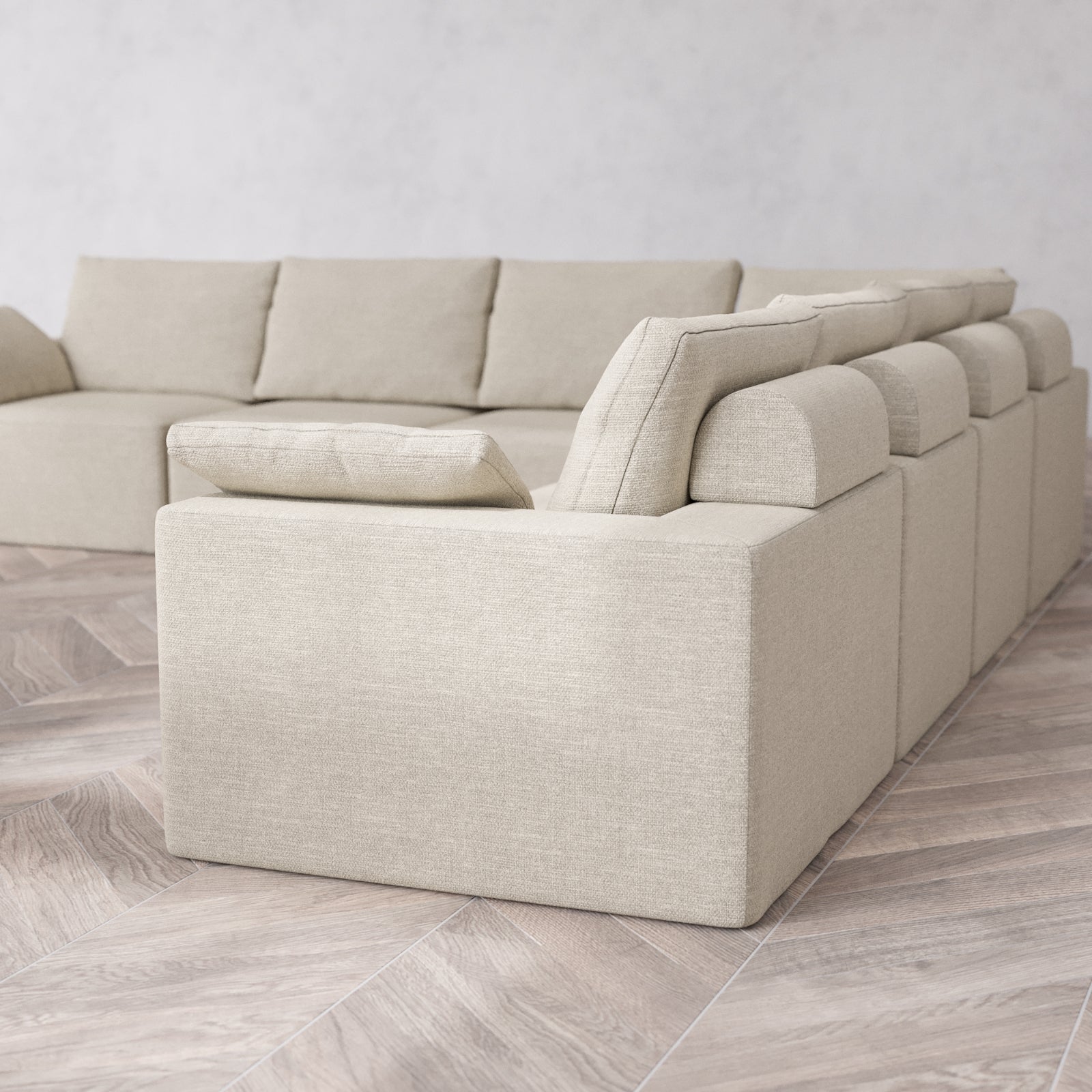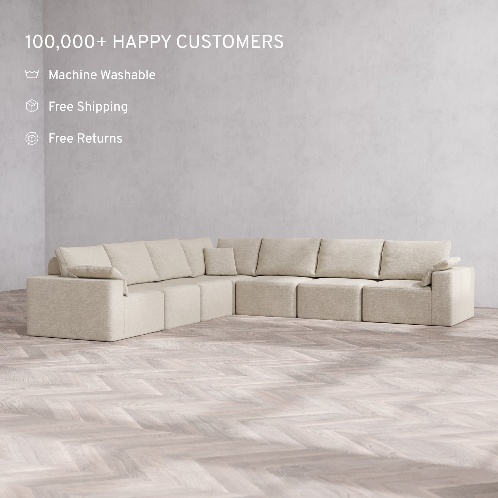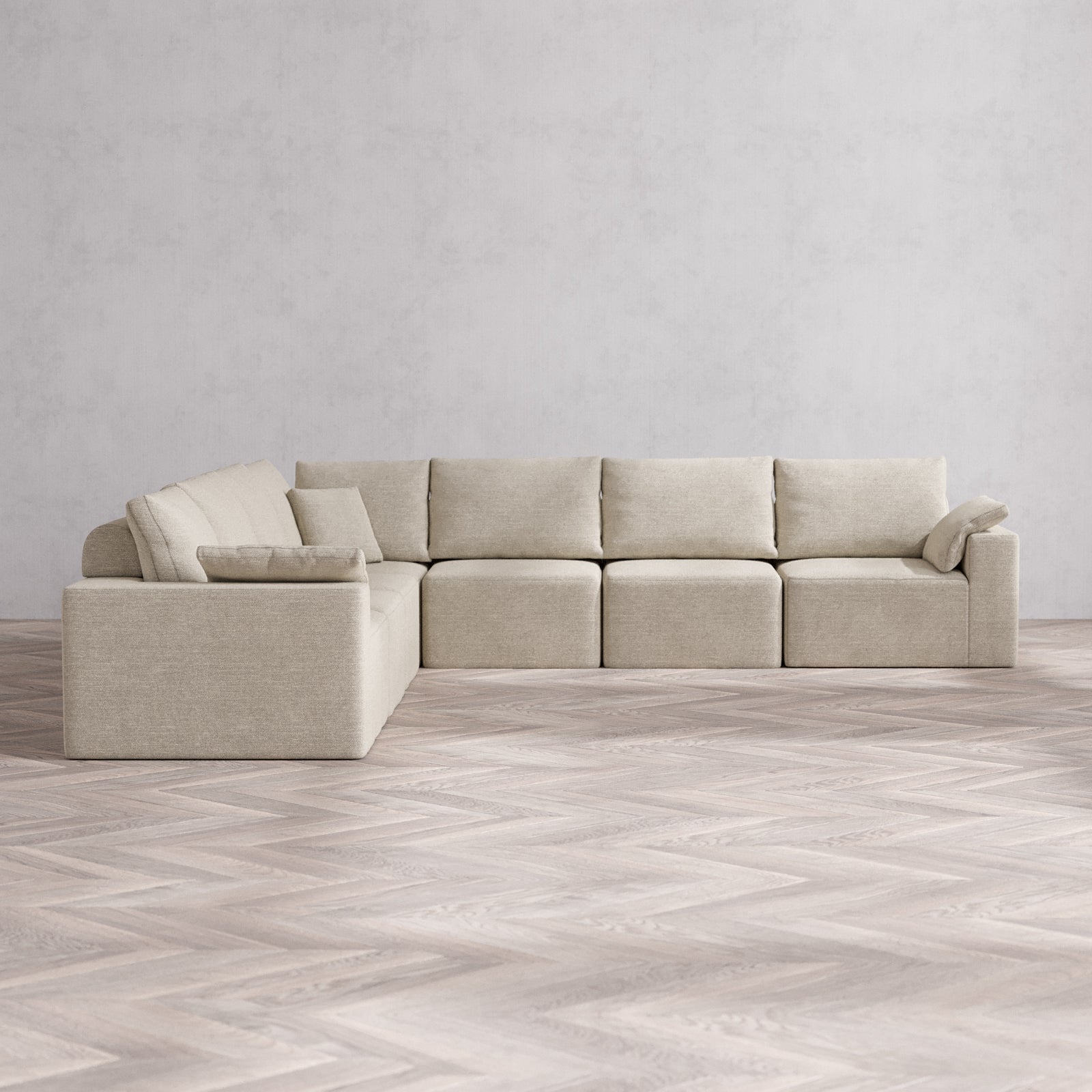 Modular Washable 7-Seater Corner Sectional Cloud + Bolster Sofa | Plush Twill in Sandstone