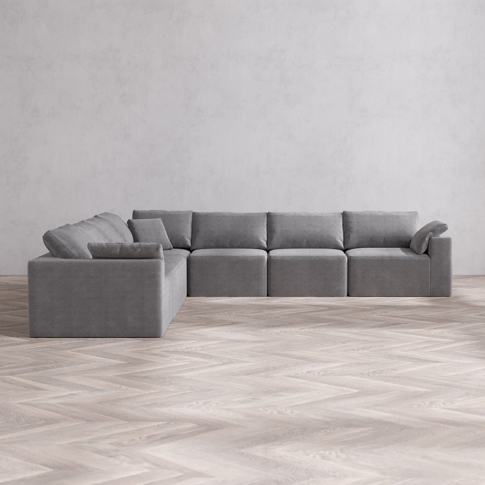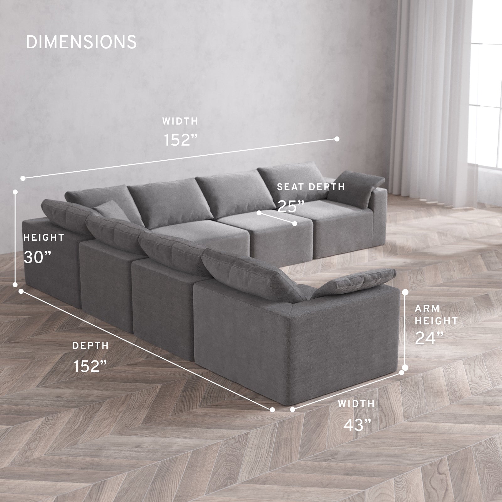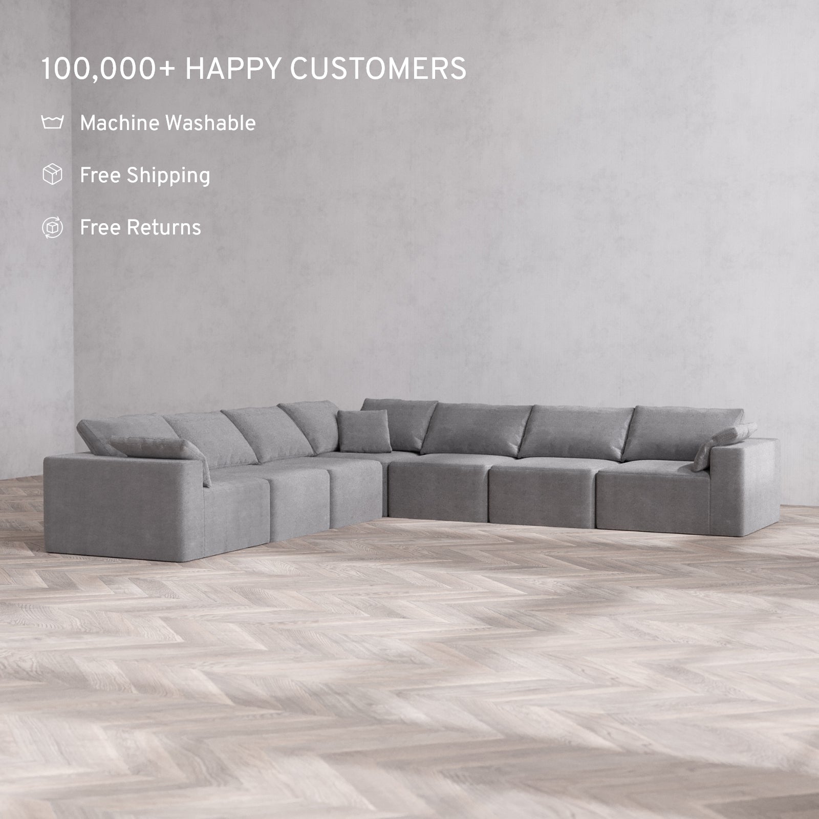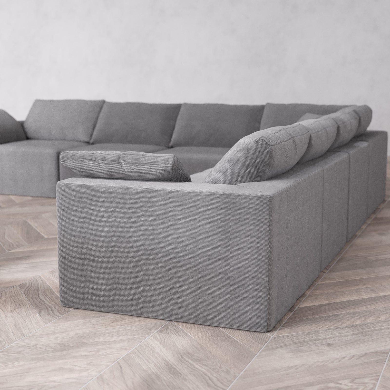 Modular Washable 7-Seater Corner Sectional Cloud Sofa | Lux Weave in Slate