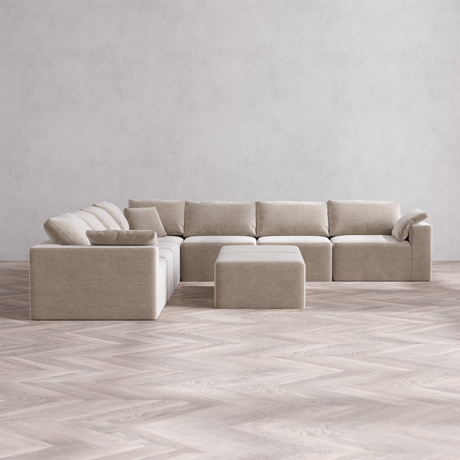 Modular Washable 7-Seater Corner Sectional + Ottoman Bench Cloud Sofa | Satin Velvet in Caraway