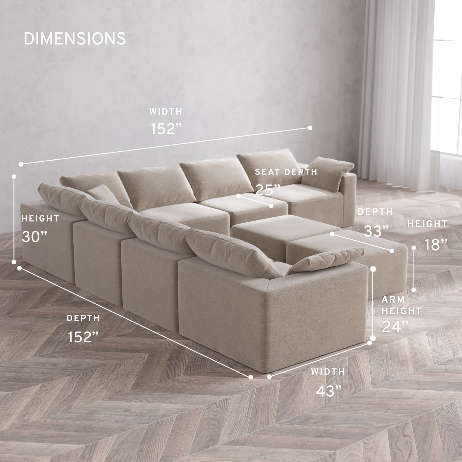 Extra-deep seats for the ultimate lounge session. Oversized arms give you room to sit, perch, or place your essentials within reach. Wide, open proportions that invite you to stretch out, curl up, or pile on with family and friends. It’s a statement in comfort—and your new favorite place to land.