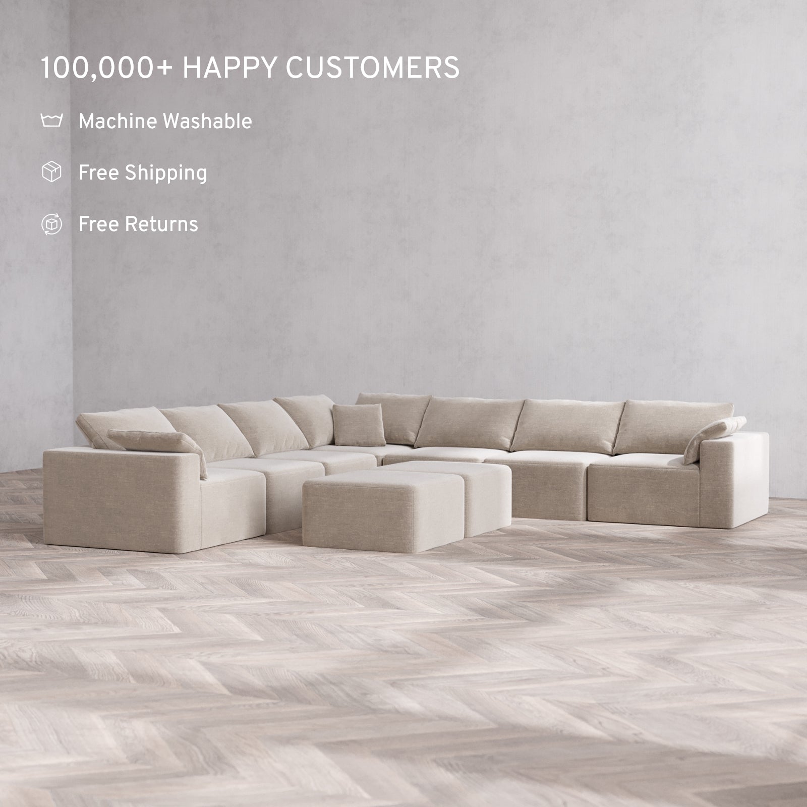 Machine Washable: Every piece of fabric—including the internal quilted duvet—is fully removable and machine washable. It’s the only Cloud-style sofa you can truly deep clean, effortlessly.