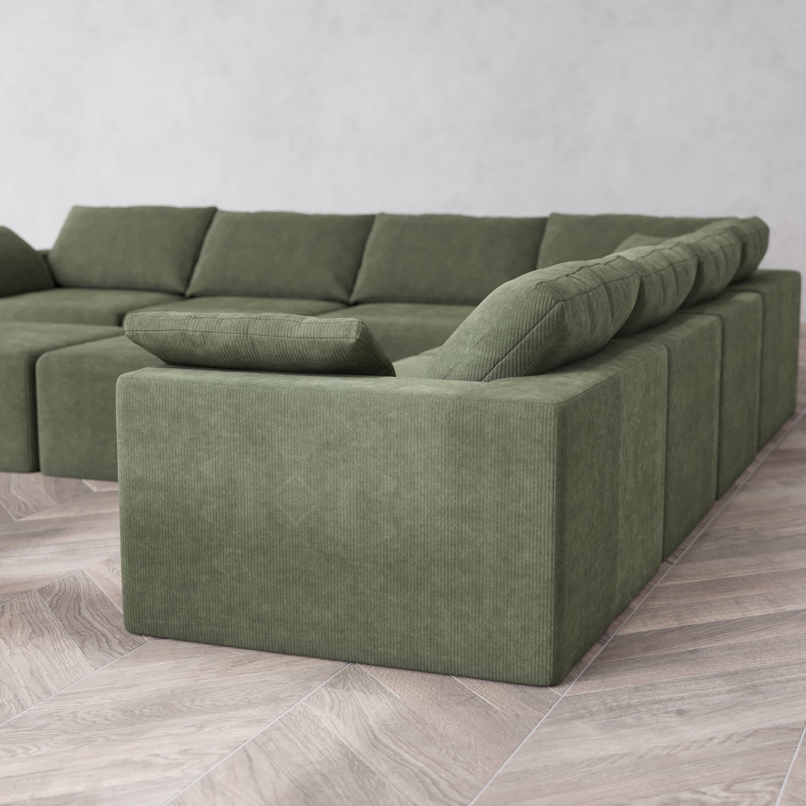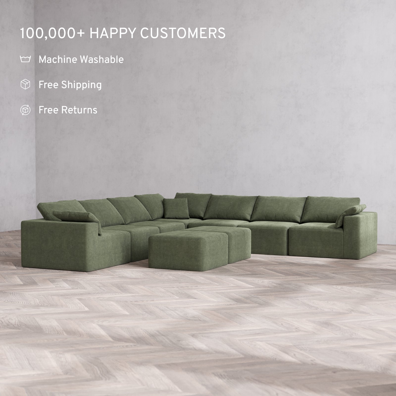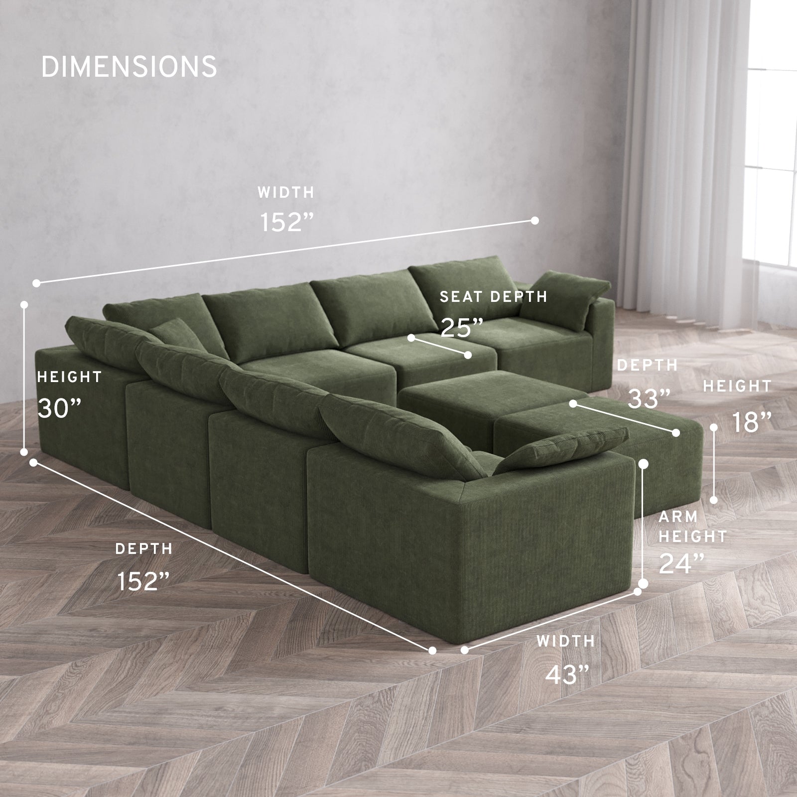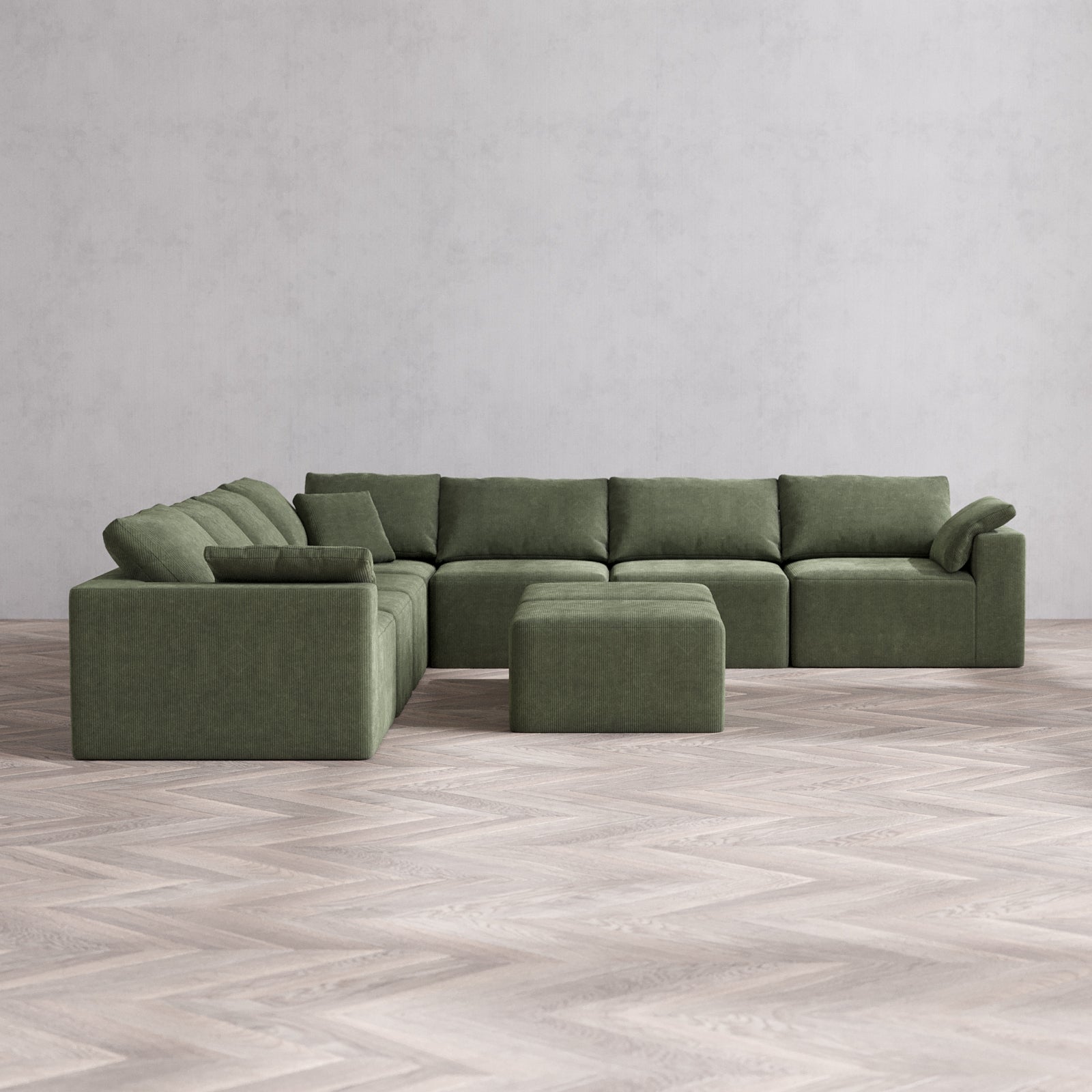Modular Washable 7-Seater Corner Sectional + Ottoman Bench Cloud Sofa | Luxe Corduroy in Juniper