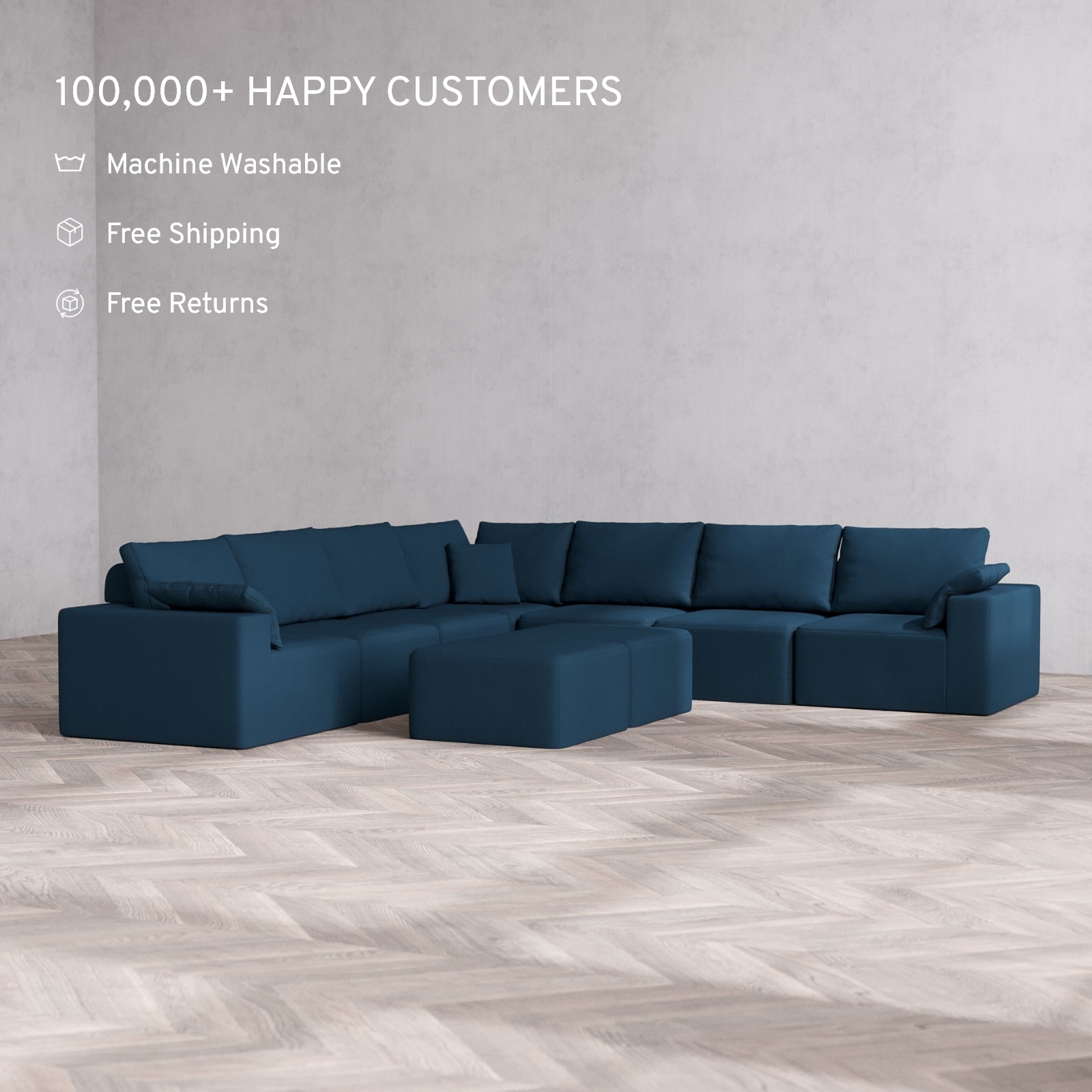 Machine Washable: Every piece of fabric—including the internal quilted duvet—is fully removable and machine washable. It’s the only Cloud-style sofa you can truly deep clean, effortlessly.