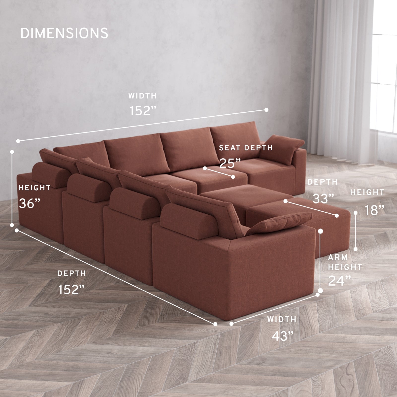Machine Washable: Every piece of fabric—including the internal quilted duvet—is fully removable and machine washable. It’s the only Cloud-style sofa you can truly deep clean, effortlessly.