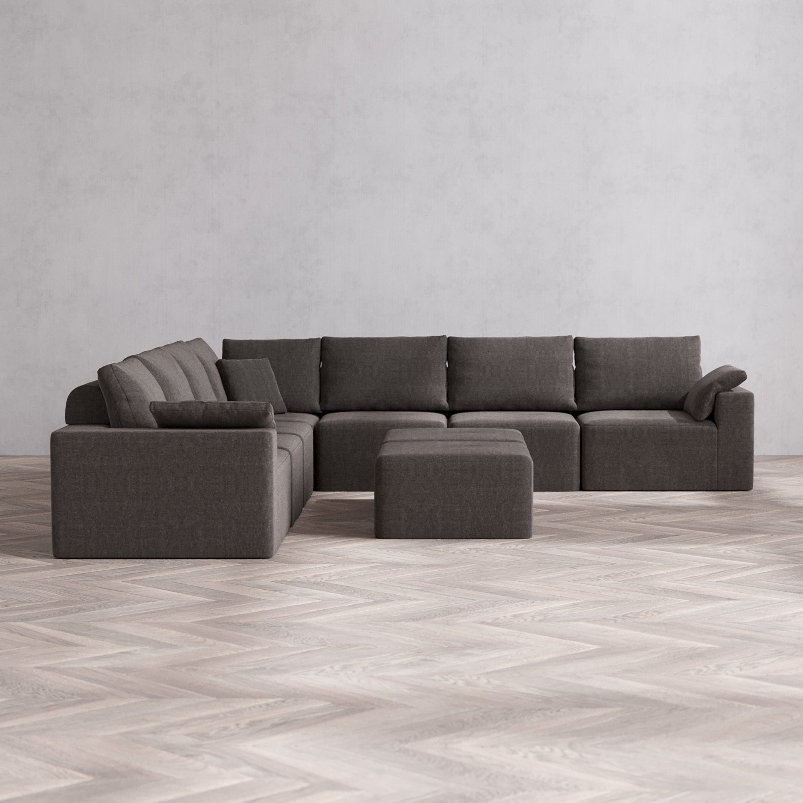 Modular Washable 7-Seater Corner Sectional + Ottoman Bench Cloud + Bolster Sofa | Heirloom Velvet in Truffle