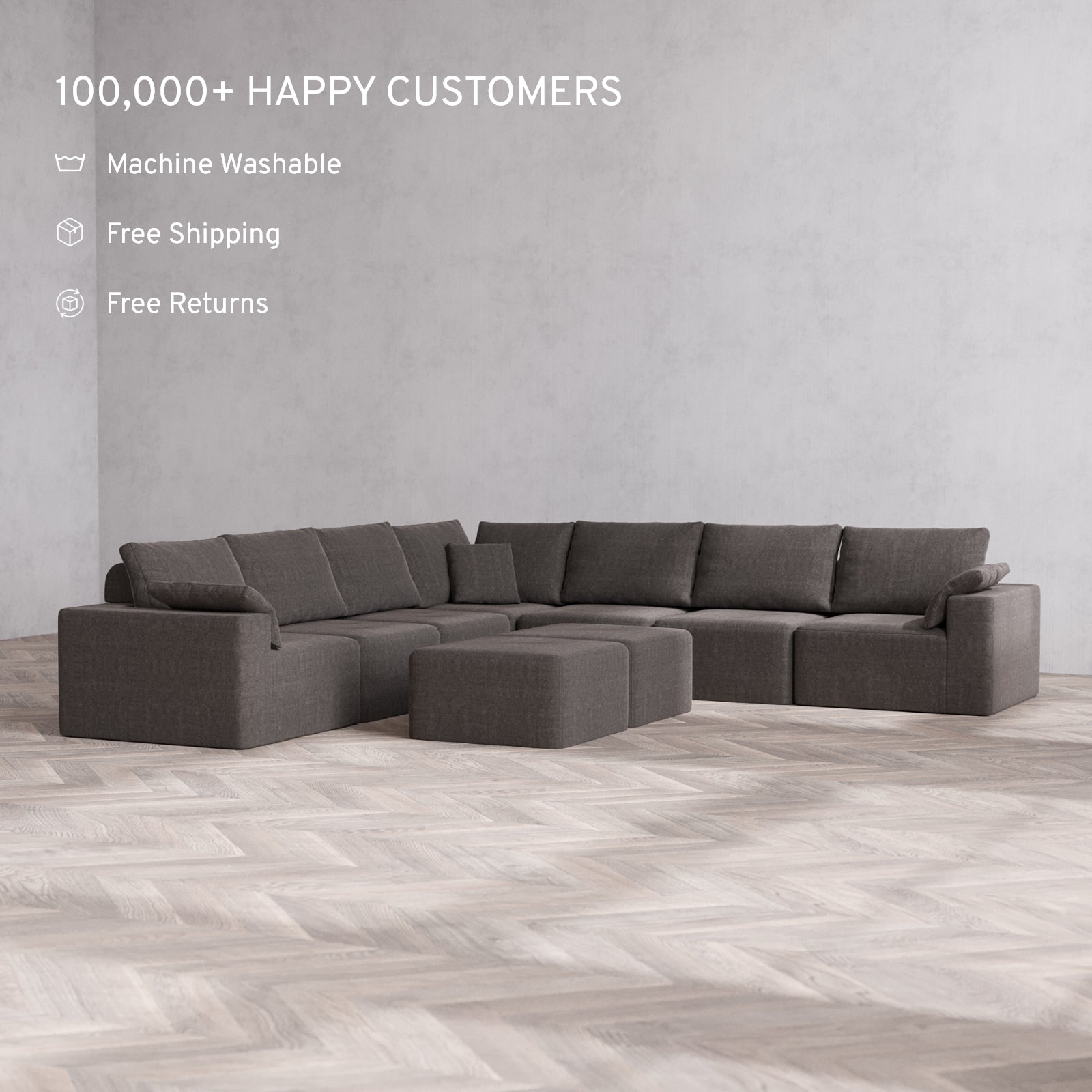 The Only Washable Cloud Sofa: With a waterproof frame and fabrics that resist pets, stains, and spills, this sofa is made to handle everyday messes. Our patent-pending covers are machine washable and fully interchangeable—buy extra sets to change up your look anytime.
