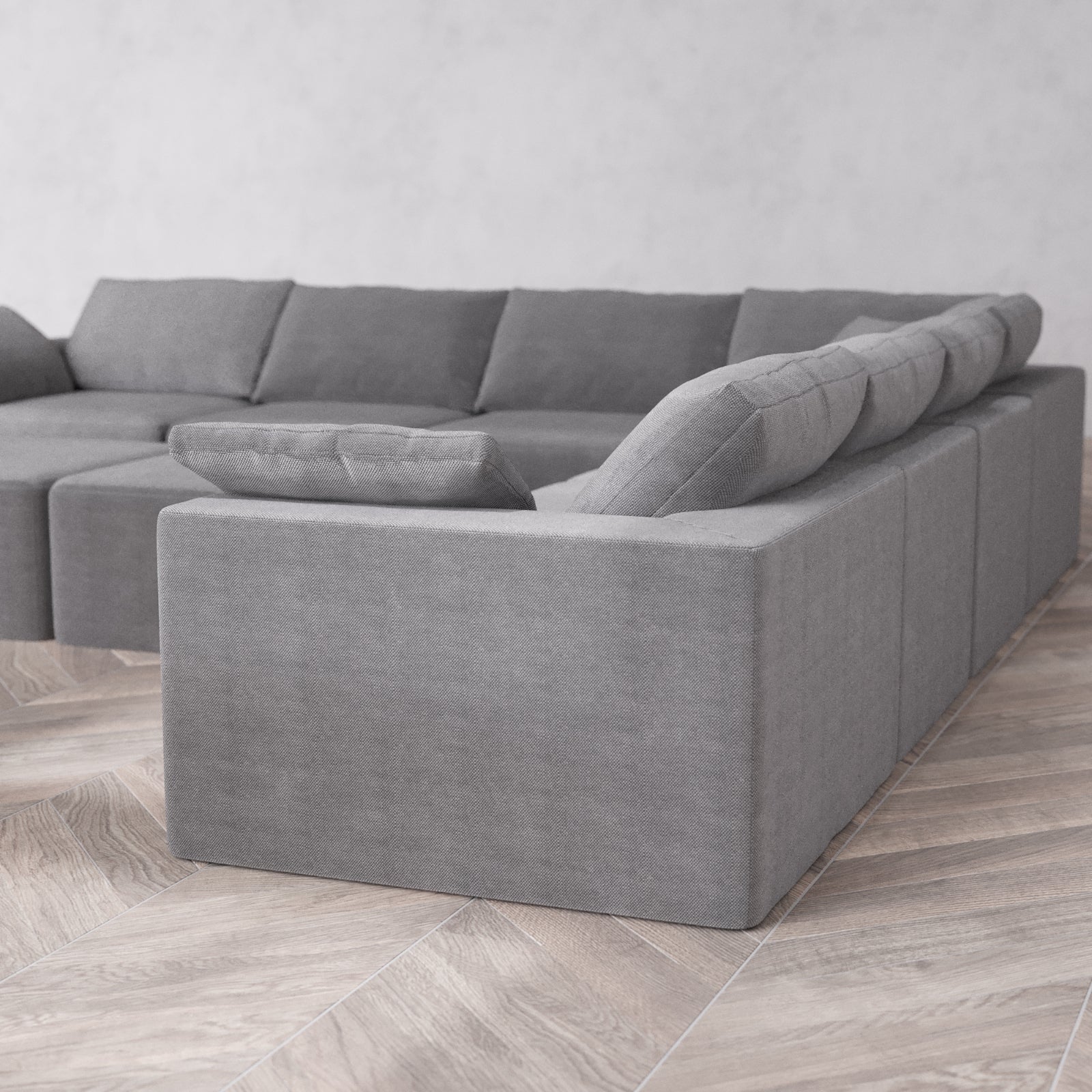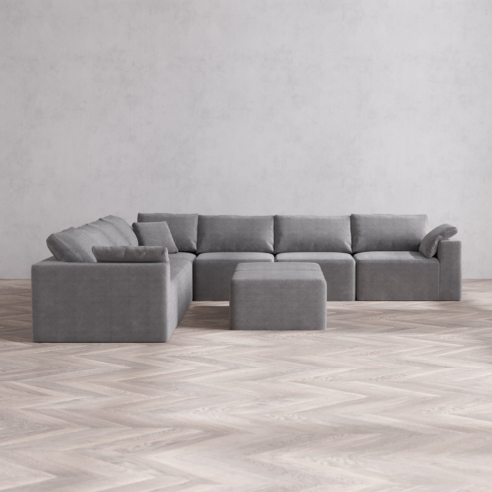 Modular Washable 7-Seater Corner Sectional + Ottoman Bench Cloud Sofa | Lux Weave in Slate