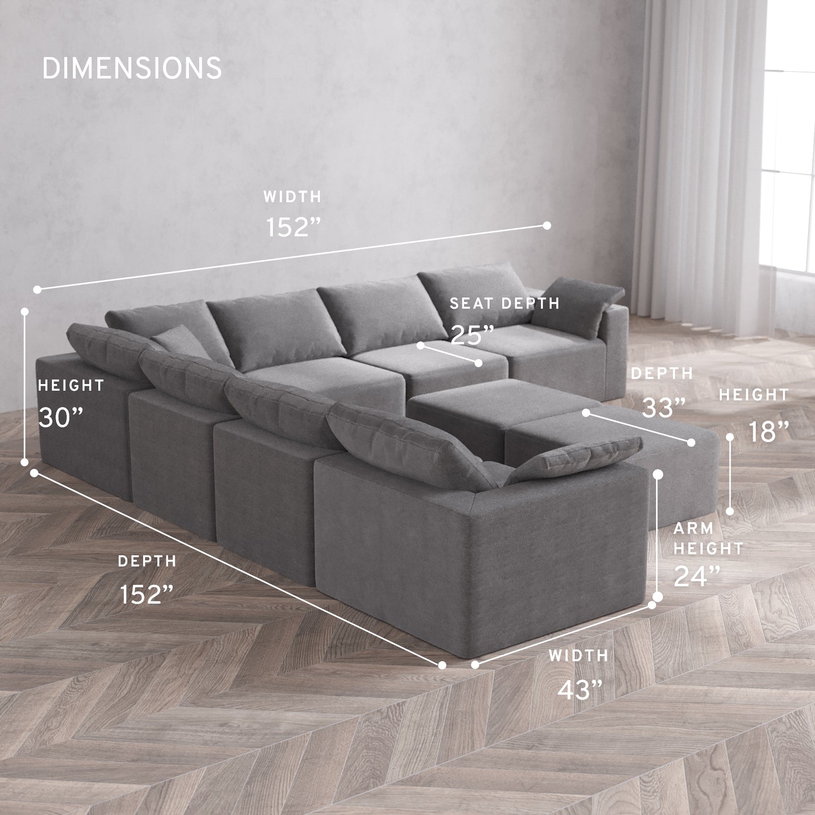 Extra-deep seats for the ultimate lounge session. Oversized arms give you room to sit, perch, or place your essentials within reach. Wide, open proportions that invite you to stretch out, curl up, or pile on with family and friends. It’s a statement in comfort—and your new favorite place to land.