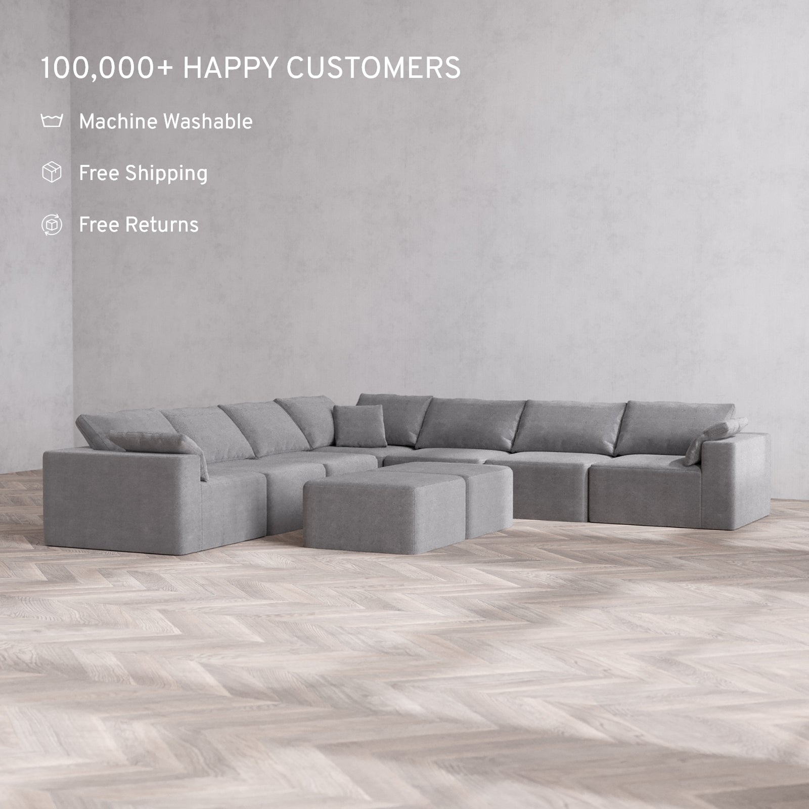 Modular: Flexible by design, each unit can be rearranged in seconds. Our patent-pending sofas are built to fit effortlessly into spaces of any size.