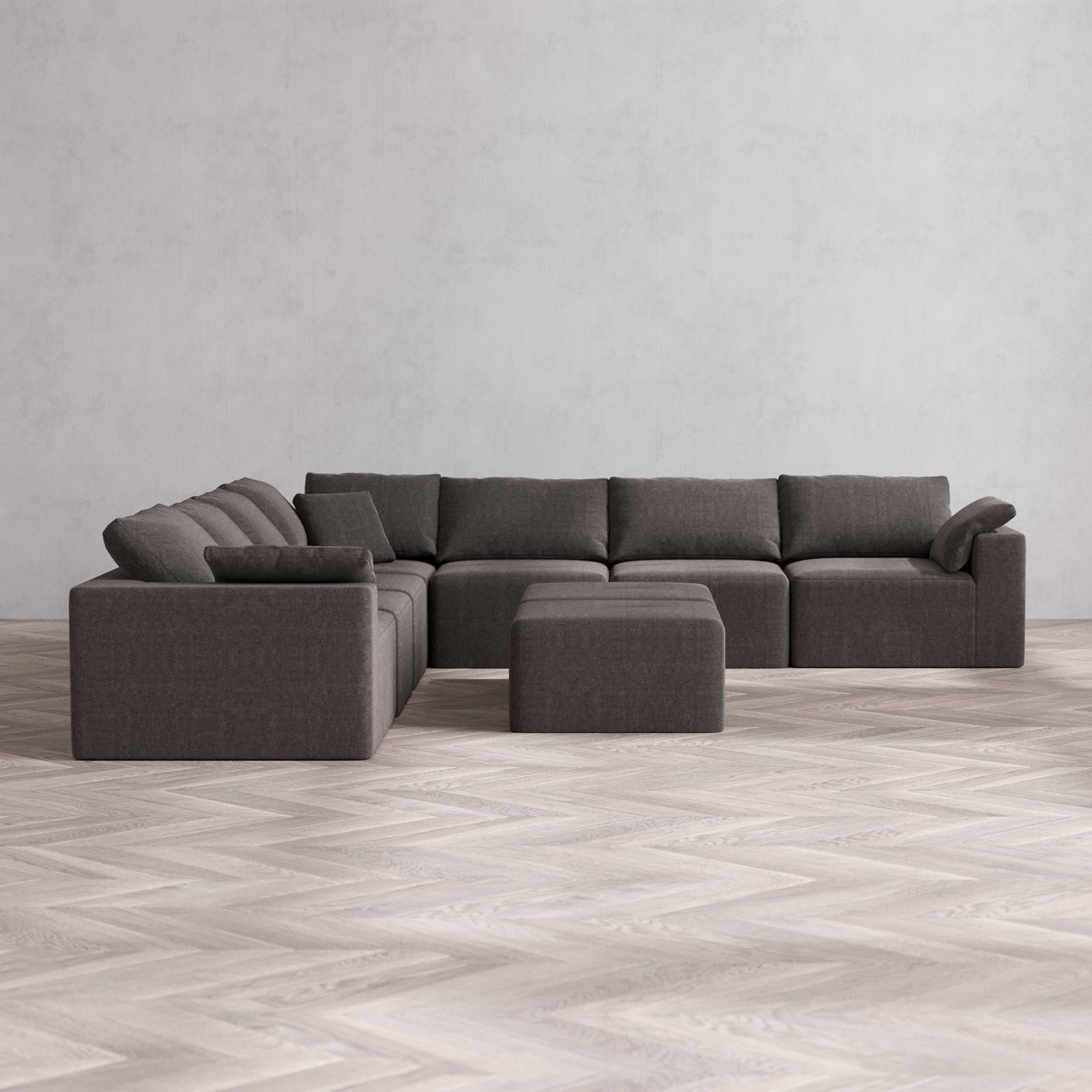 Modular Washable 7-Seater Corner Sectional + Ottoman Bench Cloud Sofa | Heirloom Velvet in Truffle