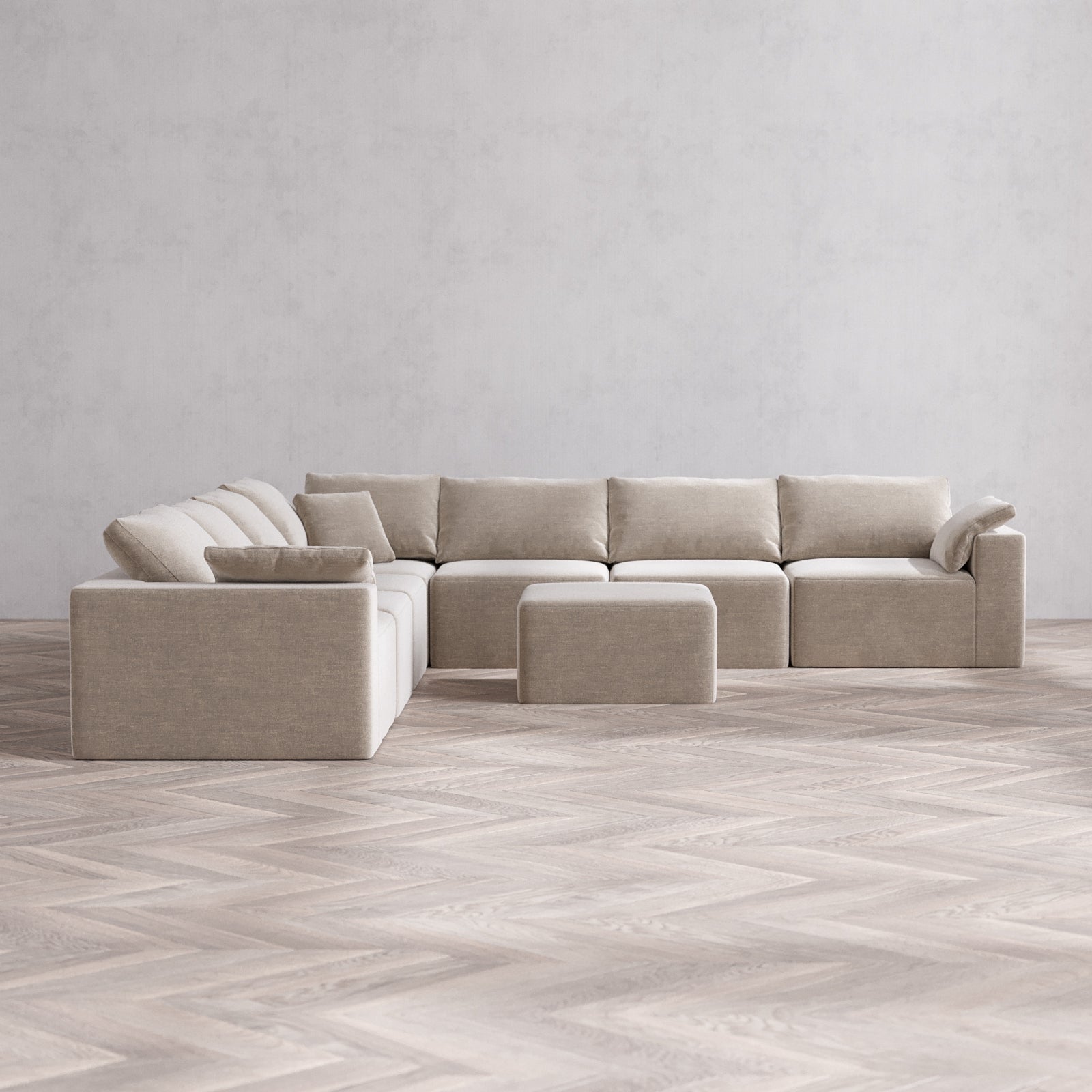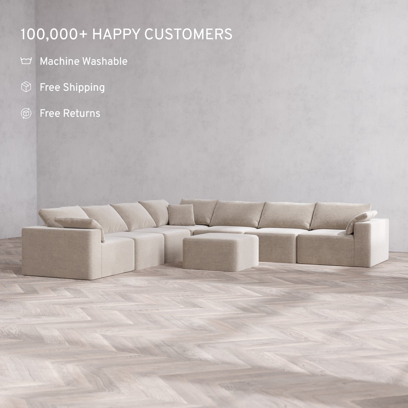 Modular Washable 7-Seater Corner Sectional + Ottoman Cloud Sofa | Satin Velvet in Caraway