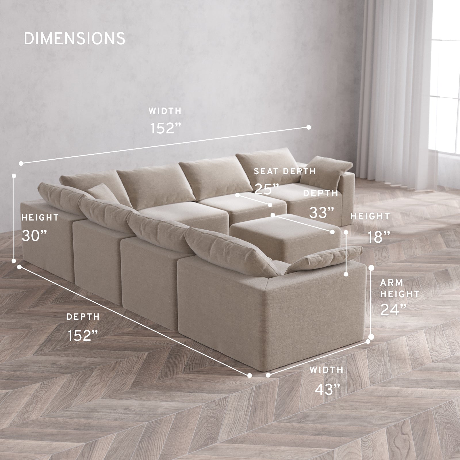 Machine Washable: Every piece of fabric—including the internal quilted duvet—is fully removable and machine washable. It’s the only Cloud-style sofa you can truly deep clean, effortlessly.