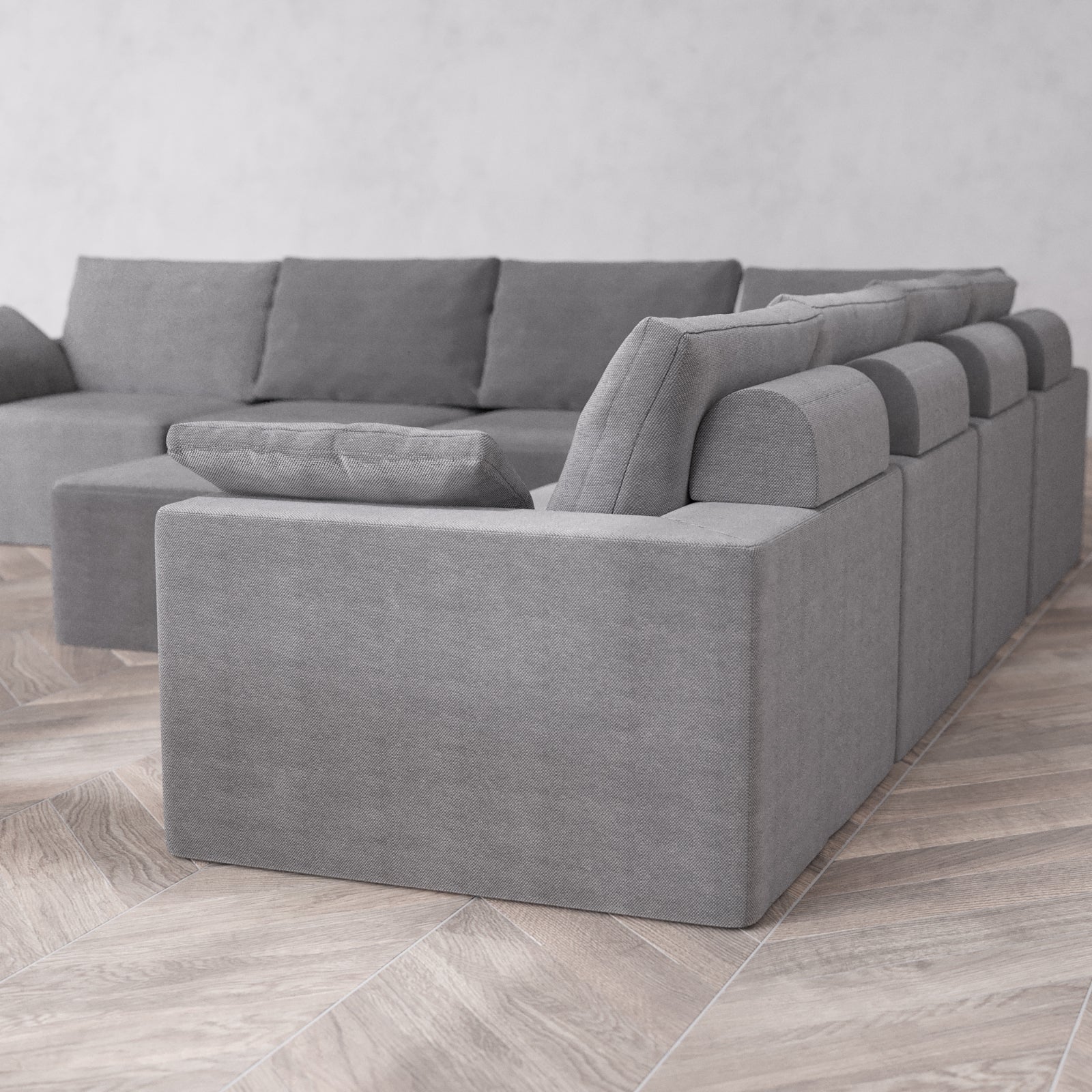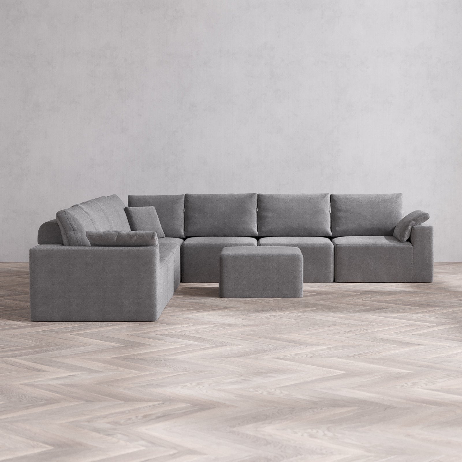 Modular Washable 7-Seater Corner Sectional + Ottoman Cloud + Bolster Sofa | Lux Weave in Slate