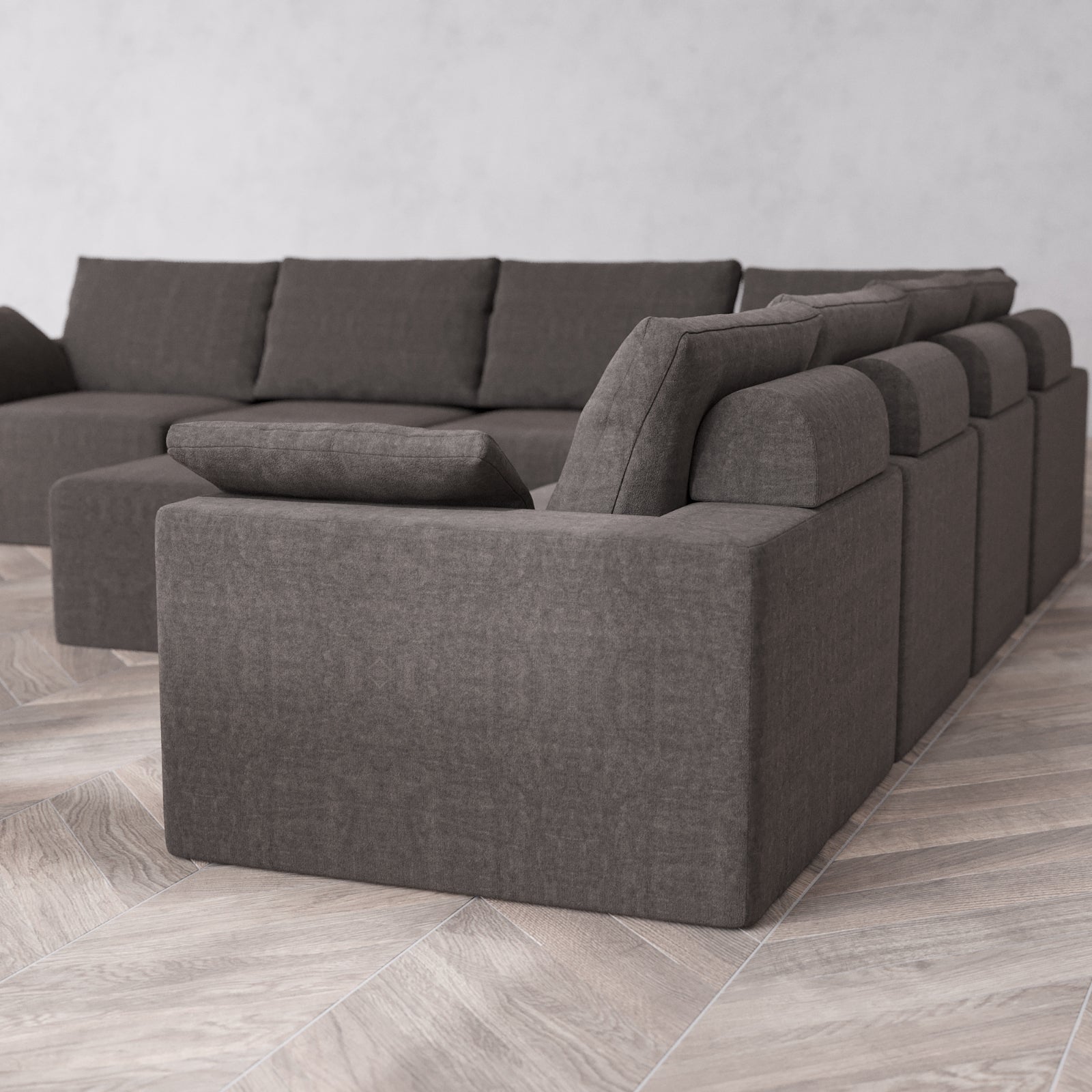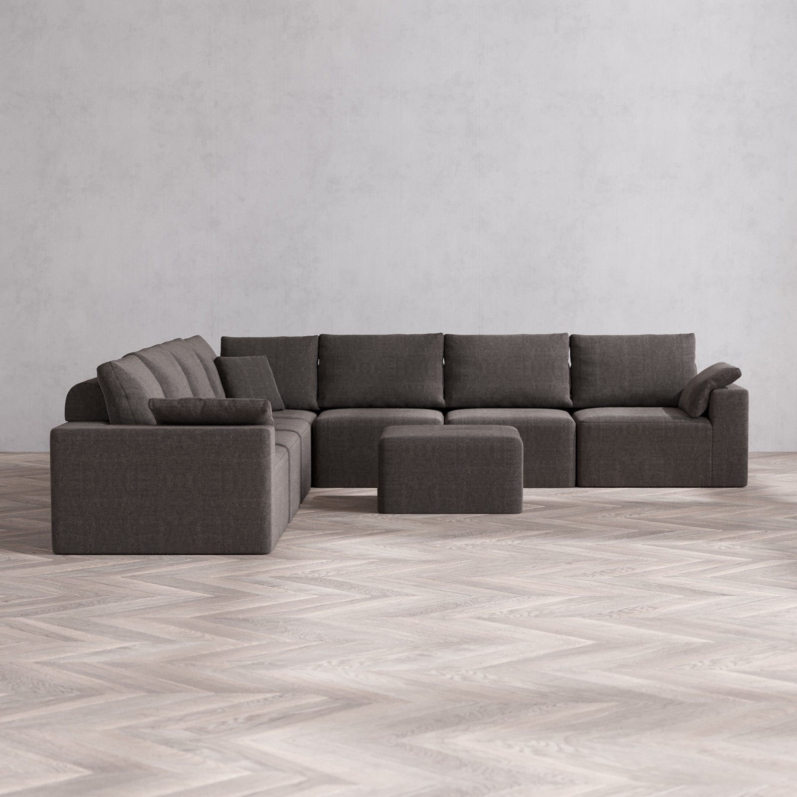 Modular Washable 7-Seater Corner Sectional + Ottoman Cloud + Bolster Sofa | Heirloom Velvet in Truffle