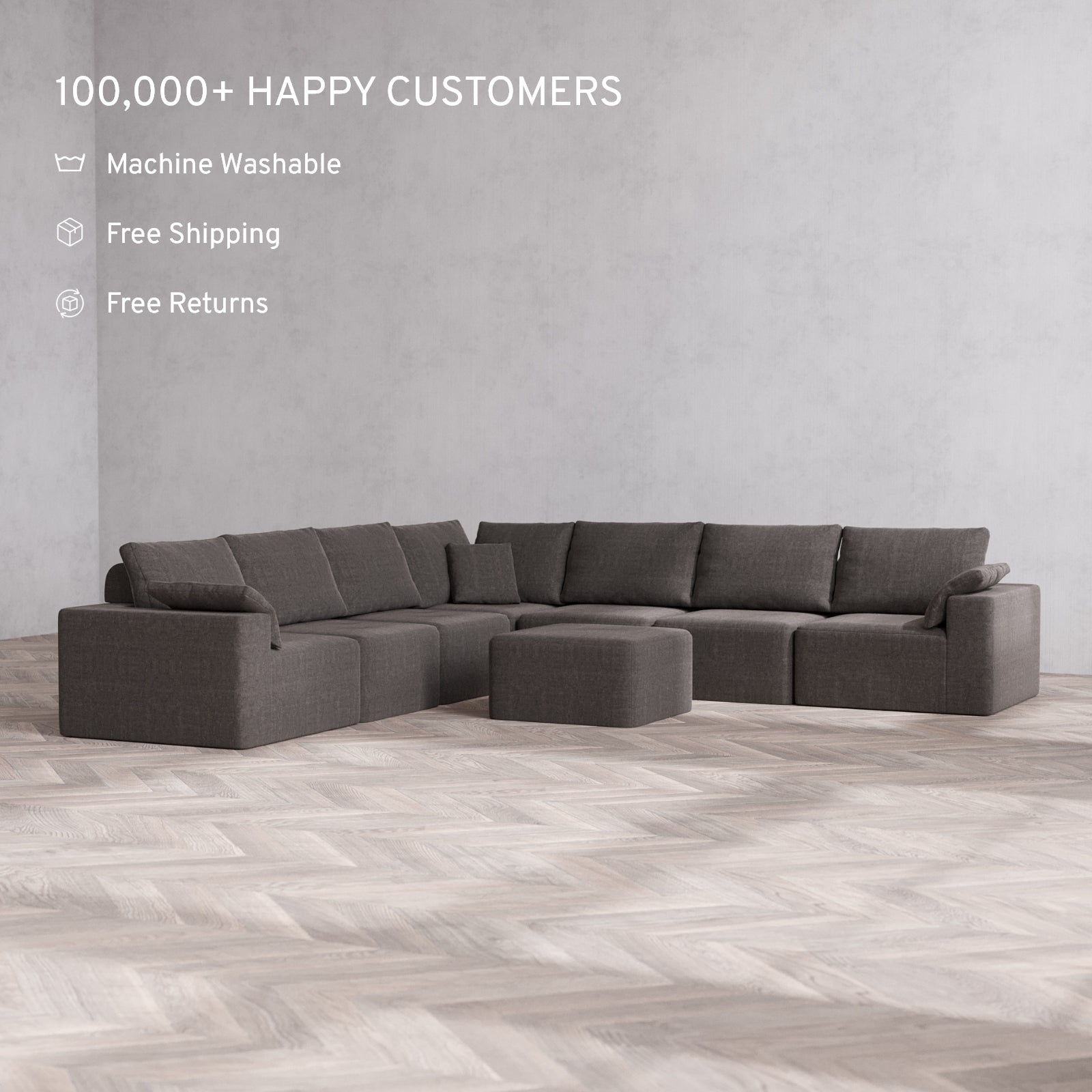 The Only Washable Cloud Sofa: With a waterproof frame and fabrics that resist pets, stains, and spills, this sofa is made to handle everyday messes. Our patent-pending covers are machine washable and fully interchangeable—buy extra sets to change up your look anytime.