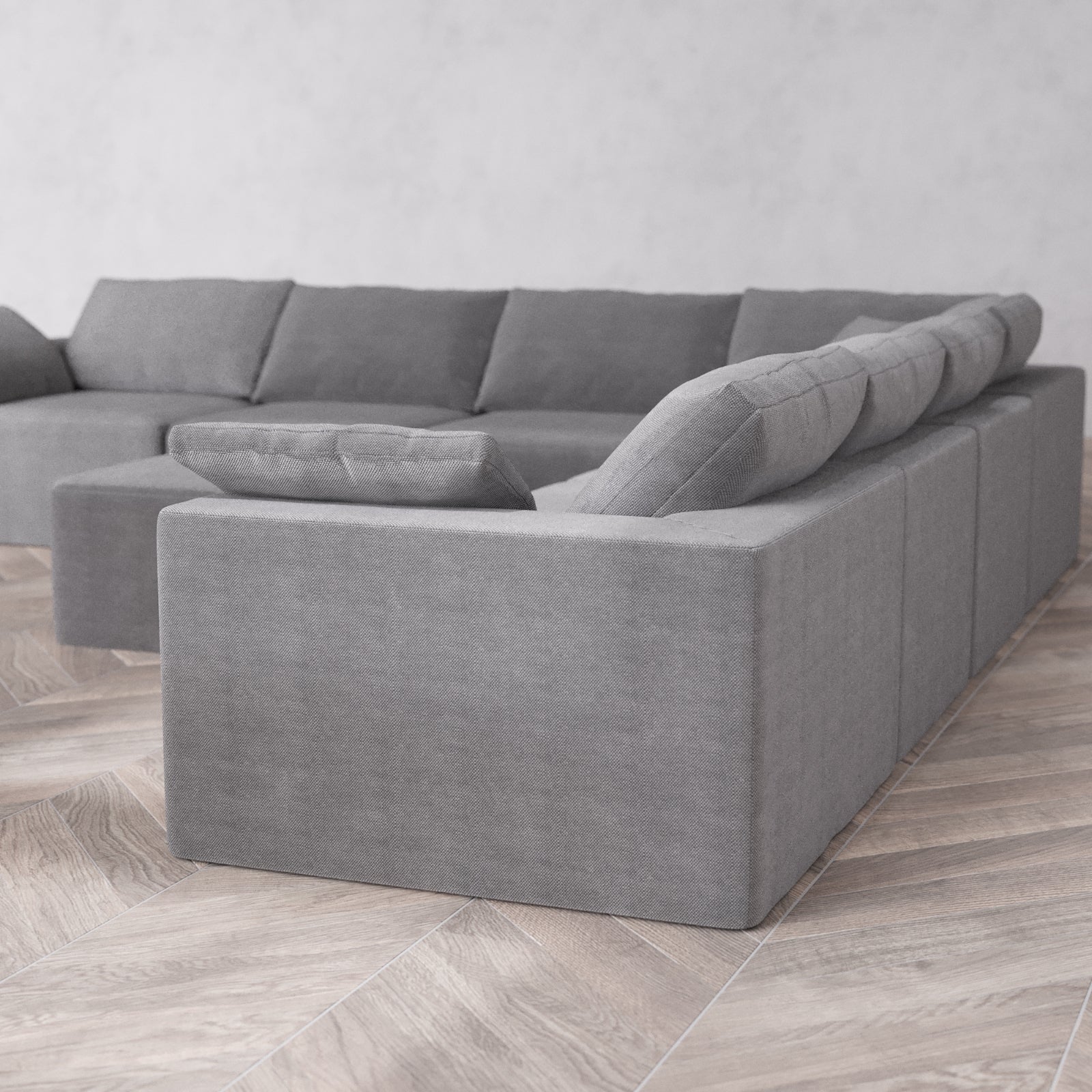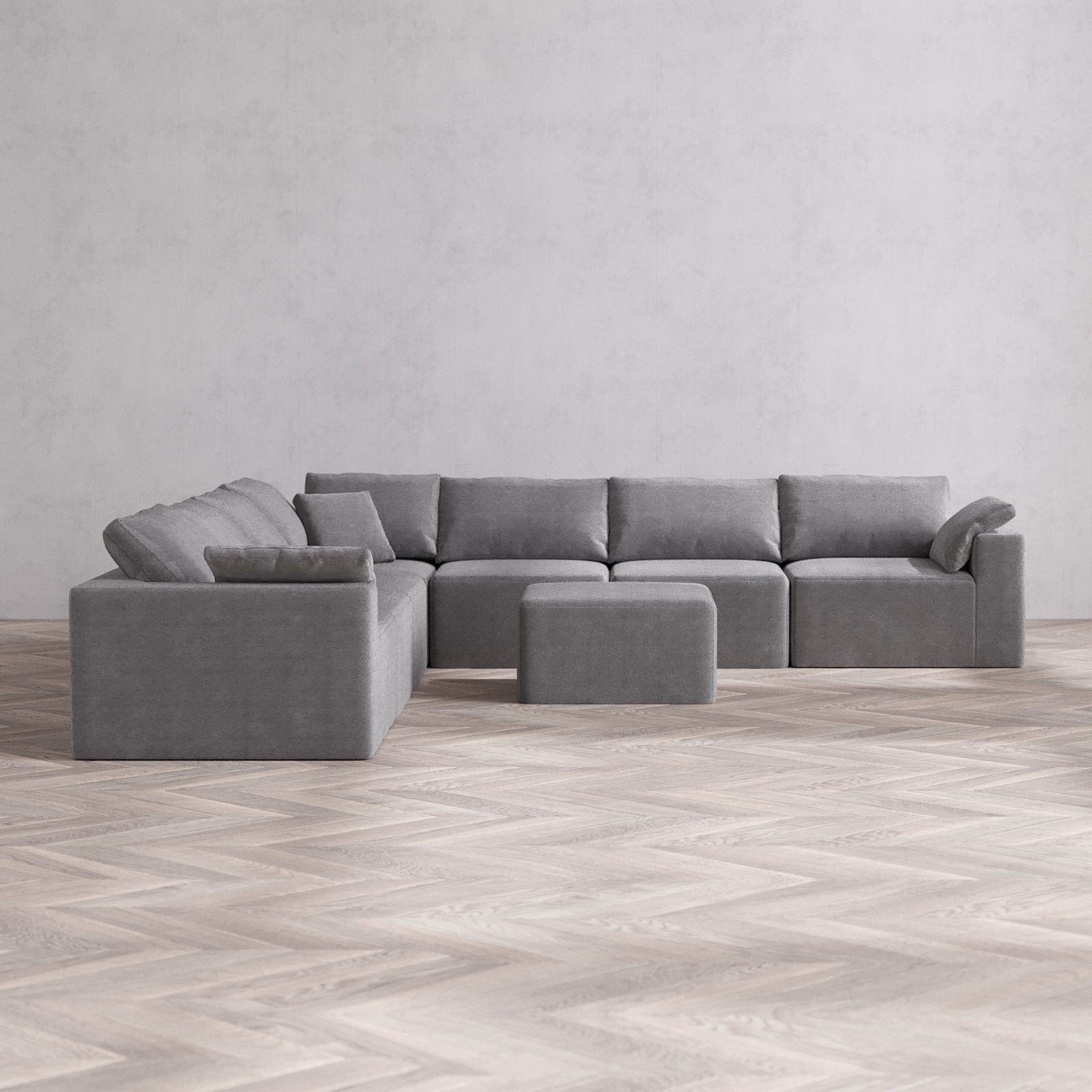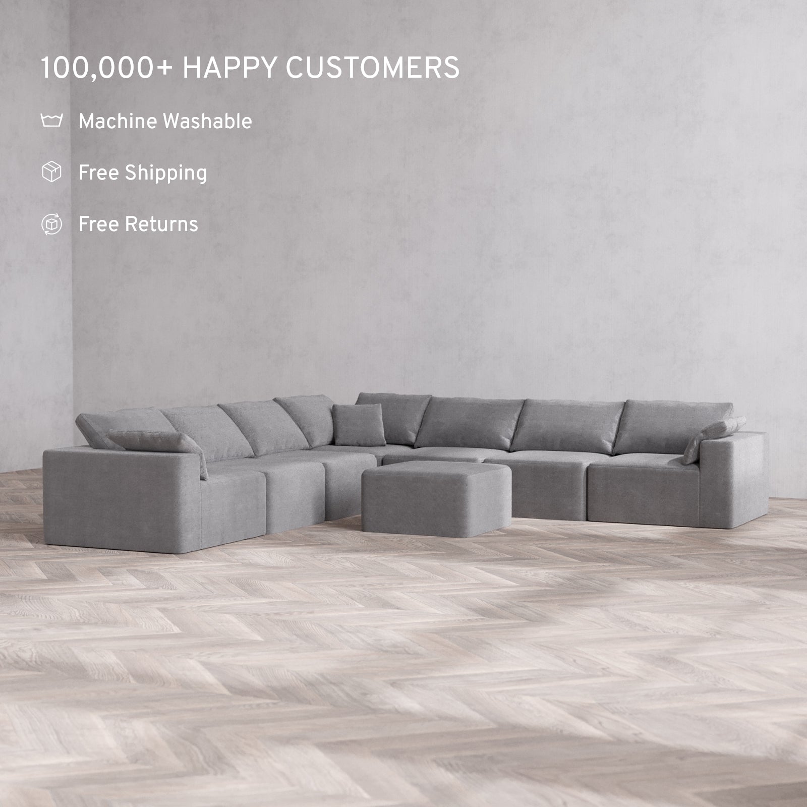 Modular Washable 7-Seater Corner Sectional + Ottoman Cloud Sofa | Lux Weave in Slate