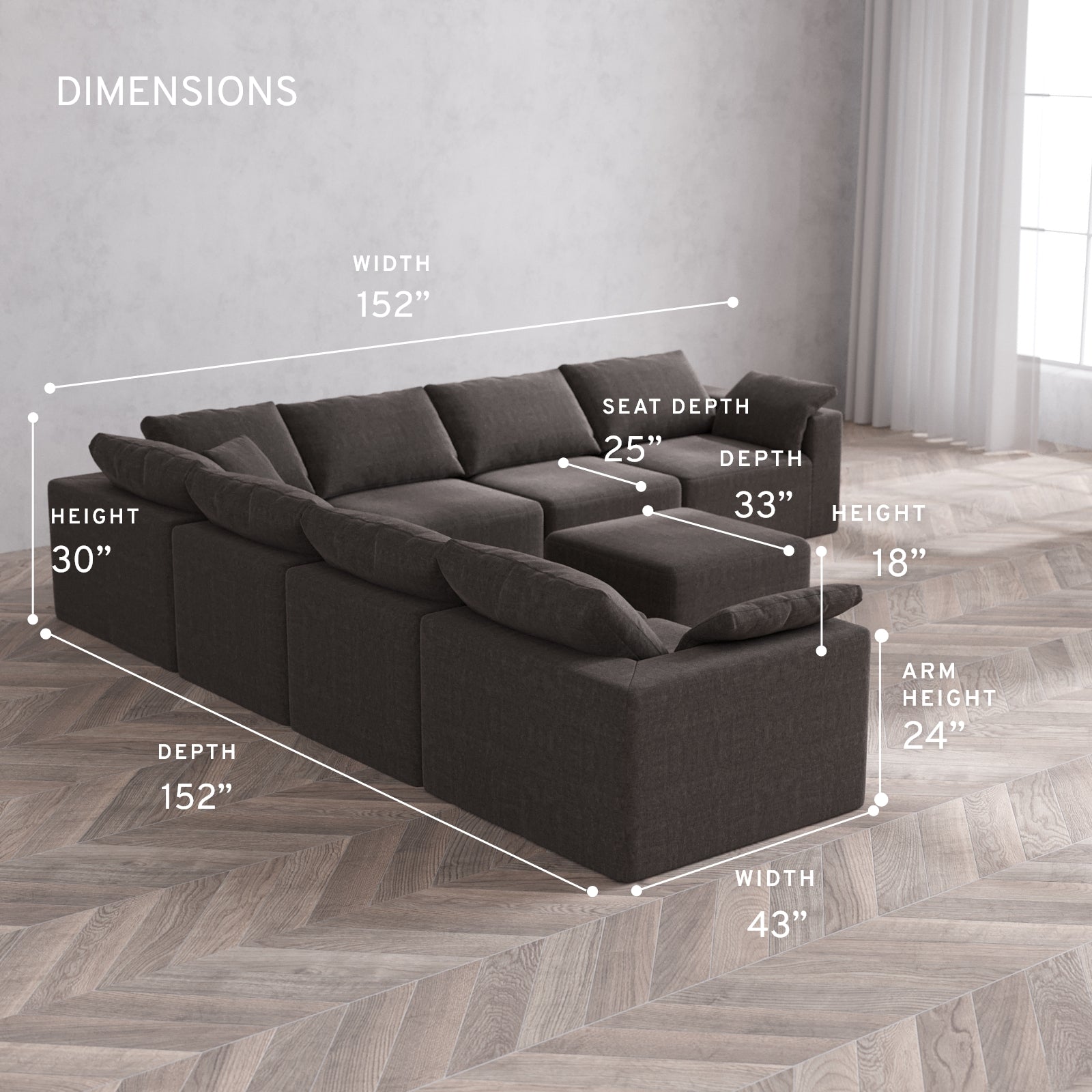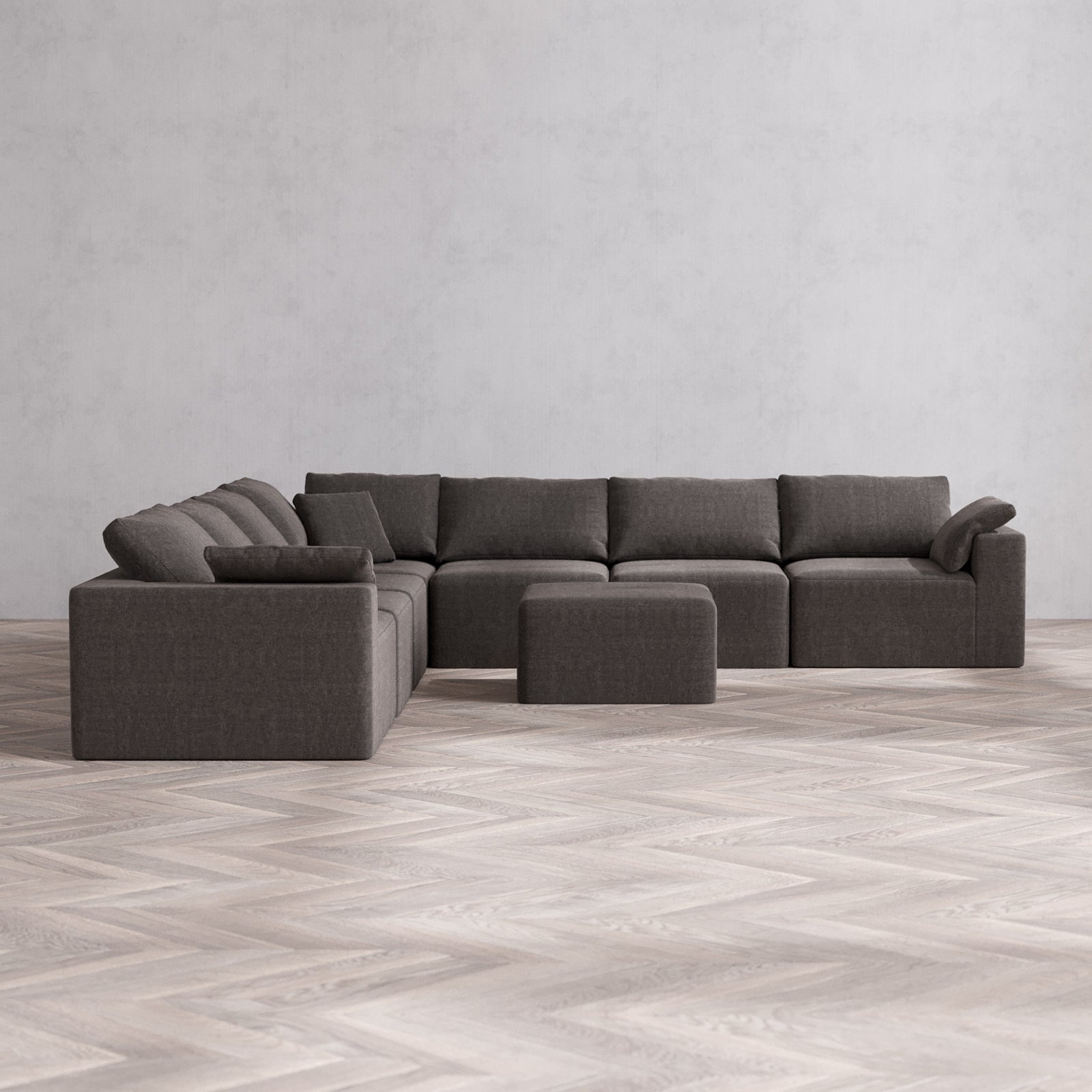 Modular Washable 7-Seater Corner Sectional + Ottoman Cloud Sofa | Heirloom Velvet in Truffle