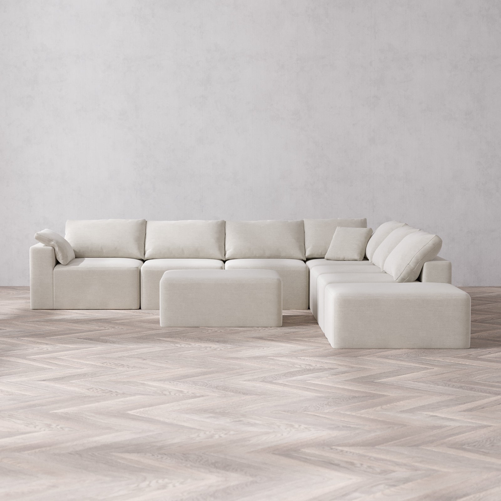 Modular Washable 7-Seater Open End Corner Sectional + Chaise Ottoman Cloud Sofa | Left-Facing Arm | Satin Velvet in Cashew