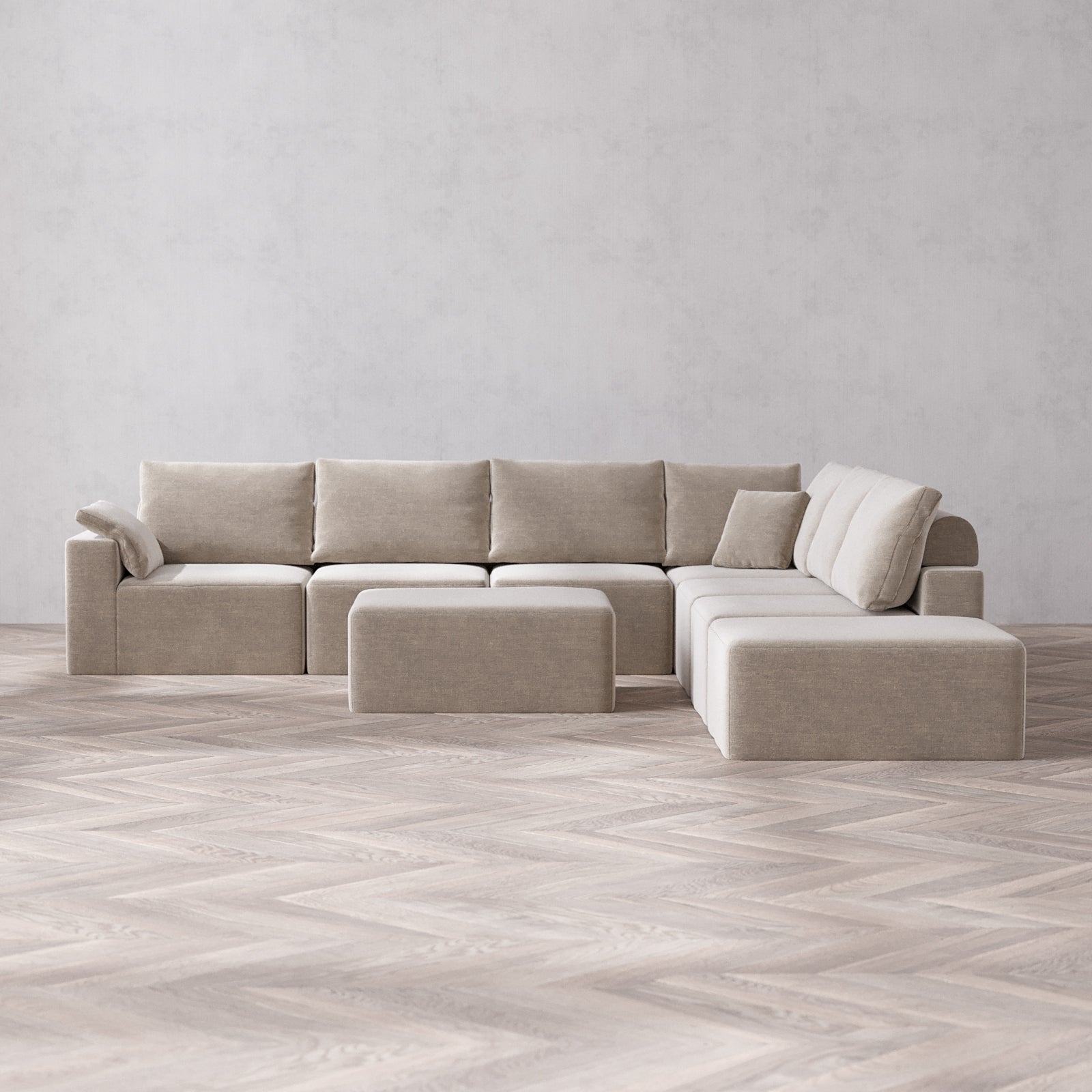 Designed with true flexibility in mind, our modular system adapts to your space and your lifestyle. Whether you're expanding, downsizing, or simply reimagining your layout, each piece connects effortlessly to create a configuration that works for you—today, and as life changes.