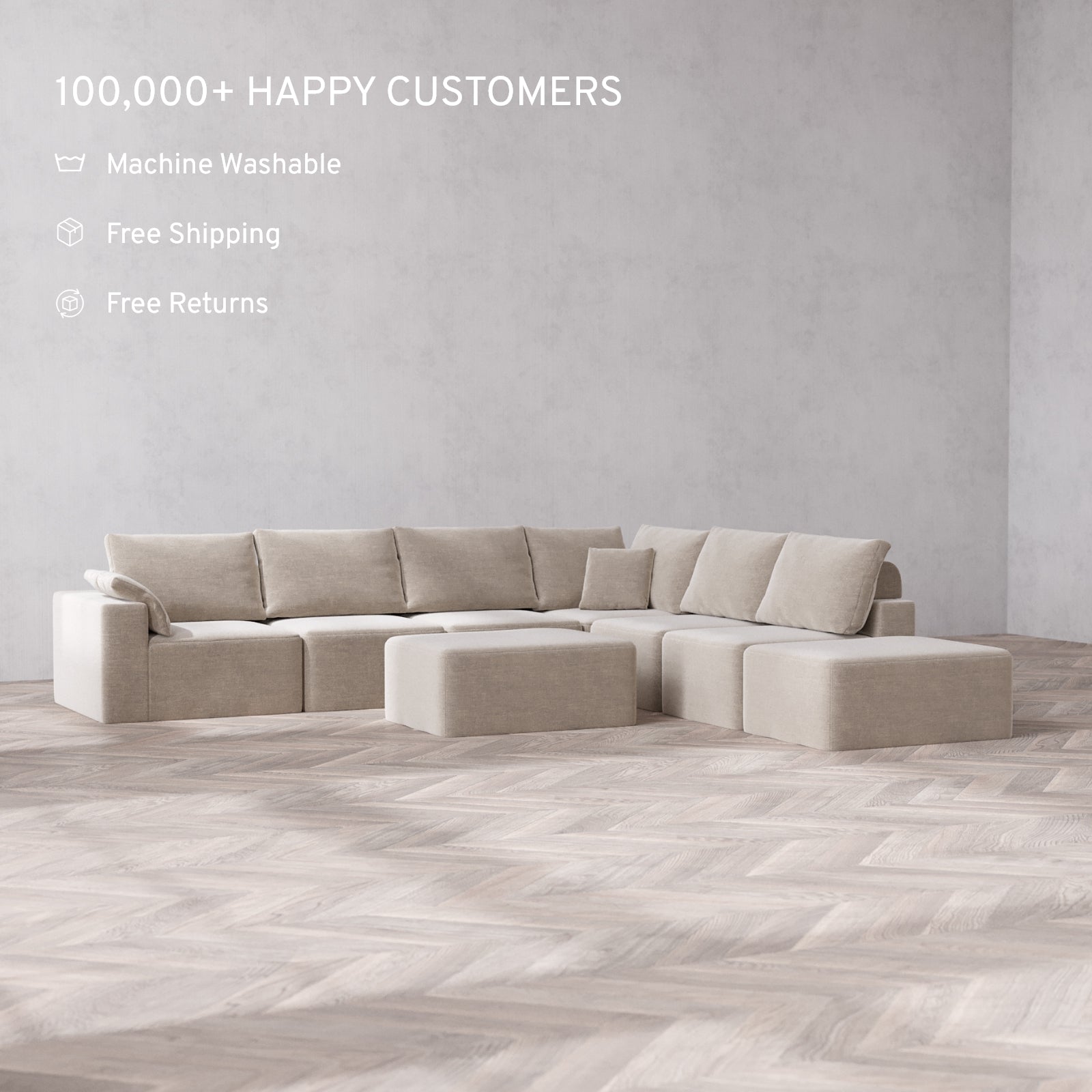 Modular: Flexible by design, each unit can be rearranged in seconds. Our patent-pending sofas are built to fit effortlessly into spaces of any size.
